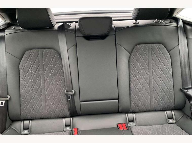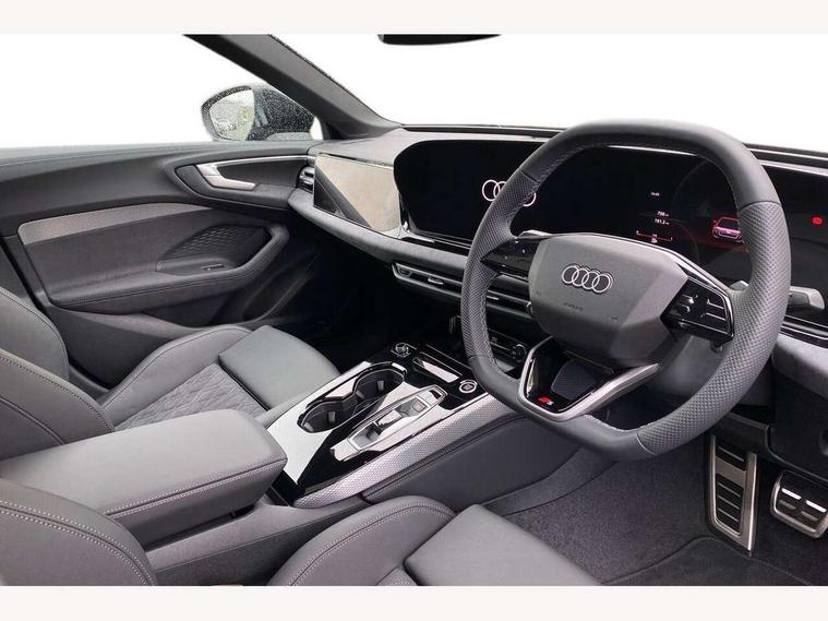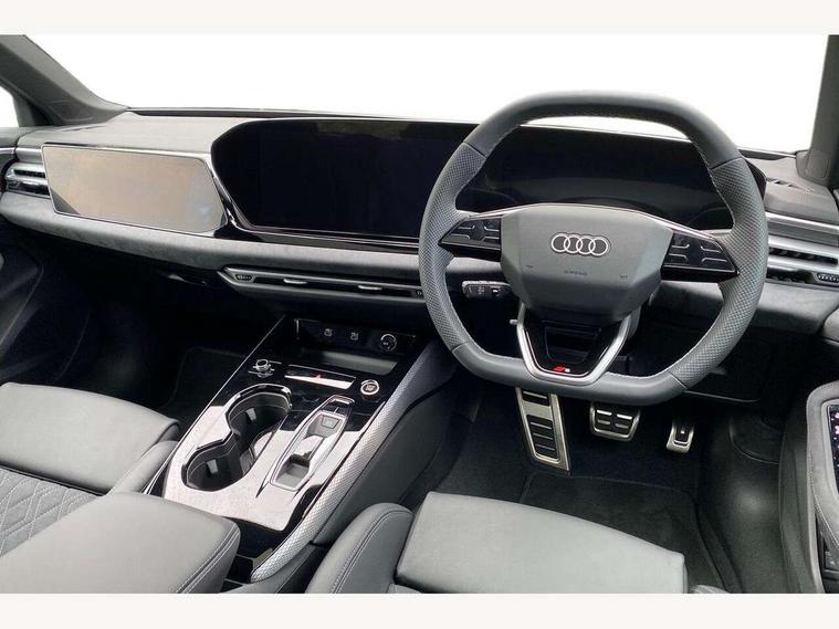Adaptive cruise assist plus with steering intervention, Attention and drowsiness detection with driver observation, Audi application store, Audi assistant, Audi connect emergency call and service, Audi drive select, Audi virtual cockpit plus with 11.9" OLED colour display, Automatic start/stop system with coasting functionality, Camera based traffic sign recognition, Convenience key, Intersection assist, Lane change assistant with exit warning system, rear cross traffic alert and rear turn assist, Lane departure warning with emergency assist, MMI 10.9" front passenger touch display, MMI navigation plus with high resolution 14.5" OLED touchscreen colour display, Park assist plus, Parking system plus with 360 display, Progressive steering with servotronic, Side assist and exit warning, rear cross-traffic assist and rear turn assist, Smartphone interface, Swerve assist and turn assist, Top view camera, Traffic sign based speed limiter, Sports suspension lowered by 20mm, Audi sound system impressive sound with 8 loudspeakers including centre speaker and subwoofer, 6-channel amplifier with a total output of 180 watts, DAB digital radio reception, Smartphone compartment with wireless charging, Aluminium window trims, Auto dimming rear view mirror, Black door handles, Dark chrome-plated tailpipe trims, Door mirrors - electrically adjustable, heated, folding and auto dimming on both sides, Front and rear electric windows, Front door sill trims with aluminium inlays, illuminated with 'S' logo, Headlight cleaning system, High beam assist, LED daytime running lights, LED rear lights pro incl. dynamic rear indicators and illuminated light strip with animated coming and leaving home function, LED third brake light, Matrix LED headlights with eight light signatures selectable via the MMI or the myAudi app, Privacy glass, Rear and side windows with heat insulating glass, Rear boot, Rear side wing doors, S Line badges on the front wings, S line bumpers, radiator grille and diffuser in phantom black and diffuser insert in matt anthracite, White rhombus logo projection light in exterior mirrors, Windscreen with acoustic glazing, 3 rear headrests, 3 seat rear bench, 3 spoke leather steering wheel with multi-function buttons with touch control, flattened on top and bottom, with S badging and contrast stitching, 3-zone automatic climate control, 40:20:40 split folding rear seat bench with centre armrest and cup holders, Comfort front centre armrest, Electrically adjustable front seats, Front and rear floor mats, Front sport seats with integrated headrest and S embossed logo, Headlining in black cloth, Heated front seats, i-Size child seat mounting on the front passenger side and outer rear seats, i-Size and top tether on the outer rear seats, Increased charging capacity for USB ports 2X100 Watts in rear, 2X60 Watts in front, Luggage compartment lid, electrically opening and closing, Manual steering column height and depth adjustment, Memory function for driver seat, Single front passenger seat, Stainless steel pedals and footrest, Steering wheel grips in perforated leather and shift paddles, Ambient lighting package plus - A5, Black styling package plus - A5, 3x3 point rear seat belts, Acoustic vehicle alerting system, Driver airbag, Electric child safety locks, First aid kit with warning triangle and vests, Front emergency brake assist, Front passenger airbag, Front passenger airbag deactivation, Hill hold assist, Proactive passenger protection system for front, sides and rear, Red brake calipers, Seat belt monitoring with rear seat occupant reminder, Side airbags in front and rear with head airbag system and front interaction airbag, Tyre pressure loss indicator, Anti theft alarm, Anti-theft wheel bolts, Digital key, Keyless Go, Accent surfaces and control buttons in gloss black, Black dashboard with contrast stitching, Softwrap in Dinamica with contrast stitching, Upper and lower interior elements in dinamica microfiber, 20" 5 arm fold design Audi sport alloy wheels in silk matt grey and gloss turned finish, Tyre repair kit,
