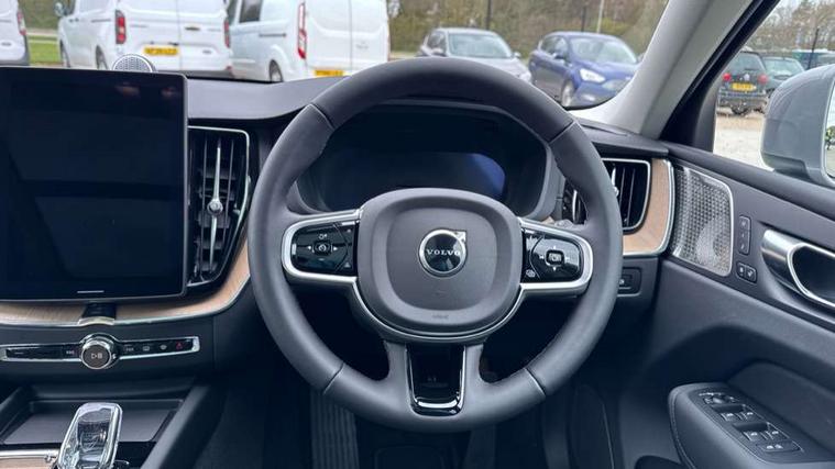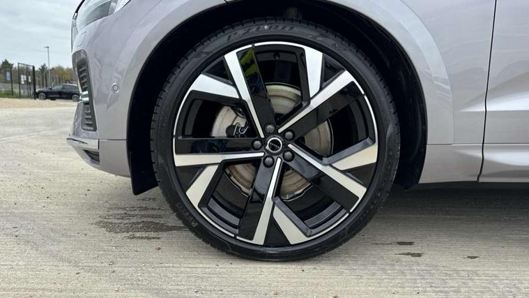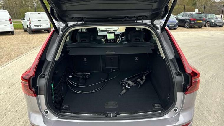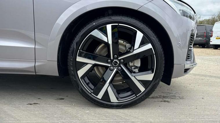 11.2" centre console touch screen, 12.3" Progressive Driver Display, 360 degree surround view parking camera with side proximity sensors, Adaptive cruise control, Adjustable steering wheel force, Android auto (Wired), Apple carplay (wired), Bluetooth handsfree system, Drive mode settings, Driver alert control with lane keeping aid, Driver understanding system, Emergency services call system, Front and rear park assist, Google Automotive Services, Intelligent speed assistance, Oncoming Lane Mitigation, PAS, Power operated tailgate with handsfree opening and closing, Service interval indicator, Speed limiter, Speed sensitive steering, Trip computer, Volvo cars services with app, Volvo on call with App, Wireless/Inductive Mobile Phone Charging, 2 phase on board charger 6.4kW (home charging limited to 3.7kW), 6m 3 phase 16amp Type 2 / mode 3 charge cable, 8 speed automatic transmission with start/stop + manual change functions, Active four-C chassis + four corner adaptive damper with electronic rear air suspension, Electric rear axle drive, Recharging port located in nearside front wing, DAB Digital radio, Low speed exterior sound speaker, Premium sound by Bowers and Wilkins, dirac live, dolby pro logic II surround sound, 14 speakers/1100W output and fresh air subwoofer, Steering wheel remote infotainment controls, Active bending headlights with adaptive shadow technology, Adaptive brake lights with high level LED brake lights, Auto dimming interior + exterior mirrors, Automatic headlight levelling system, Automatic LED Headlights + Active high beam incorporating daytime running lights, Dark tinted windows for rear side windows and cargo area, Electric adjustable/heated/auto power folding door mirrors, Electric front+rear windows, Front aluminium tread plates, Headlight cleaning system, High gloss black door mirrors and window surround, High gloss black front and rear bumper decoratives, High gloss black mesh front grille with high gloss black surround, Home safe and approach lighting, Integrated roof rails in high gloss black, Power glass tilt and slide panoramic sunroof with sun curtain, Puddle lights, Rain sensor with automatic windscreen wiper activation, Rear side wing doors, Rear wiper, Roof antenna, Roof spoiler, Tinted windscreen, Visible VIN plate, 12V socket in front tunnel console and luggage compartment, 2 zone electronic climate control with Clean zone air quality system and pollen filter, 3 seat bench in 2nd row, A-pillar parking ticket holder, Air purifier particulate matter (PM) 2.5 filter, B Pillar ventilation, Bright metal luggage scuff plate, Centre console cupholders and storage, Charcoal floor mats, Front and rear courtesy lights, Front and rear door pocket illumination, Front cupholder illumination, Front footwell illumination, Front reading lights, Front seat cushion extensions, Glovebox compartment with illumination, Head restraints for all seats, Heated front seats, Heated steering wheel, Height/reach adjustable steering column, Illuminated luggage compartment, Illuminated vanity mirrors + ticket holder, Inner door release handle illumination, ISOFIX attachment on outer rear seats, Load cover, Load protection net, Multi directional lumbar support, Power driver seat with memory + exterior mirrors memory, Power folding rear headrests, Power passenger seat with memory, Rear armrest with cupholder, Rear footwell and front and rear side step illumination, Rear reading lights, Rear seat concealed storage, Single front passenger seat, Tailgate illumination and ambient door lighting, Underfloor stowage compartment, Versatile split folding rear seat - 60/40, Driver assist pack without Adaptive cruise control - XC60, 5 three point seatbelts, City safety with steering support with Pedestrian + cyclist + front collision warning with full auto brake and rear auto brake, Drivers knee airbag, Dual stage driver/passenger airbags, Electronic parking brake with auto hold, First aid kit, Front seats SIPS airbags, Hill descent control - Off-road drive mode, Hill start assist, IC (Inflatable Curtains) - Full Length, Passenger airbag cut-off device, Power child locks on rear doors, Run off Road Mitigation, Run off Road Protection, Seatbelt reminder and pretensioners, SIPS (Side Impact Protection System), Slippery road and hazard light alert, Stability and Traction Control with Spin control, Engine Drag Control and Corner Traction Control, Tyre pressure monitoring system, Vehicle deceleration control with Anti-lock Brake System, Electronic Brake Distribution and Emergency Brake Assist, Warning triangle, WHIPS whiplash protection system - front, Anti-theft alarm including immobiliser/volume sensor + level sensor, Key integrated remote control central locking + fuel flap with deadlocking system and auto open/close power windows, Keyless Drive (includes Keyless Entry and Keyless Start), Locking wheel nuts, Private locking for tailgate, Tailored instrument panel with contrast stitching, Summer tyres, Tyre sealant kit + 12v compressor,