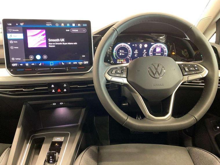 Activated carbon canister, Adaptive cruise control (ACC), Advanced driver attention and drowsiness monitor, Dynamic road sign display, E-Sim card for online connectivity, eCall emergency call system, Multi-color Digital cockpit pro, selection of different info profile possible, Multifunction front facing camera for distance control, Navigation system, Oncoming vehicle braking when turning including swerve support, Speed limiter, Speedo, rev counter, electronic odometer, trip, service interval display, exterior temperature and fuel gauge, Traffic jam assist, Voice enhancer and voice control, Warning signal and warning light for front and rear seatbelts not fastened, We connect plus preparation, We connect preparation, Wireless app connect, Charging cable Mode 2 Type 2 (10A), Charging cable mode 3, type 2 32 A, Electric motor (hybrid electric vehicle) total system output 200kw, unit OEK A, Hybrid propulsion system, Petrol Particulate Filter, Start-stop system with battery regeneration (recuperation - energy recovery during braking), XDS electronic differential lock for improved traction and handling, 2 USB C ports in front, 2 USB charging sockets on the centre console in the rear charging capacity upto 45W, 6 Speakers - 4 in front and 2 in rear with central speaker, Digital radio reception (DAB), Diversity antenna for FM reception, Gaming platform via car app, Infotainment system with 12.9" display, Mobile phone interface with inductive charging feature, 3rd brake light, Automatic headlamp activation with Coming home and Leaving home feature, Body colour door handles, Body colour door mirrors, Exterior mirrors convex on the left and aspherical on the right, Front and rear electric windows, Heat insulating windshield made of laminated glass, LED separate daytime running light, Rear exhaust tailpipe, Rear fog light on one side and reversing lights on both sides, Rear side wing doors, Rear tinted glass 65% light absorbing from B pillar backwards, Rear windscreen washer and wiper with interval delay, Remote electrically foldable door mirrors, puddle lights and reverse activated passenger's door mirror, Standard bumpers, Welcome light with surround lighting, 12V socket in front centre console, 12V socket in luggage compartment, 3 rear head restraints, 3 seat bench in 2nd row, Air care climatronic 3 Zone automatic climate control with rear air conditioning control panel, Chrome plated radiator grille inserts, air vent surrounds and light switch surrounds, Front + rear black carpet mats, Front centre armrest, Front head restraints, Front seat lumbar support adjuster, ISOFIX anchors for child seats on outer rear bench seats and on front passanger seat compatible for i-Size, Luggage compartment lighting, Manual height adjustable front passenger seat, Manually height adjustable driver seat, Plastic gear knob, Rear cupholder and loadthough, Single front passenger seat, Soul black instrument panel, Split folding backrest with centre armrest and unsplit rear seat bench, Standard pedal cluster, Storm grey roof lining, Sun visors with illuminated vanity mirrors, Technology park and comfort pro package - Golf Hatchback, 3 point height adj front seatbelts + pretensioners, 3 rear three point seatbelts, ABS, Autonomous emergency braking front assist with pedestrian and cyclist monitoring, Child locks on rear doors, Driver and front passenger airbag with front passenger airbag deactivation, Electronic parking brake with auto hold, ESC (Electronic Stability Control), Extended pedestrian protection measures, Hill start assist, Rear disc brakes, Two tone horn, Tyre pressure loss indicator, Volkswagen roadside assistance, Anti theft wheel bolts, Preparation for alcohol interlock, Nature cross brushed decorative inserts for dashboard and front door panels, Tool kit for tyre mobility set, Tyre mobility kit Includes 12V compressor and tyre sealant,