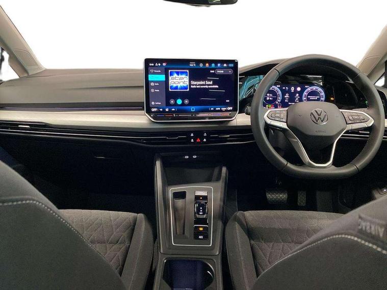 Activated carbon canister, Adaptive cruise control (ACC), Advanced driver attention and drowsiness monitor, Dynamic road sign display, E-Sim card for online connectivity, eCall emergency call system, Multi-color Digital cockpit pro, selection of different info profile possible, Multifunction front facing camera for distance control, Navigation system, Oncoming vehicle braking when turning including swerve support, Speed limiter, Speedo, rev counter, electronic odometer, trip, service interval display, exterior temperature and fuel gauge, Traffic jam assist, Voice enhancer and voice control, Warning signal and warning light for front and rear seatbelts not fastened, We connect plus preparation, We connect preparation, Wireless app connect, Charging cable Mode 2 Type 2 (10A), Charging cable mode 3, type 2 32 A, Electric motor (hybrid electric vehicle) total system output 200kw, unit OEK A, Hybrid propulsion system, Petrol Particulate Filter, Start-stop system with battery regeneration (recuperation - energy recovery during braking), XDS electronic differential lock for improved traction and handling, 2 USB C ports in front, 2 USB charging sockets on the centre console in the rear charging capacity upto 45W, 6 Speakers - 4 in front and 2 in rear with central speaker, Digital radio reception (DAB), Diversity antenna for FM reception, Gaming platform via car app, Infotainment system with 12.9" display, Mobile phone interface with inductive charging feature, 3rd brake light, Automatic headlamp activation with Coming home and Leaving home feature, Body colour door handles, Body colour door mirrors, Exterior mirrors convex on the left and aspherical on the right, Front and rear electric windows, Heat insulating windshield made of laminated glass, LED separate daytime running light, Rear exhaust tailpipe, Rear fog light on one side and reversing lights on both sides, Rear side wing doors, Rear tinted glass 65% light absorbing from B pillar backwards, Rear windscreen washer and wiper with interval delay, Remote electrically foldable door mirrors, puddle lights and reverse activated passenger's door mirror, Standard bumpers, Welcome light with surround lighting, 12V socket in front centre console, 12V socket in luggage compartment, 3 rear head restraints, 3 seat bench in 2nd row, Air care climatronic 3 Zone automatic climate control with rear air conditioning control panel, Chrome plated radiator grille inserts, air vent surrounds and light switch surrounds, Front + rear black carpet mats, Front centre armrest, Front head restraints, Front seat lumbar support adjuster, ISOFIX anchors for child seats on outer rear bench seats and on front passanger seat compatible for i-Size, Luggage compartment lighting, Manual height adjustable front passenger seat, Manually height adjustable driver seat, Plastic gear knob, Rear cupholder and loadthough, Single front passenger seat, Soul black instrument panel, Split folding backrest with centre armrest and unsplit rear seat bench, Standard pedal cluster, Storm grey roof lining, Sun visors with illuminated vanity mirrors, Technology park and comfort pro package - Golf Hatchback, 3 point height adj front seatbelts + pretensioners, 3 rear three point seatbelts, ABS, Autonomous emergency braking front assist with pedestrian and cyclist monitoring, Child locks on rear doors, Driver and front passenger airbag with front passenger airbag deactivation, Electronic parking brake with auto hold, ESC (Electronic Stability Control), Extended pedestrian protection measures, Hill start assist, Rear disc brakes, Two tone horn, Tyre pressure loss indicator, Volkswagen roadside assistance, Anti theft wheel bolts, Preparation for alcohol interlock, Nature cross brushed decorative inserts for dashboard and front door panels, Tool kit for tyre mobility set, Tyre mobility kit Includes 12V compressor and tyre sealant,