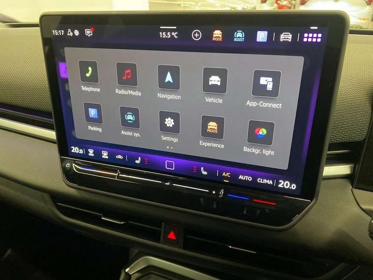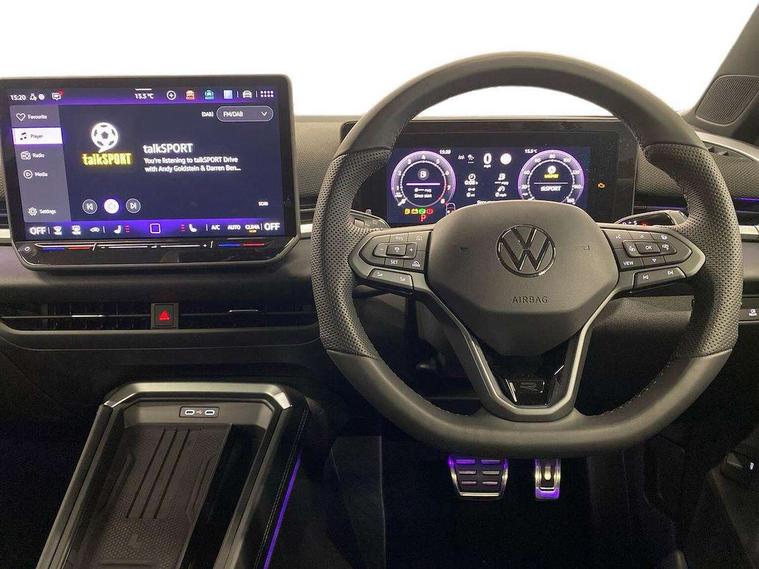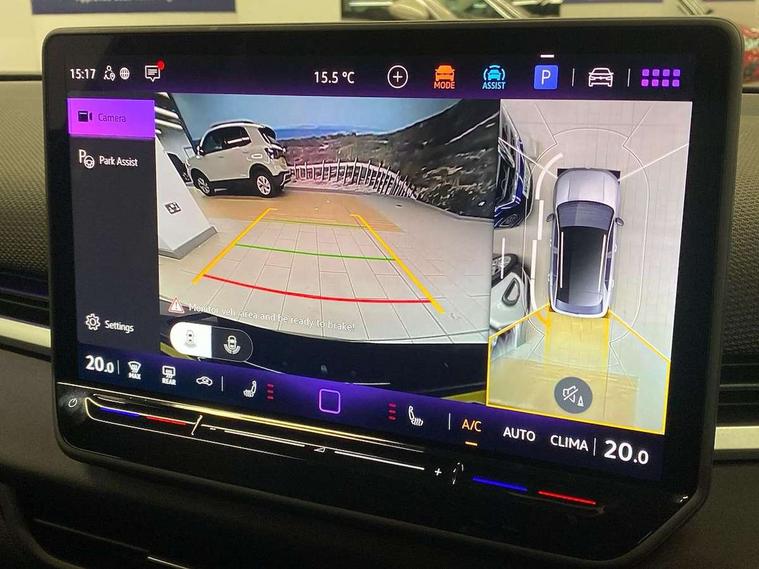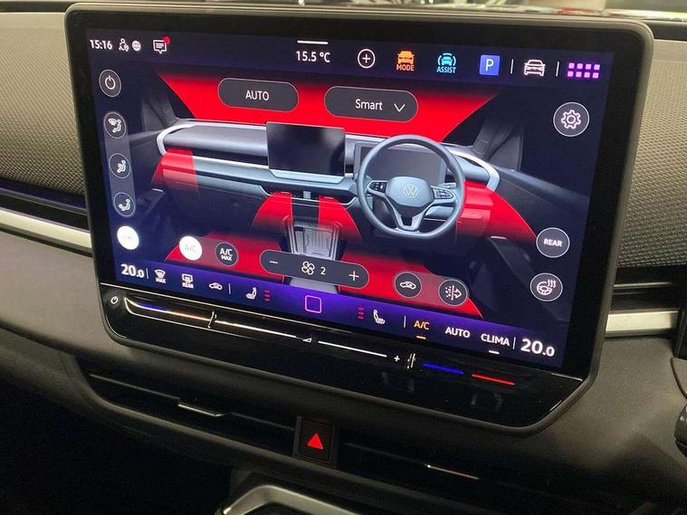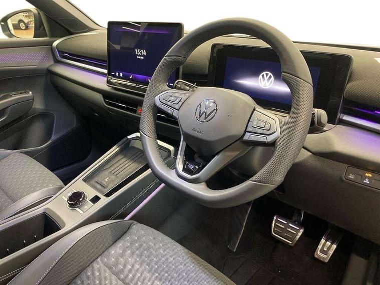 Adaptive cruise control, Driver attention monitor and driver alert system, Driving experience control with atmosphere selection, Dynamic road sign display, E-Sim card for online connectivity, Emergency call service, Front and rear parking sensors, Front cross traffic assist, Lane change system, Side assist, Rear traffic alert and Exit warning system, Lane keeping system Lane Assist, Multi color digital cockpit pro, Navigation system, Oncoming vehicle braking when turning including swerve support, PAS, Rear view camera, Voice activation spoken voice commands for telephone and navigation system, Warning sound and light for front seatbelts unfastened, Wireless app connect, Wireless Smartphone charger, Hybrid drive system MHEV, Sports suspension - Sport +15mm, Start/stop function with battery regeneration, 12.9" infotainment display, 2 USB C ports in front, 1 USB C charging socket on the rear center console, charging capacity up to 45W, DAB Digital radio, Diversity antenna for FM reception, Mobile phone interface with inductive charging feature, We Connect and We Connect Plus functionality, 3D LED rear combination lamps, Auto dimming interior rear view mirror, Automatic headlight control with LED separate daytime running lights with coming/leaving home function, Electrically folding, adjustable and heated door mirrors with front passenger exterior mirror lowering function, High Beam Assist, automatic sensing for switching between dipped and main beam, Illuminated door handle recesses, Illuminated Volkswagen logo and molding, LED 3rd brake light, R-Line design body coloured bumpers, Rain sensor, Rear fog light on one side and reversing lights on both sides, Rear privacy glass, Rear side wing doors, Rear wiper, Surround lighting with welcome light, Without headlamp washer system with washer fluid level indicator, 12V power socket in centre console, 3 rear head restraints, 3 seat bench in 2nd row, Air care climatronic 3 zone air conditioning system with rear air conditioning control panel, Aluminium front scuff plates with R Line logo, Artvelours cloth upholstery, Black roof lining, Brushed stainless steel pedals, Chrome plated radiator grille inserts, air vent surrounds and light switch surrounds, Door and side trim panel with leatherette insert, Driver/front passenger seat height adjustment, Front + rear carpet mats, Front centre armrest, Front comfort sports seats, Front footwell illumination, Heated front seats, Heated leather wrapped multi function steering wheel with paddle shift, Inserts of seats in fabric R-Line, Integrated head restraints on front seats, Interior ambient lighting with 30 colour options, ISOFIX anchors for child seats on outer rear bench seats and on front passanger seat compatible for i-Size, Luggage compartment floor adjustable in 2 heights, for flat cargo area, Non-folding front passenger seat backrest, Power-adjustable lumbar support in front seats, Single front passenger seat, Soul black dashboard, Sports steering wheel with touch control, Sunvisors with illuminated vanity mirrors, Unsplit rear seat bench, asymmetric folding backrest, with centre armrest, 3 point height adj front seatbelts + pretensioners, 3 point seatbelts in outer rear seats, ABS, Automatic emergency braking, Child locks on rear doors, Curtain and side airbags in front with centre airbag, Driver and front passenger airbag with front passenger airbag deactivation, Drivers seatbelt reminder, Electronic parking brake with auto hold function, Electronic stability control (ESC) and Electromechanical brake booster, First aid kit with warning triangle and safety vest, Front Assist with pedestrian and cyclist detection, Front disc brakes, Hill start assist, Rear disc brakes, Tyre pressure loss indicator, Alarm with interior protection, Keyless locking and starting system keyless access with safelock, Decorative inserts in matte pyrite silver, Decorative material set,