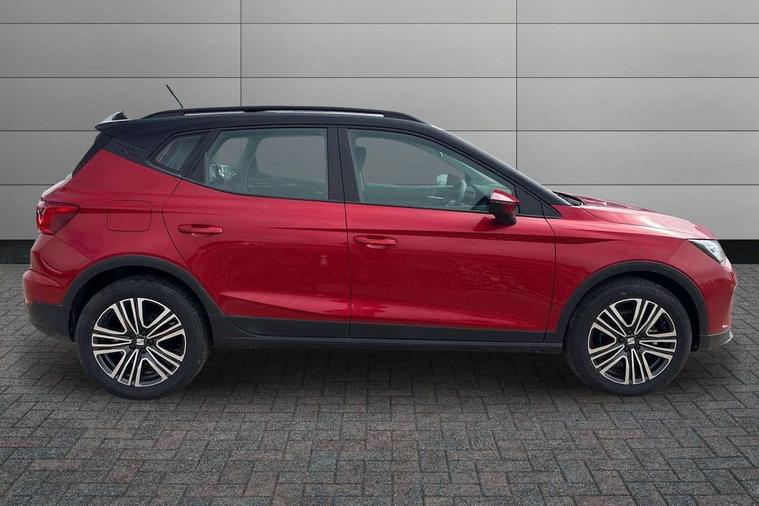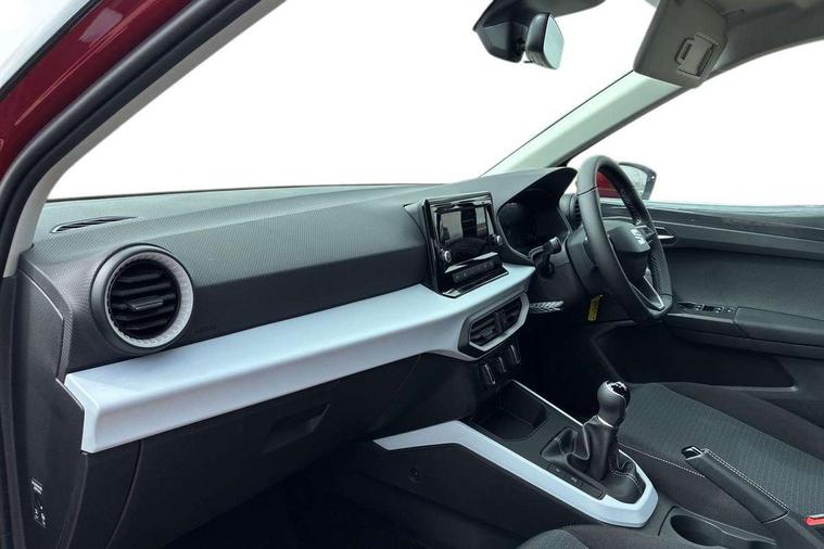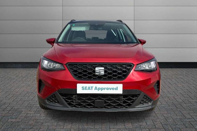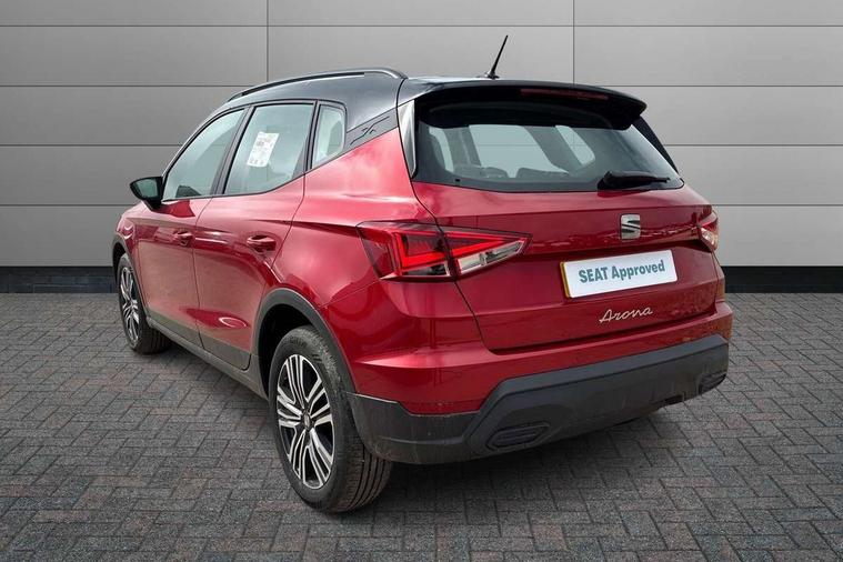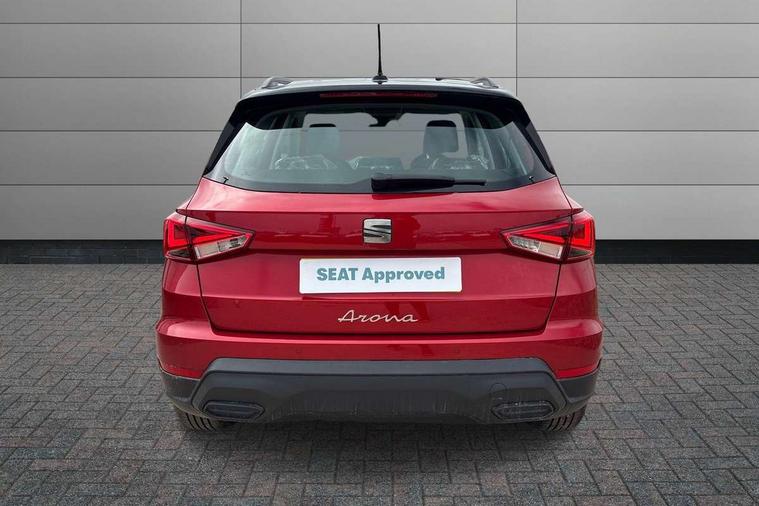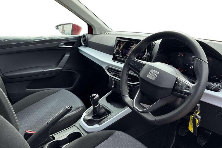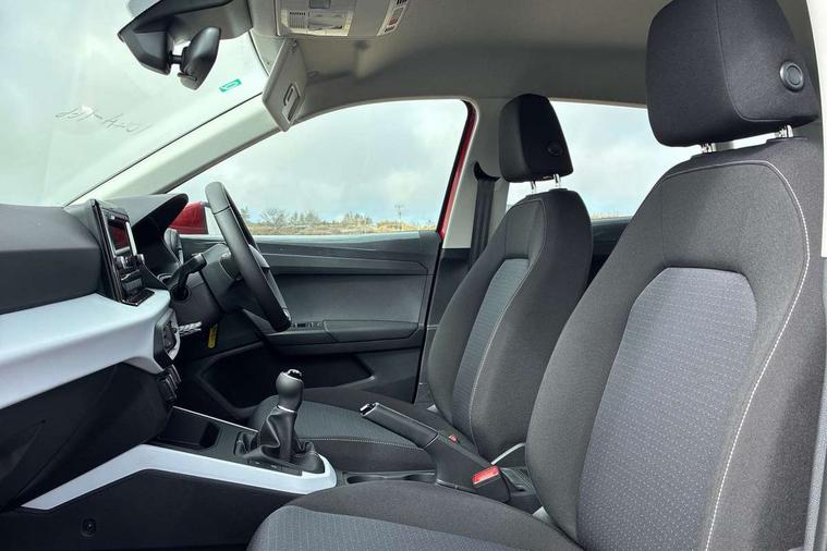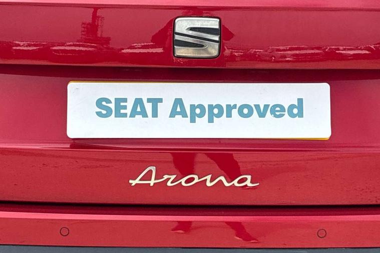 'Lights On' Reminder warning buzzer, 8" Digital cockpit, Cruise control and speed limiter, Digital clock, E-call, Electric speed sensitive power steering, Full link smartphone integration with mirror link, wireless apple carplay, Google android auto + USB Type C cable for apple and android devices, Lane keeping system, Low fuel warning light, Outside temperature display, RPM counter, Trip computer, 6 speakers, Bluetooth interface for hands free and audio streaming, DAB digital radio and AM/FM radio, Media system with 8.25" colour touchscreen with USB port (type c), Steering wheel mounted audio controls, Anti theft roof antenna, Automatic activation of hazard warning lights, Black roof rails and window surrounds, Body coloured bumpers, Body coloured door handle inserts, Body coloured door mirrors, Dimming rear view mirror, ECO LED automatic headlights and LED daytime running lights, Electric adjustable door mirrors, Electric front/rear windows, Hidden exhaust pipe, LED rear tail lights and licence plate lights, Licence plate lights, Protective side mouldings, Rain sensing wipers, Rear fog lights, Rear side wing doors, Rear spoiler, Rear window wash/wipe, Third brake light, Visible VIN plate, 2 cupholders, 3 seat bench in 2nd row, 60/40 split folding rear seat, Air conditioning, Cloth upholstery, Double boot floor, Driver sunvisor with covered mirror + card holder, Dust/pollen filter, Gear shift indicator, Grey interior air vents, Grey interior roof, Height adjustable front seats, Height/reach adjustable steering column, Illuminated boot, Instrument lighting with brightness control, ISOFIX points in outer rear seats with top tether anchorage points, Leather steering wheel/gear knob/handbrake, Passenger sunvisor with vanity mirror, Potentiometer, Single front passenger seat, Two front and three rear height adjustable headrests, Interior chrome pack - Arona, Safe and driving pack (S) - Arona, 3 point seatbelts on all rear seats, ABS, Active front headrests, Child locks on rear doors, Driver and front passenger airbags with front passenger airbag de activation, front side and curtain airbags, Emergency Brake Assist (EBA) and front assist, Forward collision warning and autonomous emergency braking, Front and rear seatbelt reminder, Hill hold control, Multi-Collision braking, Tiredness recognition system, Traction control, Tyre pressure monitoring system, Deadlock, Electronic engine immobiliser, Locking wheel bolts, Remote central locking, Titan black dashboard, 17" Dynamic machined alloy wheels,