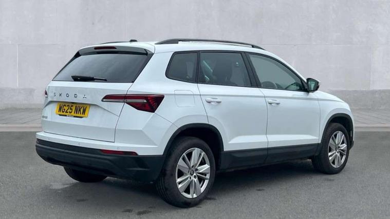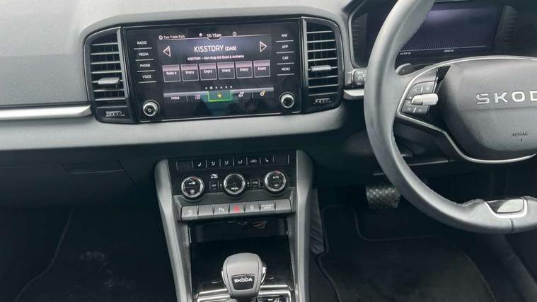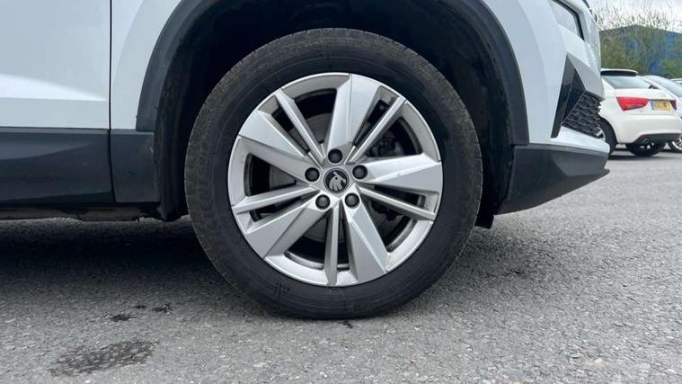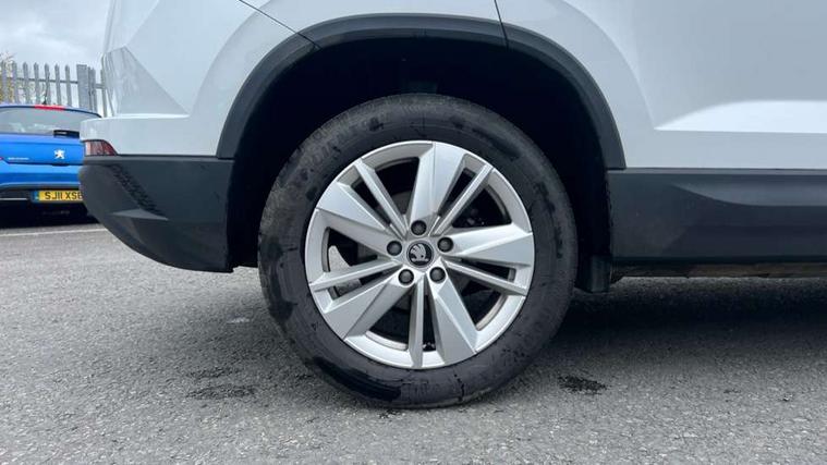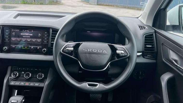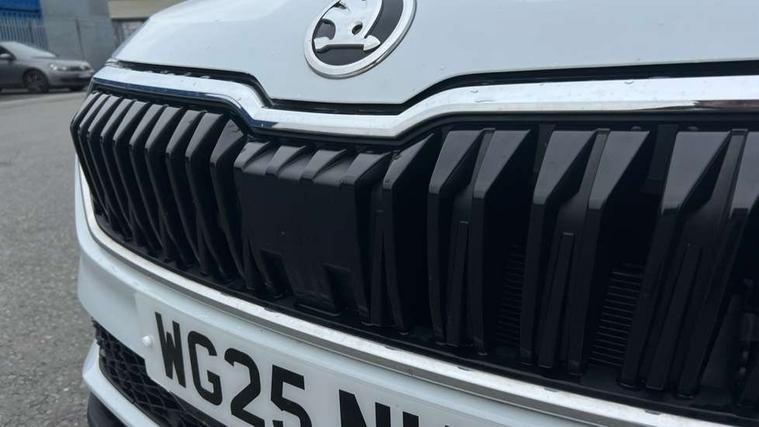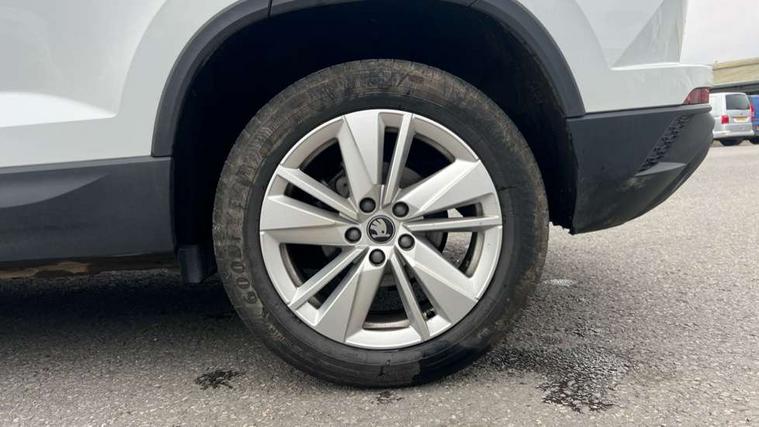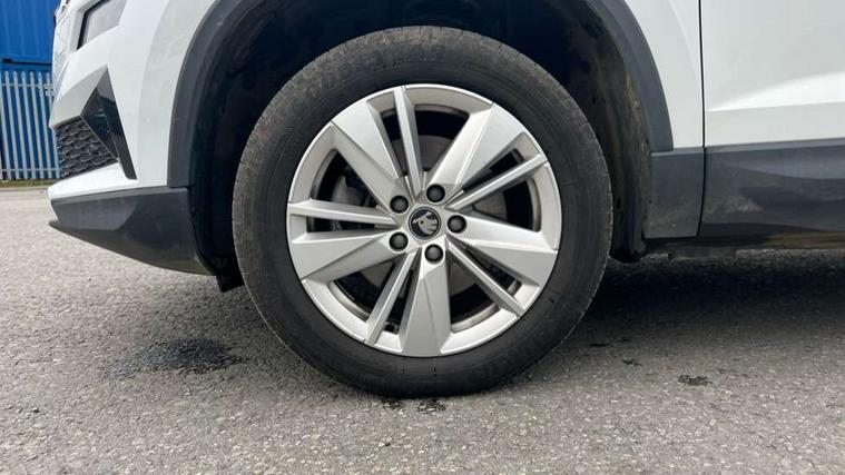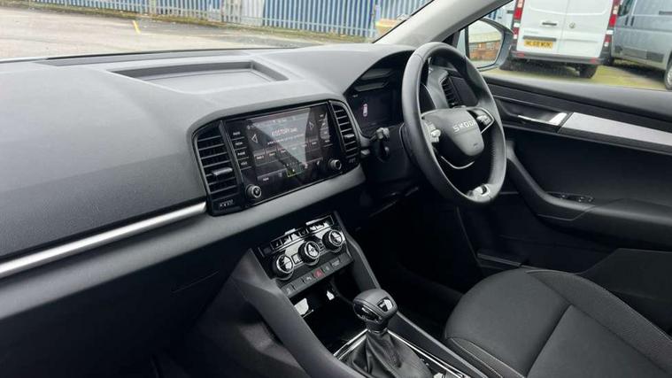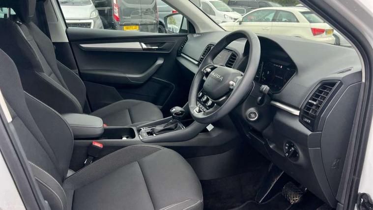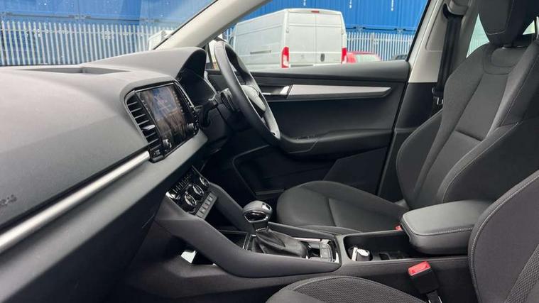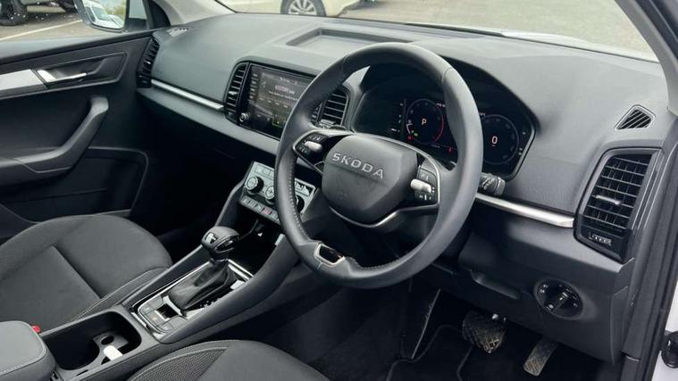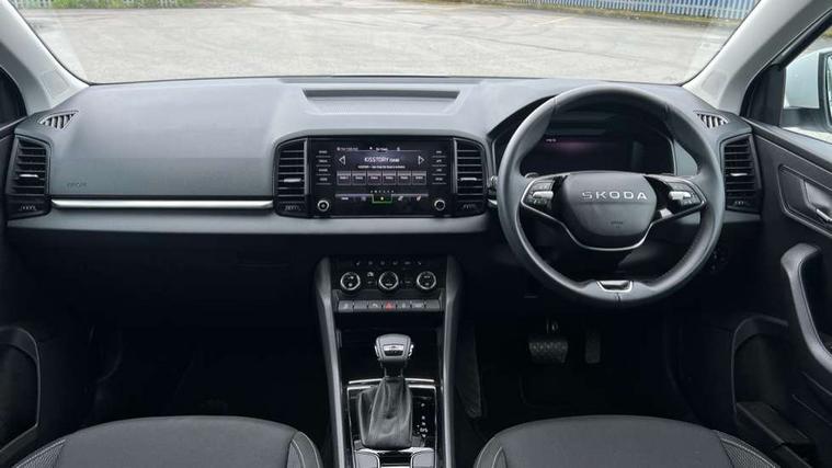 Advanced driver attention and drowsiness monitor, Amundsen navigation system with 8" touchscreen display and integrated WLAN and web radio, Electro-mechanical PAS, Emergency services call system, Lane assist, Outside temperature gauge, Sensor for driver assistance systems, Service interval indicator, SmartLink wireless for Apple and wired for Android, Start/stop system with regenerative braking, Traffic sign recognition, USB C Port x 2 in front centre console, Virtual Cockpit - 10.25" digital display, Wireless smartphone charging, 8 Speakers, DAB radio with Bluetooth, USB connection, Acoustic glass, Aero front windscreen wipers with intermittent function, Auto dimming rear view mirror with light and rain sensors, Black electric window control buttons, Body colour door mirrors and handles, Electric front and rear windows with child proof lock, Electrically adjustable heated folding and auto dimming door mirrors, Front fog lights, Headlight range control, Heated rear windscreen, LED daytime running lights, LED Headlights, LED rear lights with high functionality welcome effect and dynamic indicators, Light assistant (coming/leaving home/tunnel light), Plastic scuff plates in door apertures, Privacy glass, Rear side wing doors, Rear window wiper with washer system and intermittent control, Safety reflectors on front doors, Third brake light, Unique dark chrome design logo on alloy wheels, 1.5 litre bottle holders in driver and front passenger door panels, 12V socket in boot, 12v socket in front centre armrest with storage compartment and rear air vents, 2 spoke leather heated multifunction steering wheel with DSG paddles, 2 x Tablet holder, 3 rear height adjustable headrests, 3 seat bench in 2nd row, 4 foldable roof handles with rear coat hooks, Black floor carpet, Cargo elements in boot, Chrome inner door handles, Driver/front passenger reading lights, Foldable hooks in the boot, Folding tables on the front seat backrests, Front head restraints, Height adjustable driver and passenger seat, Height adjustable front three point seats belts with tensioners, Height/reach adjust steering wheel, Ice scraper, Illuminated glovebox, Illuminated luggage compartment, Interior noise suppression, Isofix child seat preparation for front passenger seat, Isofix child seat preparation outer rear, Loft fabric upholstery, Manual lumbar support for front seats, Pearl grey interior ceiling, Pen holder, Pollen filter, Rear boot cover, Rear package tray, Rear reading lights, Rubbish bin door, Safety vest holder, Single front passenger seat, Skoda lettering on steering wheel, Storage box in upper central dashboard closed, Sunvisors with illuminated vanity mirrors, Textile floor mats, Ticket holder, Umbrella under passenger seat, Under passenger seat storage compartment, Non Smokers pack, Parking pack - Karoq, Winter pack with heated front seats - Karoq, Automatic door unlocking in case of crash, Automatic fuel cut off in case of crash, Driver airbag, Electronic parking brake with auto hold function, Emergency rear braking signal, ESC (incl. ABS+MSR+ASR+EDS+HBA+DSR+RBS+MKB), Front assist, Front side airbags, Head airbags, Hill hold control, Knee airbags, Passenger airbag with switch-off function, Pedestrian monitor, Power operated child safety locks, Seatbelt reminder signalisation and pretensioner for all seats, Three point seatbelts rear, Two tone horn, Tyre pressure monitor, Alarm with interior monitoring, back up horn and tilt sensor with safe function, Electronic engine immobiliser, Keyless entry and start/stop, Remote central locking with 2 remote folding keys, Anodized cross door decor, Black centre console, Chrome framed air vents, Satin black dashboard, Satin black door trim, Anti-theft wheel bolts protection, Breakdown and tool kit,