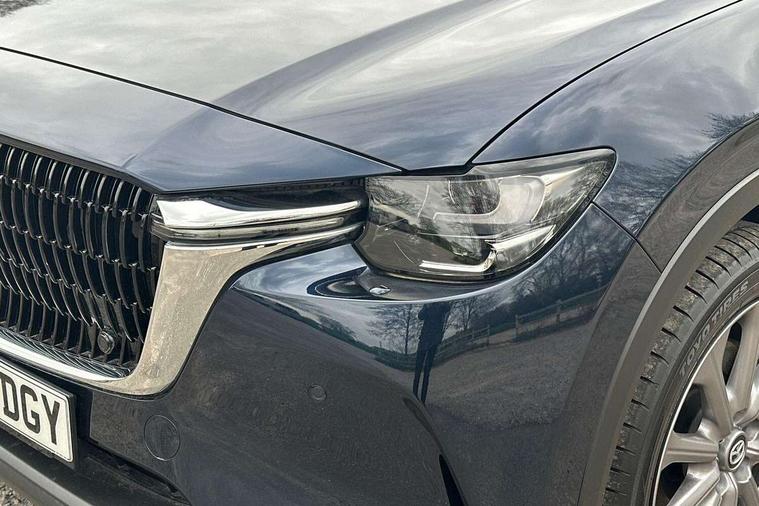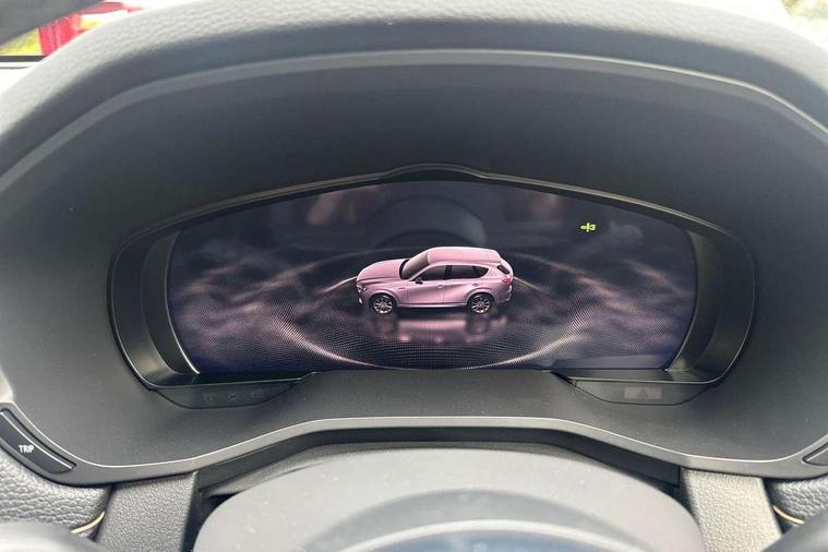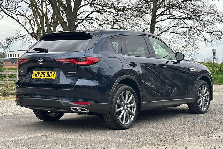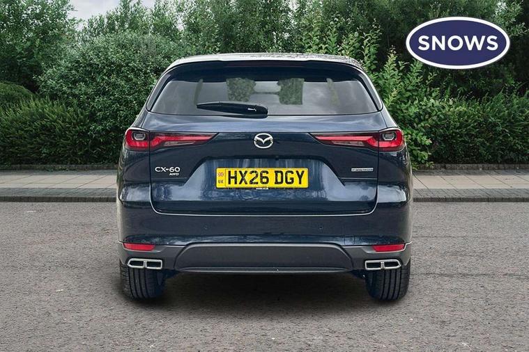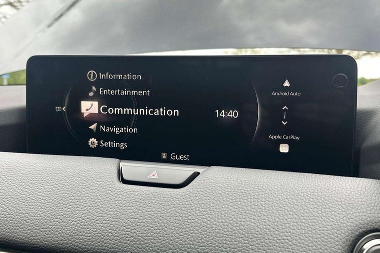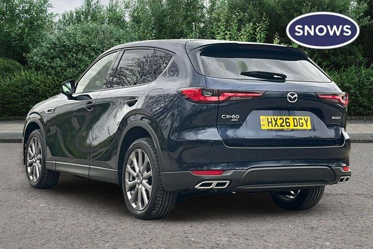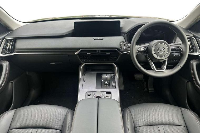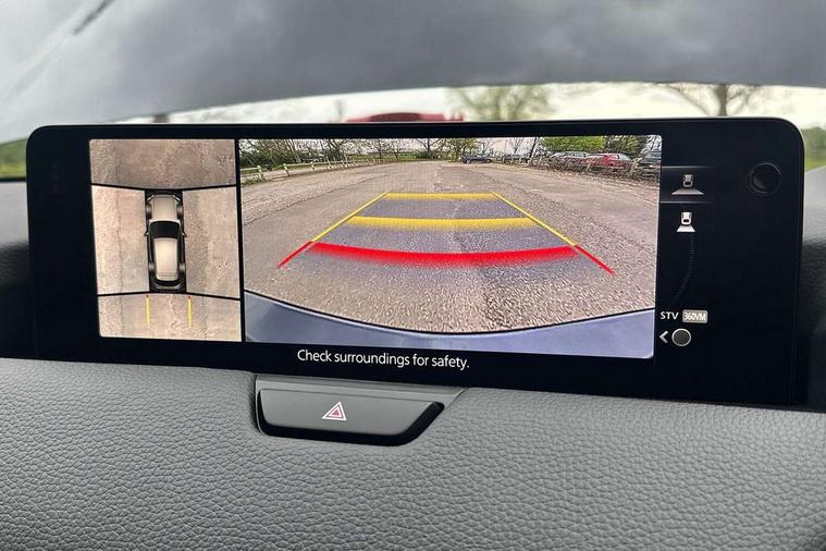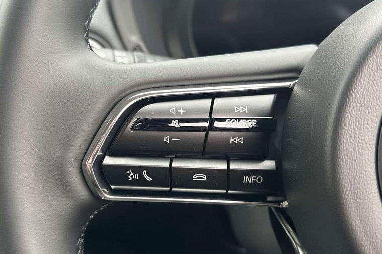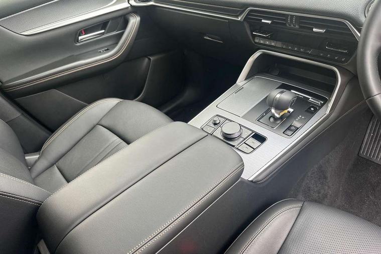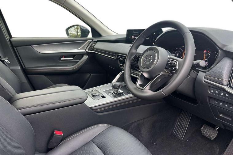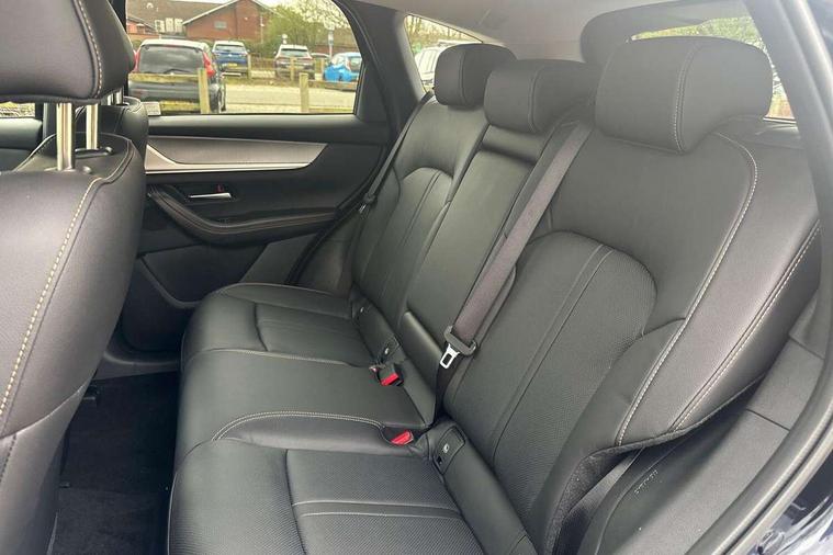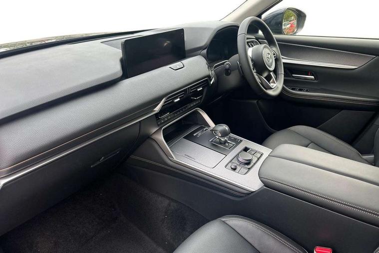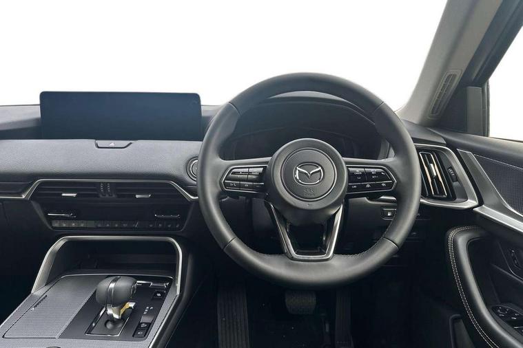 Low washer fluid warning light, 12.3" Colour entertainment centre display with mazda connect infotainment, 12.3" TFT Colour display, Adjustable speed limiter, Blind spot assist, Blind spot monitoring with rear cross traffic alert, Cruise control, Distance alert system, Driver attention alert system, E-call with GPS, Emergency lane keeping with blind spot assist, Emergency stop signalling system, Exit warning function, Front and rear parking sensors, Integrated bluetooth, Intelligent speed assist, Kinematic posture control, Lane keep assist system (LAS) with Lane departure warning system (LDWS), Mazda hybrid navigation system with european mapping, Multimedia Commander, PAS, Power lift gate with handsfree function, Power liftgate, Power start/stop button, Reversing camera with static guide lines, Speed alert, Traffic sign recognition enhanced with mandated excessive speed warning, Trip computer, Windscreen projected colour active driving display, Wireless apple car play/android Auto, Type 2 Mode 2 cable for AC charging via UK 3-pin plug, 7.2 kw On board Charger, Mi-Drive (Normal, Sport, Off-road, Towing and EV mode), Paddle shift, Type 2 Mode 3 cable for AC charging via home or public charge points, AM / FM / DAB radio with 8 speakers, Steering wheel mounted audio/bluetooth controls, USB-C inputs (x2 front and x2 rear), Auto dimming driver's door mirror, Automatic headlight levelling, B-pillar and C-pillar garnishes in gloss black finish, Body colour roof spoiler, Body coloured bumpers, Body coloured door mirrors, Chrome front side garish, Coming/leaving home lighting function, Dark plated headlight lense, Dusk sensing headlights, Electric front/rear windows with one touch auto up/down, Electrically adjustable, heated auto power folding door mirrors, Frameless auto dimming interior rear view mirror, Front kodo turn signal, Front wiper de-icer, Gloss black bar type front grille with bright finish signature wing, Headlight washers, High beam control, LED 3rd brake light, LED headlamps, LED rear signature combination lamps, Piano black window surrounds, Rain sensing front wipers with adjustable sensitivity and speed, Rear side wing doors, Rear wiper, Roof pillars and roof lining finished in lighter colour to soften the overall look, Satin black lower bumper, wheel arch and side mouldings, Signature LED daytime running lights, Silver decoration panel, 12v power outlet - front, 12V socket in boot, 3 height adjustable rear headrests, 3 seat bench in 2nd row, 40/20/40 split folding rear seats with quick levers in the boot, Cargo net, Chrome interior trim accents with steering wheel centre bezel, surround of engine start / stop button and glove box handle, Door panel trim vinyl leather with armrest, Driver and front passenger two rear grab handles with rear coat hooks, Driver and front passenger visors with covered vanity mirror and driver ticket holder, Driver seat manual slide, recline, height and seat tilt adjust, Driver, front passenger and two rear door pockets, Driver/passenger front seatback pockets, Dual zone climate control air conditioning with rear air vents, Featuring black vinyl leather dashboard trim with titanium coloured accents, Folding rear centre armrest with two cup holders, Front and rear signature illumination, Front centre storage with two cupholders, Front down lamp with front and rear foot lamps, Front headrests, Front passengers seat manual slide, recline and height adjustment, Glovebox illumination, Heated front seats with 3 stage setting, Heated leather wrapped steering wheel, ISOFIX child seat anchorage points attached on outer rear seats, Karakuri tonneau cover, Leather upholstery, Leather wrapped gear shift knob, LED illumination luggage compartment, Manual telescopic and tilt adjustment steering wheel, Practical and spacious front centre armrest storage, Rear seat recline function for rear passenger comfort, Remote fold down rear seats, Roof lining (ceiling and pillars) - Grey, Roof mounted sunglasses holder, Single front passenger seat, 3 point ELR front seat belts x2 with pretensioners, 3 point ELR rear seat belts, Active bonnet, Anti-lock braking system (ABS), Drivers knee airbag, DSC - Dynamic Stability Control, Electronic parking brake with auto disengage function and auto hold function, Front and rear curtain airbags, Front dual stage driver and single stage front passenger airbags, Front passenger airbag cut-off switch, Front side airbags, Front smart city brake support, Hill decent control, Hill launch assist, Manual rear child locks, Seatbelt reminder for driver/front passenger and rear seats, Traction control, Tyre pressure monitoring system (TPMS), Remote central locking with deadlocking and automatic door lock when driving, Smart keyless entry, Thatcham accredited alarm and immobiliser, Mesh metal film centre console panel, 18" Grey metallic alloy wheels, Emergency tyre repair kit,