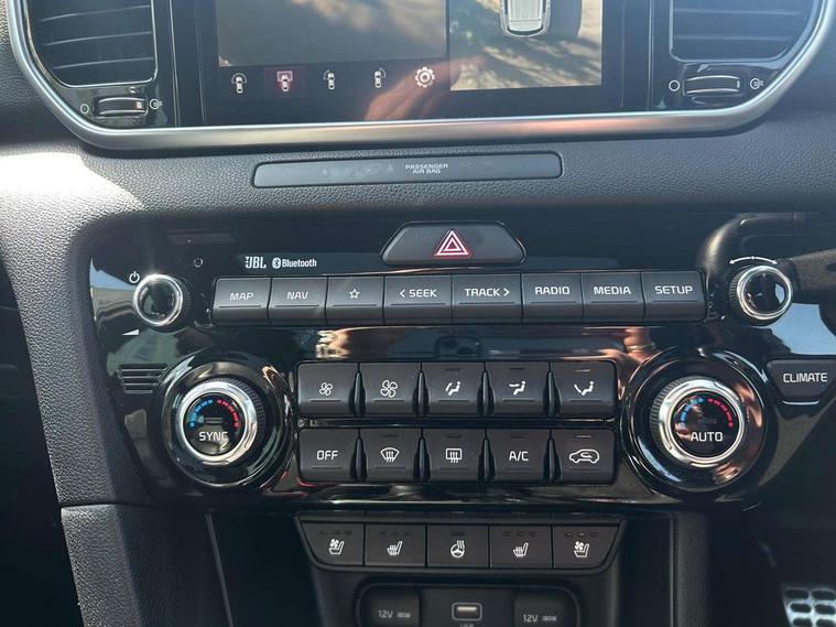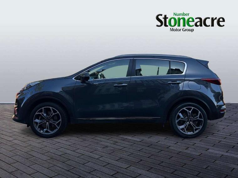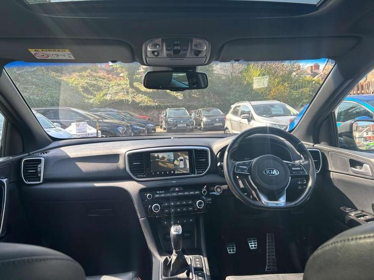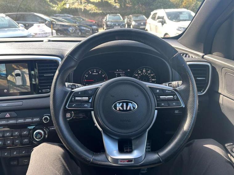 360 degree around view monitor, 4.2" supervision colour cluster display, 8" touchscreen satellite navigation with European mapping and traffic messaging channel, Android auto with voice control, Apple car play with voice control, Blind spot collision warning, Drive mode selector, Driver attention warning, Emergency stop signalling system, Forward collision avoidance assist, Front parking sensor, Kia connected services featuring TomTom live, Lane keep assist, Rear parking sensor, Reversing camera, Smart cruise control with stop and go functionality, Smart power tailgate, Speed limit information, Speed sensitive power steering, Telematics system with UVO connect services, Trip computer, Windscreen washer level indicator, Wireless Smartphone charger, Intelligent Stop and Go, Bluetooth audio streaming, DAB Radio with MP3, JBL Premium sound system with 8 speakers, external amp, subwoofer and front centre speaker, Rear USB port, Steering wheel mounted audio controls, USB/iPod/auxiliary input connections, All round electric windows with drivers and front passenger auto up/down function, Auto dimming rear view mirror, Automatic lighting control, Automatic window defogger, Black wheel arch body mouldings and side sills with dark chrome insert, Body colour door handles with chrome inserts, Body colour door mirrors, Chrome window surround, Dark chrome front bumper insert, Dark chrome front grille surround, Electric panoramic glass sunroof (Electric one touch with safety function), Electrically adjustable/heated/folding door mirrors with LED indicators, Front wiper de-icer, High beam assist, High gloss black blade mesh radiator grille, LED Bi-Function headlights, LED daytime running lights, LED ice cube front fog lights, LED rear lights, Privacy glass - Rear windows and tailgate, Rain sensing front wipers, Rear spoiler, Rear wiper, Roof rails, Shark fin antenna, Silver painted front and rear skid plates, Tinted glass, Trailer stability assist, Welcome and follow-me home light functionality, Wide view drivers door mirror, 10 way driver/8 way passenger electrically power adjustable seats, 12V power in front and rear centre console, 3 x passenger assist grips, 60/40 split folding rear seat, Air filter, All-round height adjustable headrests, Aluminium door scuff plates, Aluminium pedals, Black headlining, Centre console storage box, Chrome boot sill guard, D-Shaped sports leather steering wheel and perforated inserts with GT-Line logo, Driver and front passenger side sunvisors with illuminated vanity mirrors, Drivers seat power lumbar support, Dual zone automatic air conditioning, Front and rear door storage, Front cabin LED map light with sunglasses case, Front door courtesy reflectors, Front seat and rear pockets, Front/rear centre armrests, Gear shift indicator, Glovebox illumination, Heated front and outer rear seats, Heated steering wheel, Interior door lock/unlock function, ISOFIX Child seat top tethers and anchor fixings, Leather trimmed door armrests, Leather trimmed gearshift, Leather upholstery with red piping and stitching, Luggage area LED light, Luggage area load cover, Luggage net with hooks, Paddle shift controls, Rear centre armrest with cupholder, Rear coat hooks, Satin chrome interior door handles, Side cabin LED lights, Tilt/telescopic adjustable steering wheel, Ventilated front seats, Ventilation ducts to rear compartment, Active front headrests, All round 3-point seatbelts, Anti-lock braking system with electronic brakeforce distribution, Dual front side airbags, Electronic parking brake, Electronic stability control with downhill brake control, Front passenger airbag cut-off switch, Front seatbelt pretensioners + load limiters, Height adjustable front seatbelts, Hill start assist control (HAC), Impact sensing auto door unlocking, Rear door child safety locks, Traction control, Twin curtain airbags with roll over sensor, Twin front airbags, Tyre pressure monitoring system, Advanced anti-theft system including immobiliser and alarm, Door deadlocks, Engine Start/Stop Button with Smart Entry System, Locking wheel nuts, Speed sensitive auto door locking, Visible vehicle identification number, High gloss black centre fascia, 19" alloy Wheels B-type, Tyre mobility kit,