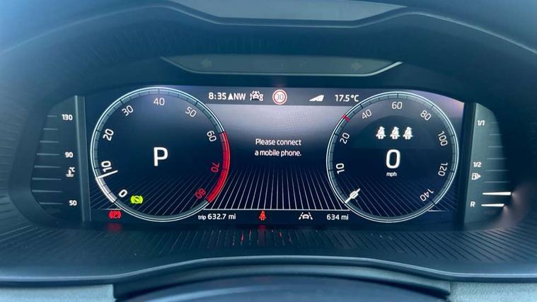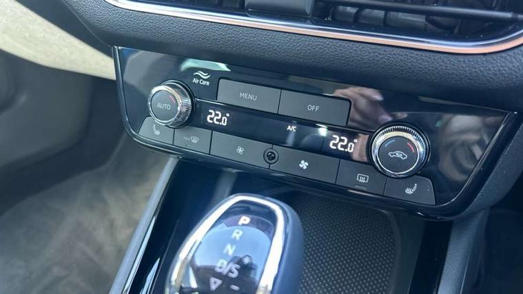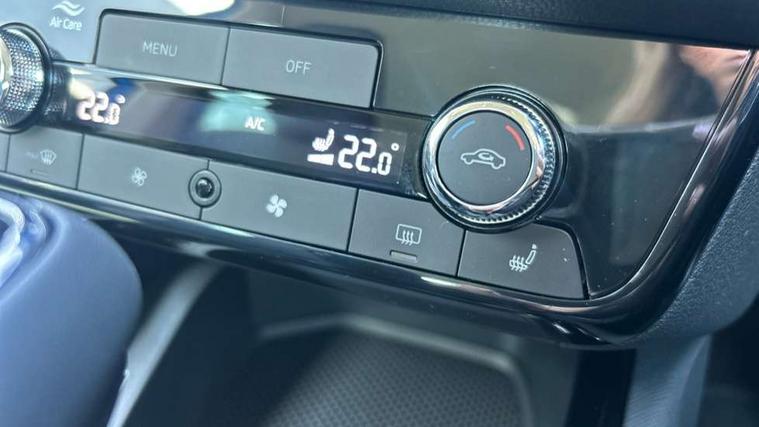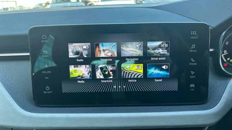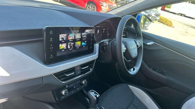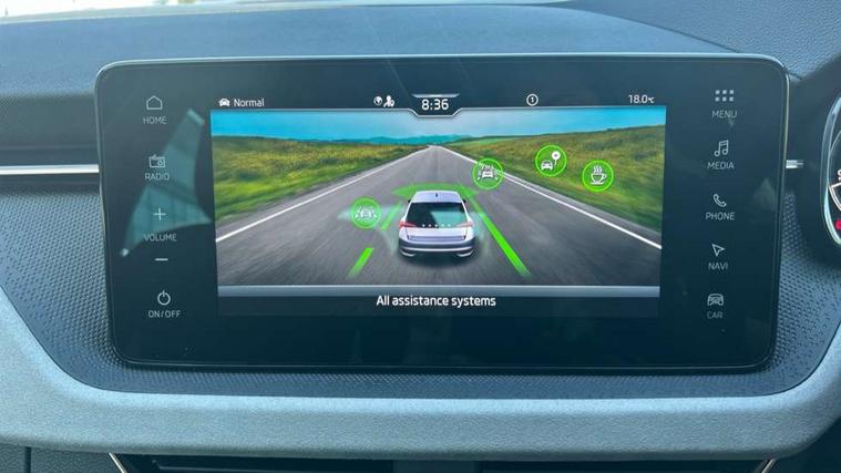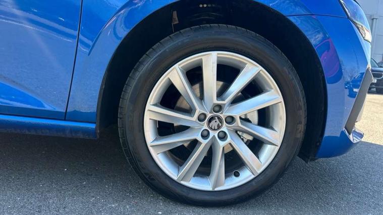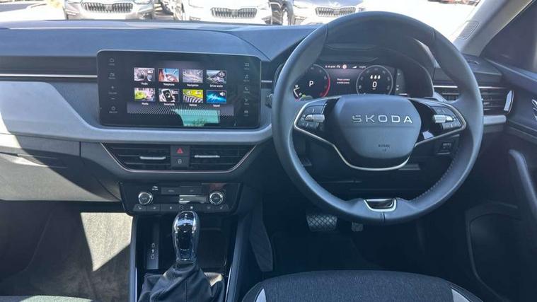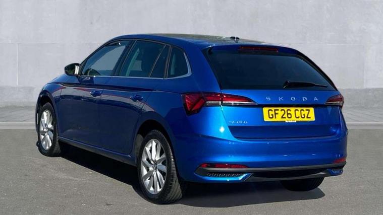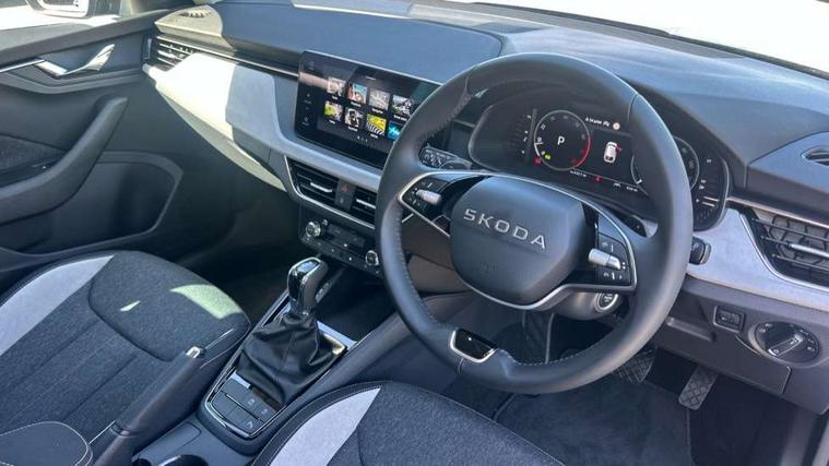Advanced driver attention and drowsiness monitor, Bluetooth, e-Call (emergency call), Front assist system, PAS, Rear parking sensors, Rear view camera, Speed limiter, Tailgate, Traffic sign recognition, Virtual Cockpit - 10.25" digital display, Voice control system, Wireless smartlink, 4 USB C ports, 9.2" Skoda navigation display, DAB radio, Auto dimming rear view mirror, Automatic headlight control with manual coming and leaving home feature, Automatic intermittent wipers, Body colour bumpers, Body colour door mirrors and handles, Chrome moulding around grille, Chrome window frames, Front and rear electric windows, Heated rear window, LED 3rd brake light, LED daytime running lights, LED high beam, LED low beam, Light sensors, Privacy glass, Rear LED fog light, Rear side wing doors, Rear wiper, Tinted windows, Unique dark chrome design logo on alloy wheels, 12V socket in luggage compartment, 3 seat bench in 2nd row, Ambient lighting in white/red, Black / Copper armrest stitching, Cargo elements, Chrome inner door handles, Copper hotstamping, Door inserts in accent black, Driver and passenger sun visors with vanity mirror, Dual zone climate control, Front and rear roof lights, Front centre armrest, Front head restraints, Glasses storage in roof liner, Height adjustable driver seat, Height adjustable passenger seat, Ice scraper, Illuminated glove compartment, Inner circulation control with pollen filter, ISOFIX for front passenger seat, Isofix preparation for back seats, Leather gearknob and handbrake lever, Lodge cloth upholstery, Luggage net under rear parcel shelf, Manual lumbar support for front seats, Net package and top tether hooks in boot space, Pocket on the back of both front seats, incl. mobile phone pockets, Rear centre armrest, Single front passenger seat, Skoda lettering on steering wheel, Textile floor mats, Third rear headrest, Ticket holder, Top tether for front passenger seat, Umbrella in driver's door, Convenience pack without rear camera - Scala, 3x3 point rear seatbelts, ABS, Child locks, Curtain airbags and front side airbags, Disc brakes, Driver and front passenger airbags, ESP, Hill hold control, Manual leather parking brake, One tone horn, Passenger airbag switch off function, Seatbelt reminder for driver and front passenger, Tyre pressure monitoring system, Anti theft alarm system with interior monitoring, backup horn and towing protection, Anti-theft wheel bolts, Remote central locking with 2 remote folding keys, SAFE function for remote central locking, Decorative inserts,