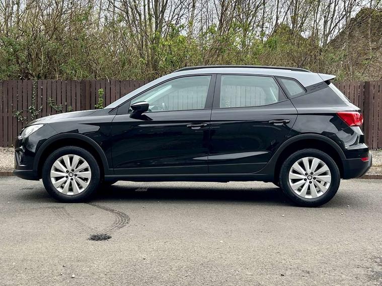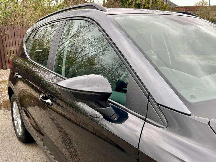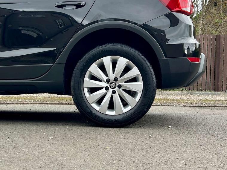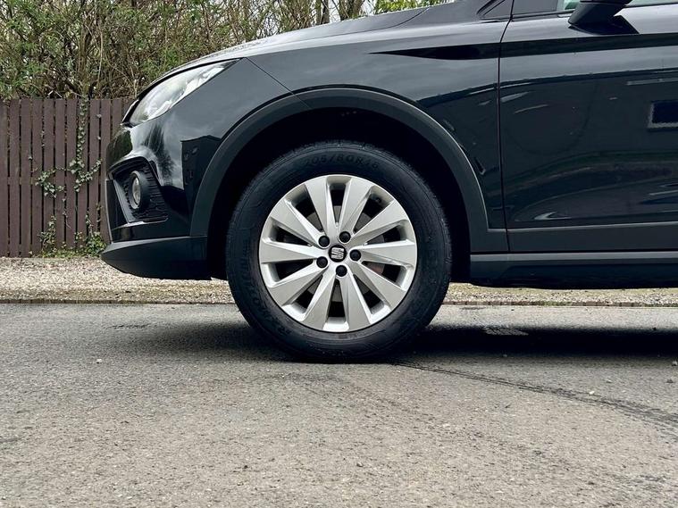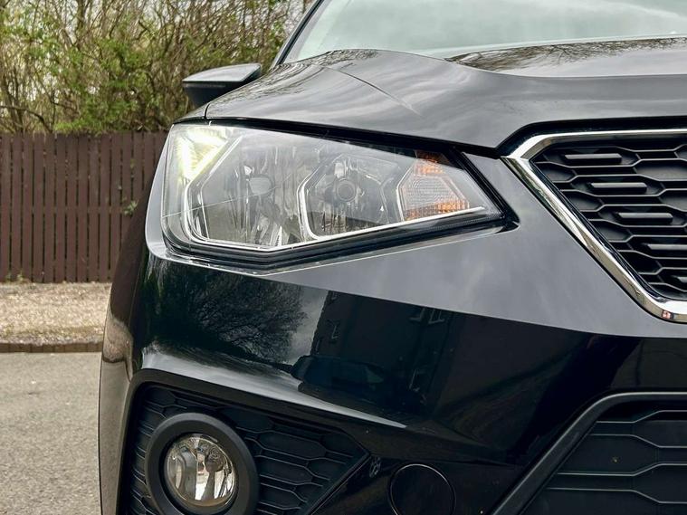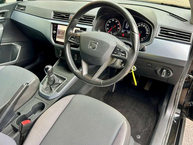 Interior chrome line trim, Connectivity pack plus - Arona, 17" Dynamic alloy wheels, 2 folding remote keys with window open/close function, Immobiliser, Locking wheel bolts, Remote central locking + deadlocks, 6 speakers, Bluetooth interface for hands free and audio streaming, DAB Digital radio, Steering wheel mounted audio controls, 3 point seatbelts on all rear seats, ABS+EBA, Child locks on rear doors, Driver/Front Passenger airbags, Electronic stability control, Front and rear seatbelt reminder, Front side/curtain airbags, Height adjustable active front headrests, Hill hold control + Tyre Pressure monitor, Multi-Collision braking, Passenger airbag deactivate switch, Tiredness recognition system, Traction control, Automatic activation of hazard warning lights, Automatic headlights, Black roof rails, Black window surrounds, Body coloured bumpers, Body coloured door handle inserts, Chrome grille surround, Electric adjustable door mirrors, Electric front/rear windows with one touch/auto up/down, Electric headlight adjustment, Front fog lights with static cornering function, LED daytime running lights, Rear window wash/wipe, 2 cupholders, 3 rear height adjustable headrests, 60/40 split folding rear seat, Air conditioning, Ambient interior lighting, Cloth upholstery, Double boot floor, Driver and passenger sunvisors, Driver/front passenger seat height adjustment, Dust/pollen filter, Footwell ambient lighting, Front courtesy lights, Front reading light, Height/reach adjustable steering column, Illuminated boot, Isofix attachments on rear seats, Leather handbrake, Leather steering wheel and gear knob, 'Lights On' Reminder warning buzzer, Cruise control, Electric speed sensitive power steering, Front assistant collision mitigation, Outside temperature display, Rear parking sensor, Trip computer, Comfort suspension,