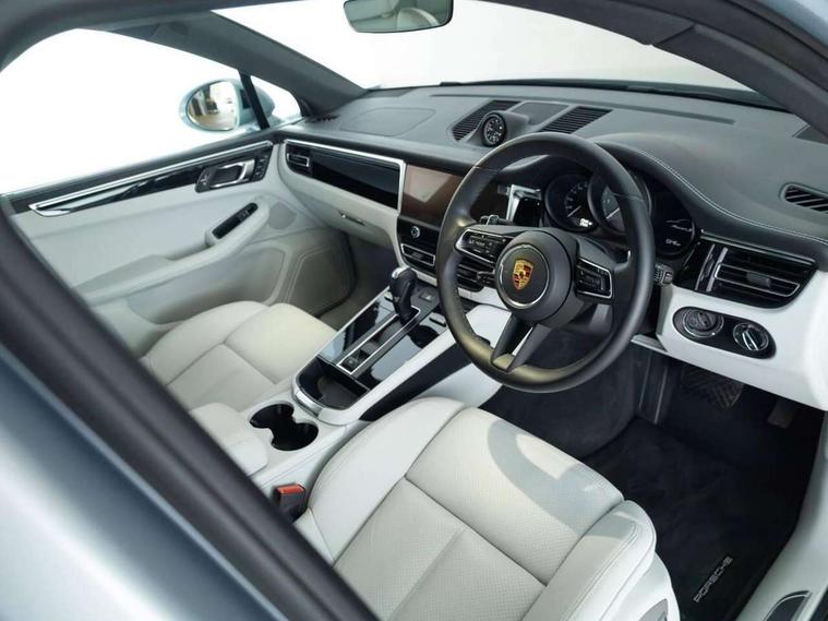 Analogue clock on dashboard, Automatic start/stop system, Automatic tailgate, Digital boost pressure gauge on colour display of instrument cluster, eCall emergency call system, Instrument cluster with high resolution 4.8-inch TFT display, gear indicator for PDK, service interval display, external temperature indicator, fuel gauge, Off-road button, On board computer, Porsche Communication Management (PCM) including online navigation module, mobile phone preparation, audio interfaces and voice control system, Sports button in centre console, 7-Speed Porsche Doppelkupplung (PDK) with automatic mode and manual controls (gearshift paddles) on steering wheel, Direct fuel injection (DFI), Gasoline particulate filter, Steel spring suspension, VarioCam Plus variable valve timing and switchable valve lift, 2 USB sockets in rear centre console, Apple CarPlay with Siri voice recognition, Connect Plus including online navigation, LTE communication module with SIM card reader, wireless internet access, Porsche Car Connect services, DAB Digital radio, Porsche Vehicle Traking System Plus (PVTS Plus), Smartphone compartment with wireless charging, Two USB C charging and connectivity ports in the front centre console storage compartment, Active radiator grille shutters, Automatic headlight activation including welcome home lighting, Bumper system with high strength cross members and two deformation elements + One threaded fixture point for towing eye contained in onboard tool kit, Dynamic cornering lights, speed-sensitive headlight and dynamic range control, adverse weather function, four-point LED daytime running lights, Electric front and rear windows with remote closing function + anti trap + one touch, Electrically folding and heated exterior mirrors, Front light modules with LED position lights and direction indicators, Front windscreen wipers with two speeds, intermittent wipe and rain sensor, Front with integrated cooling air intakes, Fully galvanised body, Heated rear window with automatic switch off, High level 3rd LED brake light integrated into roof spoiler, Loading edge protection in aluminium, Rear side wing doors, Rear window wiper with intermittent function and washer jet, Roof spoiler in high gloss black, Towbar preparation, 3 adjustable rear headrests, 3 rear seats, 3 zone auto climate control separate temperature setting+air recirculation include quality sensor, airflow regulation+AC MAX button+humidity sensor, 4 way adjustable front head restraints, 40:20:40 split folding rear bench seat, Cloth hook b-pillar, Fold up centre console armrest with fore/aft adjustment, Front and rear bottle holders in door panels, Front passenger seat, Glove compartment, Isofix fastening system for child seats on outer rear seats, Luggage compartment cover, Particle/pollen filter with active carbon filter, Rear armrest with 2 cupholders, Storage bin in centre console, Storage compartment in side of luggage compartment and storage compartment in spare wheel recess, Storage pocket in front and rear doors, Two integrated cup holders in front with variable diameter, Two socket 12V power outlets in front console and luggage compartment, Uncovered storage compartment in centre console, Ambient comfort lighting pack - Macan, Lower exterior trim package in black - Macan, 3-point automatic seatbelts with front and outer rear seats pretensioners and force limiter + manually height adjustable seatbelt + reminder warning, 6-piston aluminium monobloc fixed caliper brakes at front, internally vented brake discs, Auto hold function, Brake discs with 360 mm diameter at front and 330 mm at rear, Child locks on rear doors, Curtain airbags along entire roof frame and side windows from A pillar to the C pillar, Electronic parking brake, Front passenger airbag deactivation facility for installation of child seats indicator in overhead console, Front side airbags integrated into seat, Full size driver and passenger airbags, Multi-Collision braking, Porsche hill control (PHC), PTM(Porsche Traction Management) and All-wheel drive with map-controlled multi-plate clutch, Roll over sensor for curtain airbag and seatbelt pretensioners, Side impact protection in doors, Tyre pressure monitoring system, Vehicle stability system, Porsche stability management (PSM) including ABS, ASR, ABD, MSR and trailer stability management, Vented discs brake with combination floating calipers at rear, Alarm system with ultrasonic interior surveillance, Dashcam preparation, Engine immobiliser with key transponder, Remote control central locking, Accent trims with silver coloured finish,