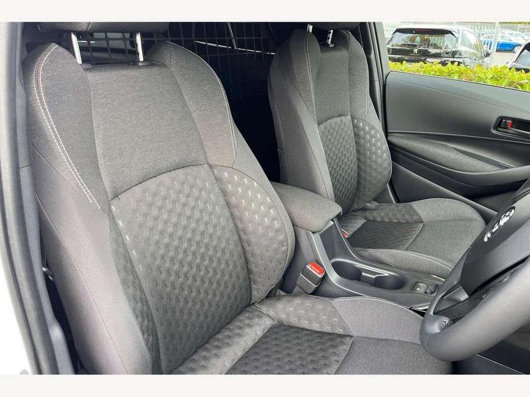 Driver attention alert, eCall emergency system, Electric power steering, Lane departure alert with steering control, Lane trace assist, MyT connected services, Pre-collision system with pedestrian and cyclist detection, Reversing camera, Road sign assist, Smart phone integration with Android auto & Apple CarPlay, Static guide lines on reversing camera, Toyota safety sense with adaptive cruise control, lane keep assist, Tyre pressure warning system (TPWS), Voice recognition, 4.2 colour multi information display, 6 speakers, 8 inch multimedia display with DAB and bluetooth, Toyota touch 2 multimedia system, USB connector, Auto Headlights, Automatic high beam, Black lower front grille, Black window frame, Body coloured door mirrors and door handles, Body coloured front spoiler, Body coloured rear bumpers, Body coloured rear spoiler, Body coloured shark fin antenna, Electrically heated and adjustable door mirrors, Emergency brake light assist (EBS), Follow me home headlights, Gloss black upper front grille, Intermittent windscreen, LED Daytime running lights, LED multi-reflector headlights, Light remind warning, Manual headlight levelling, Manually retractable door mirrors, Mesh lower front grille, Paint protection wax/film wrap guard, Rear window defogger system, 12v power outlet in boot, 2 front seats, A/C ECO mode switch, Automatic dual zone air conditioning, Black interior door handles, Boot light, Electric adjustable lumbar support for driver seat, Fabric armrests, Fabric upholstery, Floor mats, Front 12v power outlet, Full metal bulkhead, Heated and manually height adjustable front seats, Illuminated entry system, Key reminder warning, Manually sliding driver and front passenger seat, Rubber lined load bay, Satin chrome gear shift surround on centre console and speedometer, Satin chrome insert on dashboard, 7 airbags, Child safety door lock, Remote door lock, ABS + EBD, Adjustable speed limiter, Hill start assist control, 15" steel wheels with centre wheel caps, Tyre repair kit,
