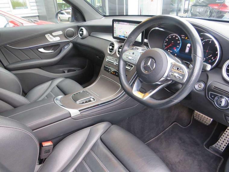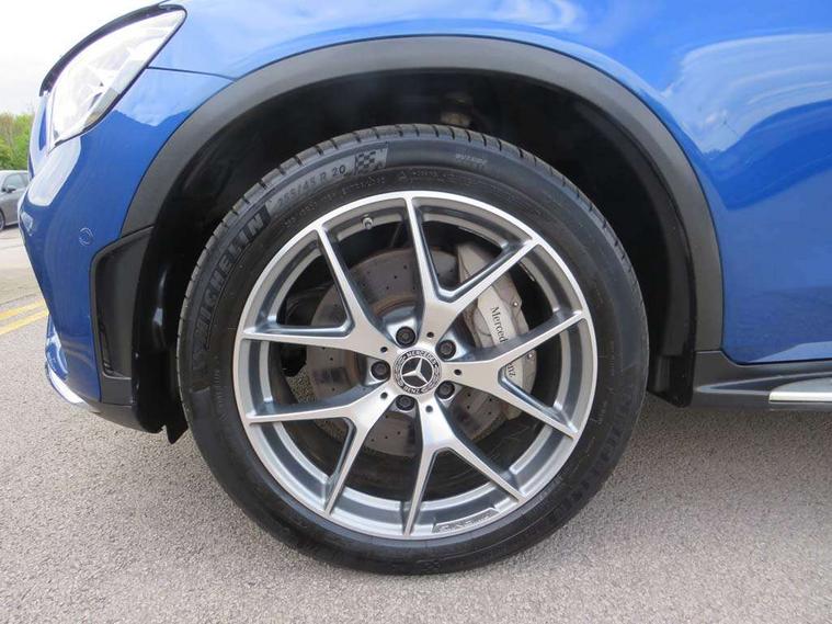 360 degree camera, Active parking assist with parktronic system, Attention assist, Bluetooth interface for hands free telephone, Collision prevention assist plus, DYNAMIC SELECT with a choice of driving modes (ECO, Comfort, Sport, Sport+ and Individual), Easy pack automatic powered tailgate, eCall emergency call system, ECO start/stop function, Hard disk navigation, Hey Mercedes Voice activation, Instrument cluster with12.3-inch digital instrument cluster display. High resolution instrument cluster screen with choice of three display styles, MBUX Interior assistant, Mercedes connect me with remote online services, Multi function trip computer, Outside temperature display, rear seatbelt status indicator, Remote boot release, Service indicator (ASSYST), Smartphone integration with Apple CarPlay and Android auto, Traffic sign assist, 4MATIC permanent four wheel drive, 66 litre fuel tank, 9G TRONIC plus automatic transmission with steering column gear selector, DIRECT SELECT steering wheel gearshift paddles, Diesel particulate filter, Sports suspension tuned for improved handling and driving dynamics, 5 speakers, Frontbass loudspeakers, MBUX multimedia system with DAB digital radio and touchpad, Media display 10.25-inch touchscreen display, Pre installation for Mercedes Benz Link, USB ports x 2 in centre console, Adaptive brake lights, Aluminium roof rails, AMG bodystyling - AMG front apron with sporty air intakes and chrome trim element, AMG diffuser-look rear apron with insert in black, Body colour door mirrors, Body coloured bumpers, Electric panoramic glass sunroof, Electric windows one touch open/close, Electrically adjustable and heated door mirrors, Front, side and rear exterior chrome trim, Headlamp assist automatic headlamp activation, High level LED brake light, LED high performance headlamps with integrated LED daytime running lights, LED tail lamp, Motor way mode function and locator lighting, Privacy glass with dark glass from B pillar backwards, Radiator diamond grille, Rain sensor windscreen wipers, Range adjustable headlights, Rear side wing doors, Rear wiper, Roof spoiler, Running boards, Tinted glass all round with single layer safety glass, Tinted rear windows, Two chrome plated tailpipe trim elements, Variable front intermittent wipers, 2 way rear head restraints, 3-spoke multifunction sport AMG steering wheel in black nappa leather with flattened bottom section, chrome insert and perforated leather in grip area, 40:20:40 split folding rear seats, Ambient lighting, AMG floor mats with edging and embroidered AMG lettering, AMG sports seats, Artico man-made leather upper dashboard with contrast topstitching, Automatic child seat recognition sensor, Black roof lining, Dividing net - rear, Double cup holder in centre console, Easy-pack removable load compartment cover, Front armrest with storage box, Front door sills with Mercedes Benz lettering, Front head restraints, Front passenger seat, Heated front seats, Illuminated and lockable glove compartment, Leather upholstery, Rear top tether child seat ISOFIX attachment, Sports pedals with stainless steel surfaces and rubber studs, Steering wheel with touch control buttons, THERMOTRONIC 3 zone automatic climate control, Interior lighting pack - GLC, Memory pack - GLC, Mirror pack - GLC, Storage pack - GLC, 3 rear 3 point seatbelts, Active bonnet, Adaptive brake system with HOLD function and brake drying in the wet, ASR, Black seat belts, Brake calipers with Mercedes-Benz lettering + perforated brake discs, Child proof door locks, Dual-stage airbags - driver and front passenger, driver knee bag and window bags for driver, front passenger and rear passengers, Electronic parking brake, Electronic stability programme (ESP) with curve dynamic assist and cross wind assist, Front and rear seatbelt reminder, Front passenger seat occupancy sensor, Hill hold function, Tyre pressure monitoring system, Warning triangle and first aid kit, Alarm system/interior protection/immobiliser, Automatic door locking, Keyless Go entry and starting function, Remote central locking, Anthracite open pore oak wood trim, 20" AMG 5 twin spoke alloy wheels painted in titanium grey with high sheen finish, Run flat tyres, Summer tyres,