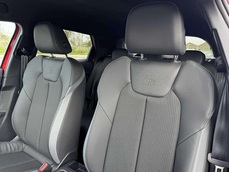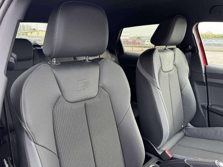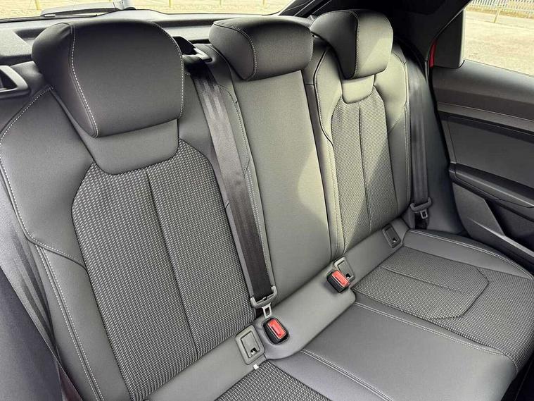 10.25" Digital instrument cluster display classis style instrument dials + speed, odometer, time, outside temperature, telephone menu + fuel level warning, Advanced driver attention and drowsiness monitor, Audi connect emergency call and service, Audi drive select, Audi remote connect and control, Bluetooth interface, Camera based traffic sign recognition, Cruise control, Driver's information system, Electromechanical power steering, Lane departure warning system, Rear parking sensor, Service interval indicator, Smartphone interface, Speed limiter, Start stop system with recuperation, Voice control system, Washer fluid level indicator, Sports suspension, 2 x USB type C connection points, 6 loudspeakers, DAB Digital radio, MMI radio plus with 10.1" colour MMI display screen and MMI touch, Auto dimming rear view mirror, Body coloured door mirrors, Door sill trims with aluminium inlays and S line logo in front, Electric front and rear windows, Electrically adjustable, heated, folding door mirrors with integrated LED side indicator, Front side air inlets in grained matt black and C frame in anthracite black, Headlight cleaning system, Heat insulating glass windscreen and side windows, Heated rear windscreen, High level LED brake light, LED daytime running lights, LED headlights with range control LED rear lights + dynamic rear indicators, Light and rain sensors, Privacy glass, Radiator grille and rear diffuser in matt anthracite black, Radiator protective grille frame in matt aluminium silver, Rear fog lights, Rear side wing doors, Rear wiper, Side front spoiler lips in grained matt black, 12V socket in centre console with two cup holders, 3 rear seats with headrests, 3 seat bench in 2nd row, 3 spoke leather multi-function plus steering wheel features S badging and grips in perforated leather with contrast stitching, 40:60 Split folding rear seat or fully collapsed, Black carpets, Black cloth headlining, Front and rear velour black floor mats with contrast stitching in fine silver, Front head restraints, Front passenger seat, Height and reach adjustable steering wheel, Interior lighting includes roof module, front and rear reading lights and right luggage compartment lighting, ISOFIX child seat mounting for front passenger and outer rear seats including top tether attachment point of outer rear seats, Leather gear knob with aluminium trim, Leather handbrake grip, Manual air conditioning, Manual height adjustable for driver and front passenger seat, Manually adjustable lumbar support in front seats, Stainless steel pedals, Ambient lighting package - A1, Luggage compartment pack - A1, S line exterior styling pack - A1 Sportback, 3x3 point rear seatbelts, Audi pre-sense front with pedestrain and cyclist recognition, Brake assist function, Driver and front passenger airbag with front side and head airbags, Electronic Stability Control including ABS, EBD, ASR and EDL, Front passenger airbag deactivation switch, Hill hold assist, Manual rear child locks, Seatbelt height adjustment for front seats, Seatbelt monitoring, Tyre pressure loss indicator, Warning triangle and first aid kit, Anti theft alarm, Anti theft wheel bolts, Immobiliser, Remote control key with safelock, Aluminium trim for control switches, air vents and digital instrument cluster, Black dashboard, Silver grey inlays polygon structure in diamond paint finish, Structured grey accent surfaces insert of air vents, interior door handle recesses and centre console in quartz paint finish,