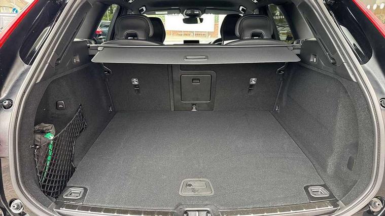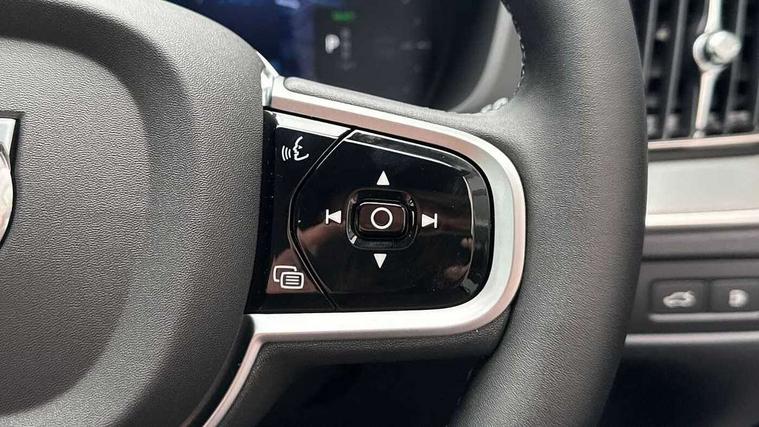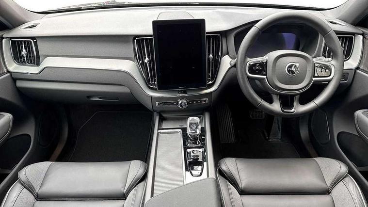 11.2" centre console touch screen, 12.3" Progressive Driver Display, 360 degree surround view parking camera with side proximity sensors, Adaptive cruise control, Adjustable steering wheel force, Android auto (Wired), Apple carplay (wired), Bluetooth handsfree system, Drive mode settings, Driver alert control with lane keeping aid, Driver understanding system, Emergency services call system, Front and rear park assist, Google Automotive Services, Intelligent speed assistance, Oncoming Lane Mitigation, PAS, Power operated tailgate with handsfree opening and closing, Service interval indicator, Speed limiter, Speed sensitive steering, Trip computer, Volvo cars services with app, Volvo on call with App, Wireless/Inductive Mobile Phone Charging, 2 phase on board charger 6.4kW (home charging limited to 3.7kW), 6m 3 phase 16amp Type 2 / mode 3 charge cable, 8 speed automatic transmission with start/stop + manual change functions, Electric rear axle drive, Recharging port located in nearside front wing, DAB Digital radio, Low speed exterior sound speaker, Premium Sound by Harman Kardon, dirac unison, dolby pro logic II surround sound, 13 speakers/600W output and fresh air subwoofer, Steering wheel remote infotainment controls, Adaptive brake lights with high level LED brake lights, Auto dimming interior + exterior mirrors, Automatic headlight levelling system, Automatic LED Headlights + Active high beam incorporating daytime running lights, Dark tinted windows for rear side windows and cargo area, Electric adjustable/heated/auto power folding door mirrors, Electric front+rear windows, Front aluminium tread plates, Heated front windscreen, High gloss black door mirrors and window surround, High gloss black front and rear bumper decoratives, High gloss black front grille, Surround, Strikethrough and Ironmark, High gloss black rear model, engine and volvo logo badges, Home safe and approach lighting, Integrated roof rails in high gloss black, Puddle lights, Rain sensor with automatic windscreen wiper activation, Rear side wing doors, Rear wiper, Roof antenna, Roof spoiler, Tinted windscreen, Visible VIN plate, 12V socket in front tunnel console and luggage compartment, 2 zone electronic climate control with Clean zone air quality system and pollen filter, 3 seat bench in 2nd row, 3 Spoke tailored steering wheel with chrome trim, A-pillar parking ticket holder, Air purifier particulate matter (PM) 2.5 filter, B Pillar ventilation, Bright metal luggage scuff plate, Centre console cupholders and storage, Charcoal floor mats, Contour sports seats with nappa soft leather/textile upholstery, Front and rear courtesy lights, Front and rear door pocket illumination, Front cupholder illumination, Front footwell illumination, Front reading lights, Front seat cushion extensions, Glovebox compartment with illumination, Head restraints for all seats, Heated front seats, Heated steering wheel, Height/reach adjustable steering column, Illuminated luggage compartment, Illuminated vanity mirrors + ticket holder, Inner door release handle illumination, ISOFIX attachment on outer rear seats, Load cover, Load protection net, Multi directional lumbar support, Power driver seat with memory + exterior mirrors memory, Power height adjustable passenger seat, Power passenger seat with memory, Rear armrest with cupholder, Rear footwell and front and rear side step illumination, Rear reading lights, Rear seat concealed storage, Single front passenger seat, Tailgate illumination and ambient door lighting, Underfloor stowage compartment, Versatile split folding rear seat - 60/40, Driver assist pack without Adaptive cruise control - XC60, 5 three point seatbelts, City safety with steering support with Pedestrian + cyclist + front collision warning with full auto brake and rear auto brake, Drivers knee airbag, Dual stage driver/passenger airbags, Electronic parking brake with auto hold, First aid kit, Front seats SIPS airbags, Hill descent control - Off-road drive mode, Hill start assist, IC (Inflatable Curtains) - Full Length, Passenger airbag cut-off device, Power child locks on rear doors, Road sign information display, Run off Road Mitigation, Run off Road Protection, Seatbelt reminder and pretensioners, SIPS (Side Impact Protection System), Slippery road and hazard light alert, Stability and Traction Control with Spin control, Engine Drag Control and Corner Traction Control, Tyre pressure monitoring system, Vehicle deceleration control with Anti-lock Brake System, Electronic Brake Distribution and Emergency Brake Assist, Warning triangle, WHIPS whiplash protection system - front, Anti-theft alarm including immobiliser/volume sensor + level sensor, Key integrated remote control central locking + fuel flap with deadlocking system and auto open/close power windows, Keyless Drive (includes Keyless Entry and Keyless Start), Locking wheel nuts, Private locking for tailgate, 21" 5 Double spoke high gloss black alloy wheels, Summer tyres, Tyre sealant kit + 12v compressor,