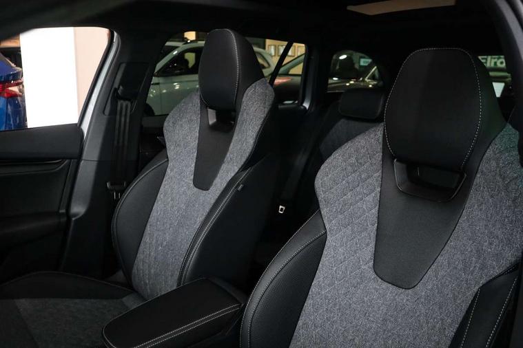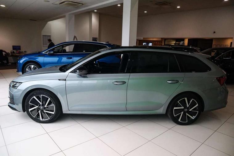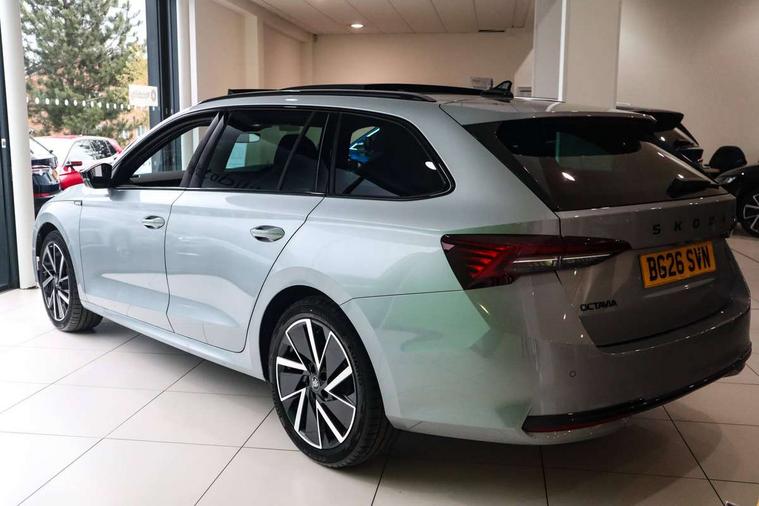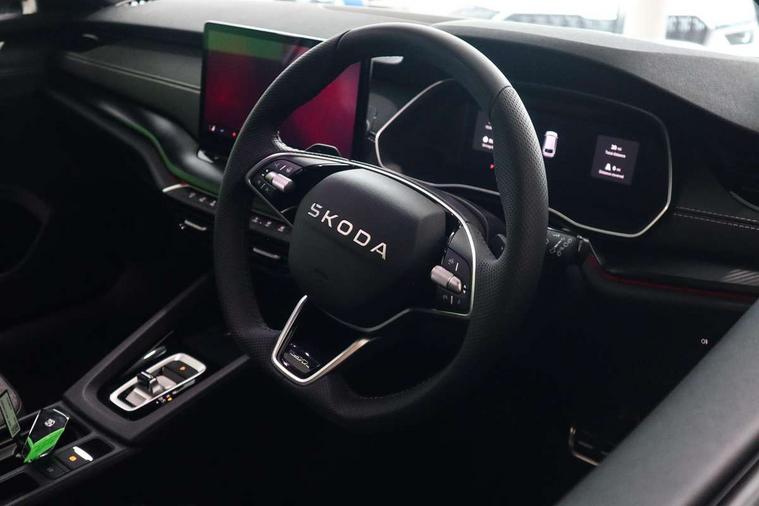 1x USB Typc C port in rear view mirror, 4x USB Type C ports - 2x in front centre console and 2x in rear (45W), Drive mode selection, Driver fatigue sensor, eCall emergency system, Front assist system, Front cross traffic assist, Progressive dynamic steering, Traffic sign recognition, Turn Assist, Virtual Cockpit - 10.25" digital display, Voice control system, Wireless charging (15W) with cooling function, Wireless SmartLink for Apple CarPlay and Android Auto, Sports suspension with 15mm lower, 13" touchscreen display with navigation, DAB Digital radio, Aero front windscreen wipers with intermittent function, Auto dimming rear view mirror, Body colour bumpers, Body colour door handles, Chrome strip in lower front bumper, Electric front and rear windows, Exterior gloss black sports styling including front grille, window surrounds, door mirrors and badging, Gloss black diffuser, Gloss black roof rails, Gloss black spoiler, Heated rear windscreen, High beam control, High level third brake light, Ice scraper in fuel cap, LED daytime running lights, Logo projection in front doors, Rain and light sensors, Rear fog light on both side and reversing lights on both sides, Rear privacy glass, Rear side wing doors, Rear window wiper, 12 volt socket in boot, 3 rear headrests, 3 seat bench in 2nd row, 4 foldable roof handles, Aluminium pedals, Electric auxiliary air heater, Front head restraints, Front sport seats, Heated front seats, Illuminated glovebox, Interior door handles in dark chrome, Jumbo Box storage, Luggage compartment lighting x2 lights, Mechanical rear seat release from boot, Single front passenger seat, Steering wheel in black leather with black stitching, Storage compartments in left and right of boot, Sun visors with mirrors, Sunglasses storage, Three spoke leather sports multifunction steering wheel with paddles, Ticket holder, Umbrella in door panel, Unsplit rear bench seat, split folding backrest with centre armrest with cupholder, SportLine Design Selection pack - Octavia, 3x3 point rear seat belts, Alarm with interior monitoring, tilt sensor and back up horn, Curtain airbags and front side airbags, Driver and front passenger airbags, Drivers knee airbag, Electronic parking brake, ESC including ABS, EBV, MSR, ASR, EDS, HBA, DSR, Front central airbag, Hill hold assist, ISOFIX on front passenger seat and outer rear seats, Passenger airbag deactivate switch, Three point seat belts in front and rear, Two tone horn, Tyre pressure monitor, Visual and acoustic seat belt reminder, Warning reflectors in front door, Anti-theft wheel bolts, Keyless entry and start/stop, Remote central locking, Gloss black air vent surrounds,