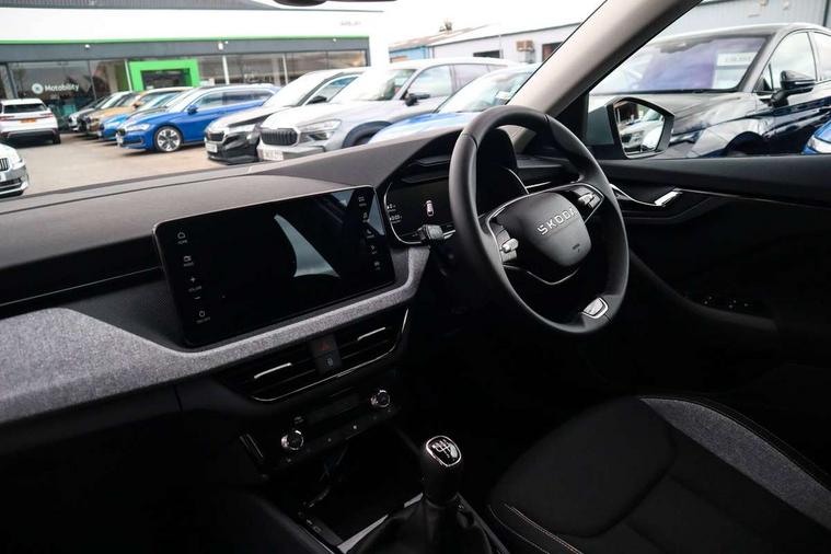 Advanced driver attention and drowsiness monitor, Bluetooth, e-Call (emergency call), Front assist system, PAS, Rear parking sensors, Rear view camera, Speed limiter, Tailgate, Traffic sign recognition, Virtual Cockpit - 10.25" digital display, Wireless smartlink, 4 USB C ports, 8 Speakers, 9.2" Skoda navigation display, DAB radio, Auto dimming rear view mirror, Automatic headlight control with manual coming and leaving home feature, Automatic intermittent wipers, Black window frames, Body colour bumpers, Body colour door mirrors and handles, Chrome moulding around grille, Front and rear electric windows, Full LED headlights, Heated rear window, LED 3rd brake light, LED daytime running lights, LED front turning lights, LED high beam, LED low beam, Rear LED fog light, Rear side wing doors, Rear wiper, Tinted windows, Unique dark chrome design logo on alloy wheels, 12V socket in luggage compartment, 3 seat bench in 2nd row, Black / Grey armrest stitching, Black hotstamping, Cargo elements, Chrome inner door handles, Door inserts in satin black, Driver and passenger sun visors with vanity mirror, Dual zone climate control, Front and rear roof lights, Front centre armrest, Front head restraints, Glasses storage in roof liner, Height adjustable driver seat, Height adjustable passenger seat, Ice scraper, Illuminated glove compartment, Inner circulation control with pollen filter, ISOFIX for front passenger seat, Isofix preparation for back seats, Leather gearknob and handbrake lever, Loft cloth upholstery, Luggage net under rear parcel shelf, Manual lumbar support for front seats, Net package and top tether hooks in boot space, Pocket on the back of both front seats, incl. mobile phone pockets, Single front passenger seat, Skoda lettering on steering wheel, Textile floor mats, Third rear headrest, Ticket holder, Top tether for front passenger seat, Umbrella in driver's door, 3x3 point rear seatbelts, ABS, Child locks, Curtain airbags and front side airbags, Disc brakes, Driver and front passenger airbags, ESP, Hill hold control, Manual leather parking brake, One tone horn, Passenger airbag switch off function, Seatbelt reminder for driver and front passenger, Tyre pressure monitoring system, Anti theft alarm system with interior monitoring, backup horn and towing protection, Anti-theft wheel bolts, Remote central locking with 2 remote folding keys, SAFE function for remote central locking, Decord pad, door inserts Kota uni,