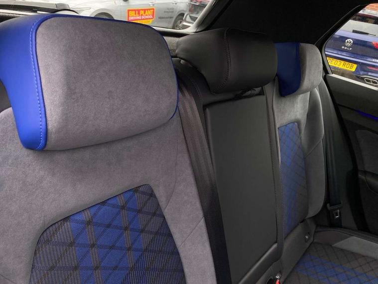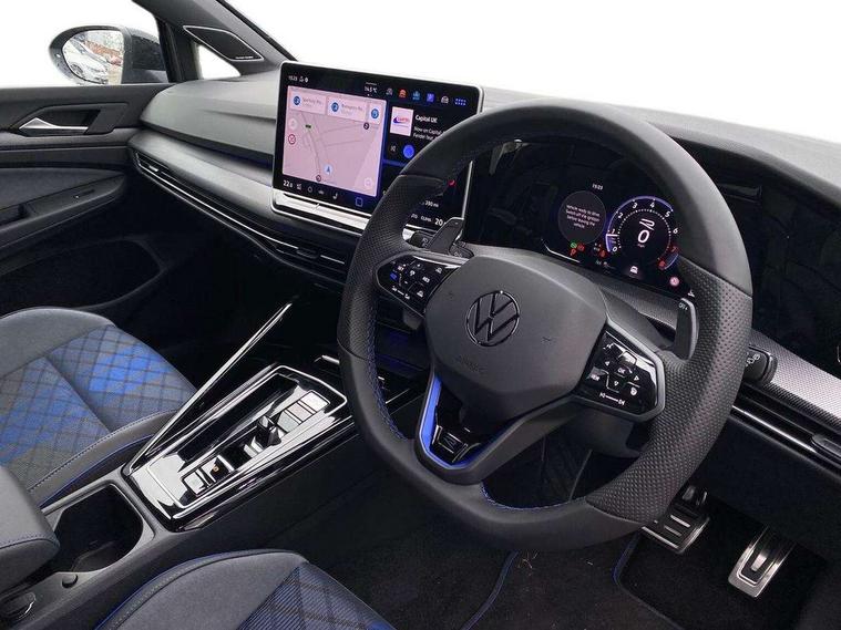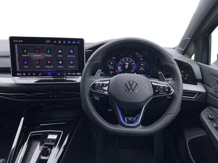 Activated carbon canister, Adaptive cruise control (ACC), Advanced driver attention and drowsiness monitor, Dynamic road sign display, E-Sim card for online connectivity, eCall emergency call system, Electronic maximum speed limit increased to 270 km/h, includes driving Modes 'drift' and 'special', larger roof spolier and GPS laptimer + G-Meter, Multi-color Digital cockpit pro, selection of different info profile possible, Multifunction front facing camera for distance control, Navigation system, Oncoming vehicle braking when turning including swerve support, Progressive steering, Side assist blind spot lane change system, rear traffic alert and exit warning system, Speed limiter, Speedo, rev counter, electronic odometer, trip, service interval display, exterior temperature and fuel gauge, Traffic jam assist, Voice enhancer and voice control, Warning signal and warning light for front and rear seatbelts not fastened, We connect plus preparation, We connect preparation, Wireless app connect, All wheel drive - 4Motion, Petrol Particulate Filter, Start-stop system with battery regeneration (recuperation - energy recovery during braking), XDS electronic differential lock for improved traction and handling, 2 USB C ports in front, 2 USB charging sockets on the centre console in the rear charging capacity upto 45W, Digital radio reception (DAB), Diversity antenna for FM reception, Gaming platform via car app, Infotainment system with 12.9" display, Mobile phone interface with inductive charging feature, 3rd brake light, Auto dimming rear view mirror, Automatic headlamp activation with Coming home and Leaving home feature, Black badge on B-pillar, Black mirror caps, Black strips on radiator grille and headlights, Body colour door handles, Darkened headlights, Darkened R Logos and VW logos in front, rear and on fender, Exterior mirrors convex on the left and aspherical on the right, Front and rear electric windows, Front fog lamps and cornering light, Heat insulating windshield made of laminated glass, Illuminated lighting animation with wake up/goodbye scenario, LED matrix headlights with ambient light V2, advanced high beam, dynamic range contol with cornering, LED rear lamp with indicator, poor weather, LED separate daytime running light, Light assist with High beam control, R name plate, Rain sensor, Rear fog light on one side and reversing lights on both sides, Rear side wing doors, Rear tinted glass 65% light absorbing from B pillar backwards, Rear windscreen washer and wiper with interval delay, Remote electrically foldable door mirrors, puddle lights and reverse activated passenger's door mirror, Welcome light with surround lighting, 12V socket in front centre console, 12V socket in luggage compartment, 3 rear head restraints, 3 seat bench in 2nd row, 30 colour ambient lighting, illuminated center console storage compartment in front, Air care climatronic 3 Zone automatic climate control with rear air conditioning control panel, Aluminium gearshift handle, Brushed stainless steel pedals, Chrome plated radiator grille inserts, air vent surrounds and light switch surrounds, Entry lights, Front + rear black carpet mats, Front centre armrest, Integrated front head restraints, ISOFIX anchors for child seats on outer rear bench seats and on front passanger seat compatible for i-Size, Luggage compartment lighting, Rear cupholder and loadthough, Single front passenger seat, Soul black instrument panel, Soul black roof lining, Split folding backrest with centre armrest and unsplit rear seat bench, Sun visors with illuminated vanity mirrors, Driver assistance pack - Golf Estate/Hatchback Auto, R styling pack - Golf, Technology park and comfort pro package - Golf Hatchback, 3 point height adj front seatbelts + pretensioners, 3 rear three point seatbelts, ABS, Autonomous emergency braking front assist with pedestrian and cyclist monitoring, Child locks on rear doors, Driver and front passenger airbag with front passenger airbag deactivation, Electronic parking brake with auto hold, ESC (Electronic Stability Control), Extended pedestrian protection measures, Front and rear black brake calipers with darkened R-logo, Hill start assist, Rear disc brakes, Two tone horn, Tyre pressure loss indicator, Volkswagen roadside assistance, Anti theft wheel bolts, Preparation for alcohol interlock, Sporty vehicle dynamics, Tool kit for tyre mobility set, Tyre mobility kit Includes 12V compressor and tyre sealant, Wheel hub cover with darkened R-logo,