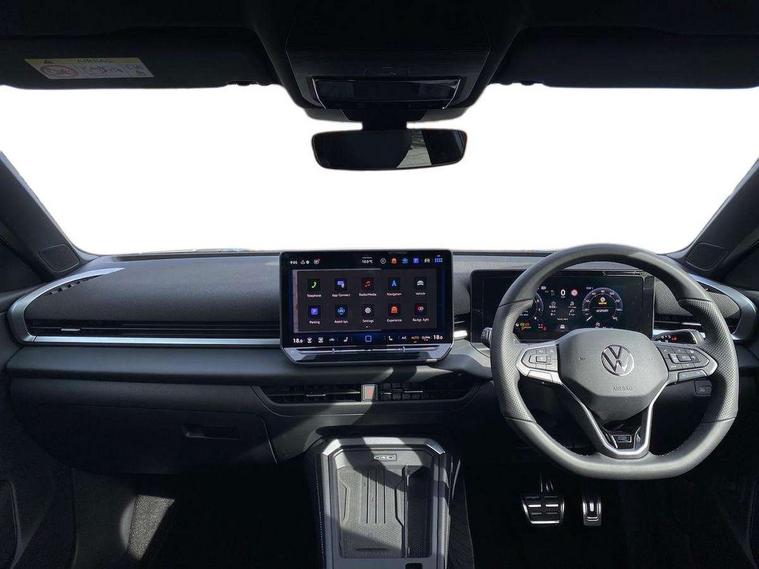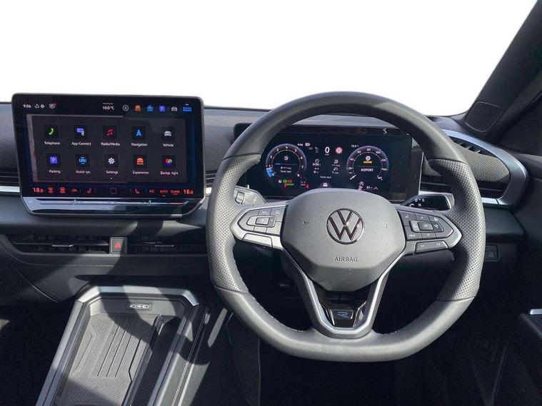 Adaptive cruise control, Driver attention monitor and driver alert system, Driving experience control with atmosphere selection, Dynamic road sign display, E-Sim card for online connectivity, Emergency call service, Front and rear parking sensors, Front cross traffic assist, Lane change system, Side assist, Rear traffic alert and Exit warning system, Lane keeping system Lane Assist, Multi color digital cockpit pro, Navigation system, Oncoming vehicle braking when turning including swerve support, PAS, Rear view camera, Voice activation spoken voice commands for telephone and navigation system, Warning sound and light for front seatbelts unfastened, Wireless app connect, Wireless Smartphone charger, Hybrid drive system MHEV, Sports suspension - Sport +15mm, Start/stop function with battery regeneration, 12.9" infotainment display, 2 USB C ports in front, 1 USB C charging socket on the rear center console, charging capacity up to 45W, DAB Digital radio, Diversity antenna for FM reception, Mobile phone interface with inductive charging feature, We Connect and We Connect Plus functionality, 3D LED rear combination lamps, Auto dimming interior rear view mirror, Automatic headlight control with LED separate daytime running lights with coming/leaving home function, Electrically folding, adjustable and heated door mirrors with front passenger exterior mirror lowering function, High Beam Assist, automatic sensing for switching between dipped and main beam, Illuminated door handle recesses, Illuminated Volkswagen logo and molding, LED 3rd brake light, R-Line design body coloured bumpers, Rain sensor, Rear fog light on one side and reversing lights on both sides, Rear privacy glass, Rear side wing doors, Rear wiper, Surround lighting with welcome light, Without headlamp washer system with washer fluid level indicator, 12V power socket in centre console, 3 rear head restraints, 3 seat bench in 2nd row, Air care climatronic 3 zone air conditioning system with rear air conditioning control panel, Aluminium front scuff plates with R Line logo, Artvelours cloth upholstery, Black roof lining, Brushed stainless steel pedals, Chrome plated radiator grille inserts, air vent surrounds and light switch surrounds, Door and side trim panel with leatherette insert, Driver/front passenger seat height adjustment, Front + rear carpet mats, Front centre armrest, Front comfort sports seats, Front footwell illumination, Heated front seats, Heated leather wrapped multi function steering wheel with paddle shift, Inserts of seats in fabric R-Line, Integrated head restraints on front seats, Interior ambient lighting with 30 colour options, ISOFIX anchors for child seats on outer rear bench seats and on front passanger seat compatible for i-Size, Luggage compartment floor adjustable in 2 heights, for flat cargo area, Non-folding front passenger seat backrest, Power-adjustable lumbar support in front seats, Single front passenger seat, Soul black dashboard, Sports steering wheel with touch control, Sunvisors with illuminated vanity mirrors, Unsplit rear seat bench, asymmetric folding backrest, with centre armrest, 3 point height adj front seatbelts + pretensioners, 3 point seatbelts in outer rear seats, ABS, Automatic emergency braking, Child locks on rear doors, Curtain and side airbags in front with centre airbag, Driver and front passenger airbag with front passenger airbag deactivation, Drivers seatbelt reminder, Electronic parking brake with auto hold function, Electronic stability control (ESC) and Electromechanical brake booster, First aid kit with warning triangle and safety vest, Front Assist with pedestrian and cyclist detection, Front disc brakes, Hill start assist, Rear disc brakes, Tyre pressure loss indicator, Alarm with interior protection, Keyless locking and starting system keyless access with safelock, Decorative inserts in matte pyrite silver, Decorative material set,