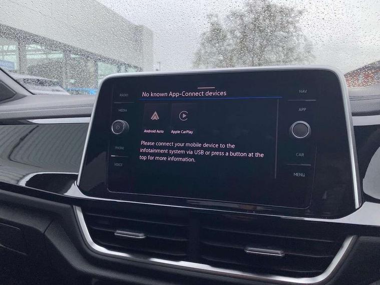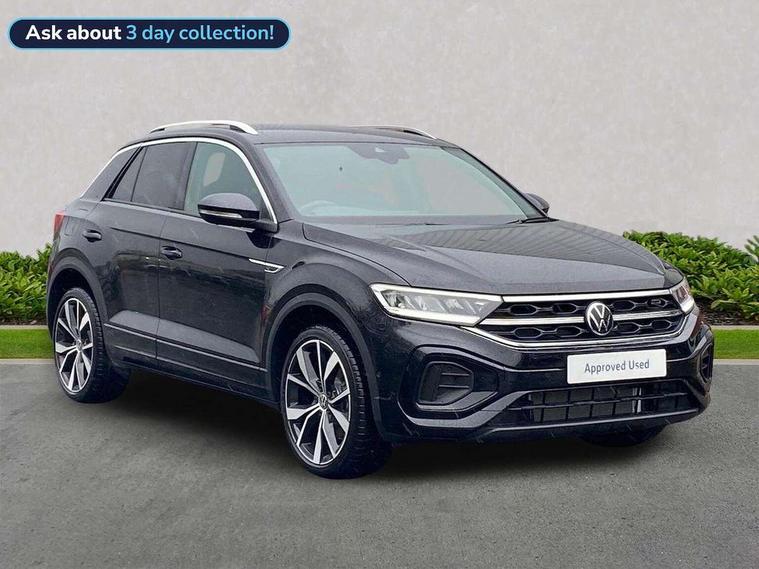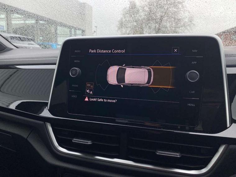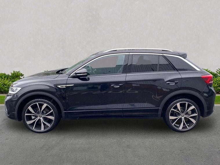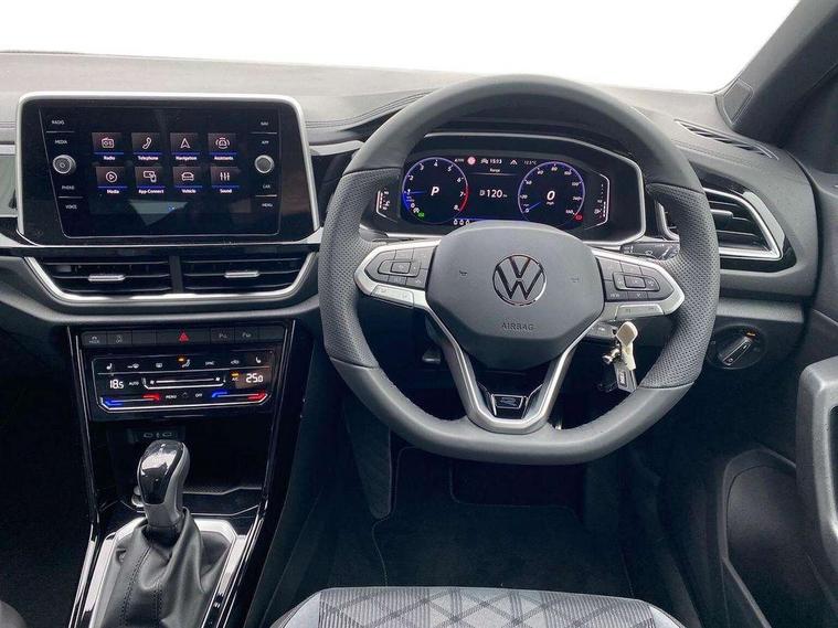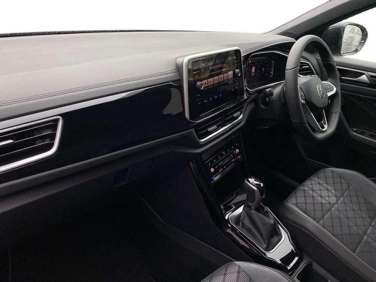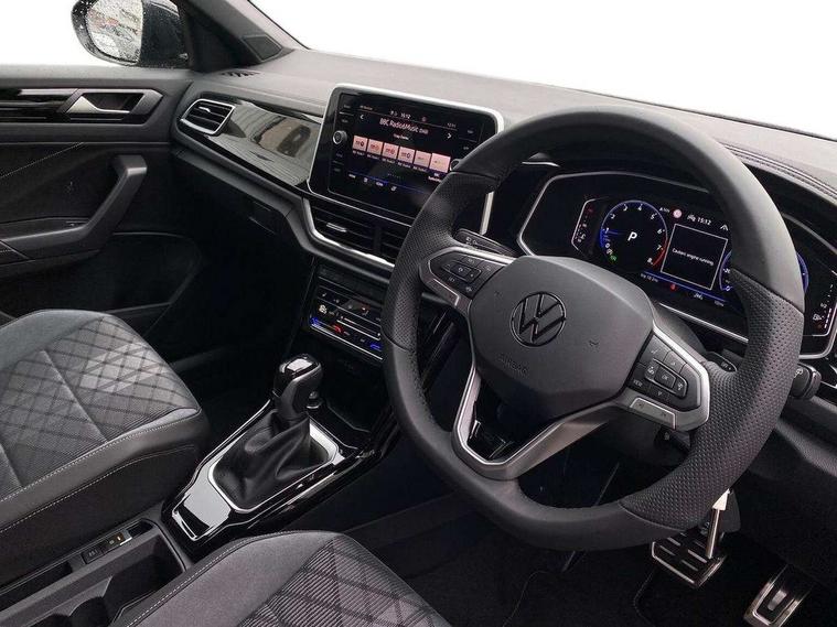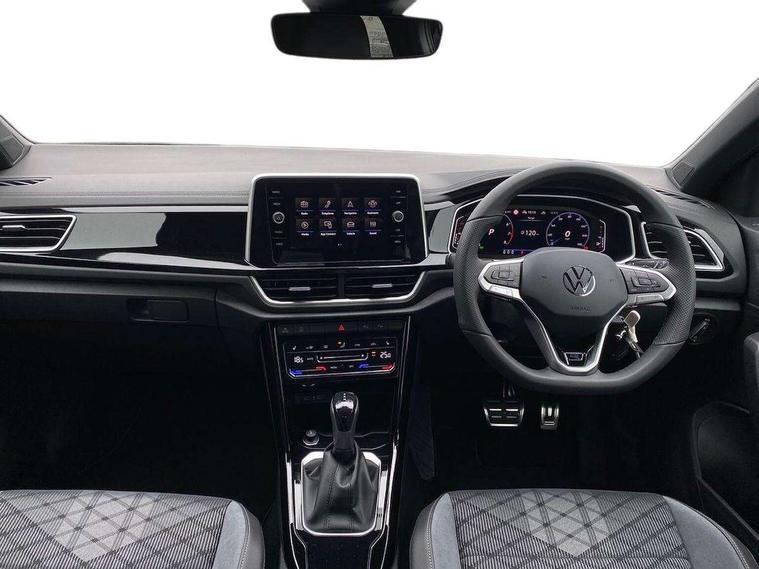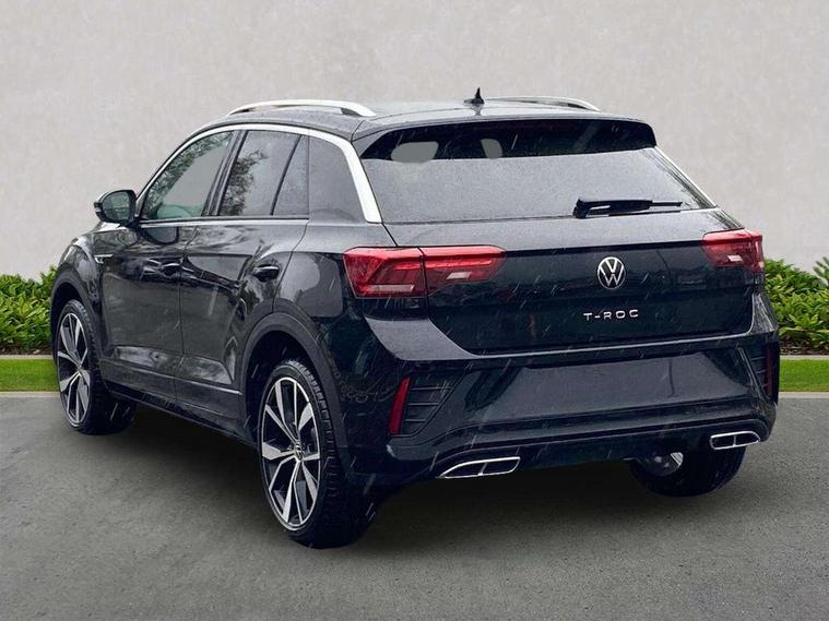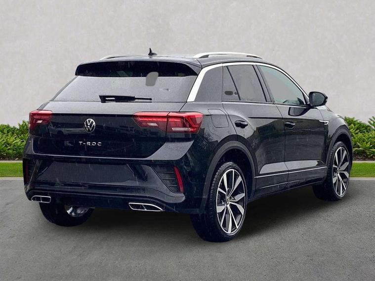 10.25" Digital cockpit pro, Advanced driver attention and drowsiness monitor, Emergency call service, Lane keeping system Lane Assist, Mobile phone interface, Modified key software - reduce switch off time for key status change to Long no motion, Online services, Park assist including front and rear parking sensors, Service interval indicator, Tailgate/trunk lid release from outside, Think blue trainer driver tips and journey analysis, Warning sound and light for front seatbelts unfastened, Wireless app connect, Battery regeneration during braking, Start/stop function with battery regeneration, DAB Digital radio, Diversity antenna for FM reception, Front and rear 6 speakers, Music playback - MP3, WMA and AAC files, Premium USB cable in choice of either Apple or Android smartphone compatibility, SD card slot, Simultaneous pairing of 2 compatible mobile devices, Title and cover art display, We Connect and We Connect Plus functionality, Auto dimming interior rear view mirror, Automatic hazard lights activation under emergency braking, Automatic headlight control with LED separate daytime running lights with coming/leaving home function, Body coloured exterior mirror housings and door handles, Electrically adjustable and heated door mirrors, Extended roof spoiler, Exterior mirrors aspherical on driver side, convex on front passenger side, External USB type C socket and charging sockets, Front windscreen wiper with intermittent wipe and 4 position delay, Heated rear window, LED 3rd brake light, LED rear combination lamps, LED rear number plate lights, Power windows with comfort operation and circuit breaker, Privacy glass for rear side windows and rear window, R-Line design body coloured bumpers, Rain sensor, Rear exhaust tailpipe, Rear fog light on one side and reversing lights on both sides, Rear side wing doors, Rear wash/wipe with intermittent wipe setting, Remote electrically foldable door mirrors, puddle lights and reverse activated passenger's door mirror, 12V power socket in centre console, 3 rear head restraints, 3 seat bench in 2nd row, 4 load lashing points in luggage compartment, Air care climatronic air conditoning system with active combination filter and 2-zone temperature control, Black roof lining, Chrome plated decorative trims, Chrome plated radiator grille inserts, air vent surrounds and light switch surrounds, Door and side trim panel with leatherette insert, Front + rear carpet mats, Front centre armrest, Front cupholders x 2, Front footwell illumination, Front reading light, Front scuff plates with R Line logo, Front seat back storage pockets, Glove compartment door with light, Instrument lighting, white adjustable panel illumination, Interior ambient lighting and surround lighting, Interior light delay, Isofix child seat preparation, Leather gearshift handle, Load-through provision with cup holder when folded down ('Unsplit rear seat bench, split folding backrest, with centre armrest), Luggage compartment lighting, Single front passenger seat, Stainless steel pedals, Storage compartment in left and right luggage area, Storage compartment in rear doors, Storage compartments in driver and front passenger doors, Sunvisors with illuminated vanity mirrors, Variable boot floor, height adjustable and removable, Driver assistance pack without proactive passenger protection - T-Roc, 3 point height adj front seatbelts + pretensioners, 3 point seatbelts in outer rear with ECE label, ABS, Child locks on rear doors, City emergency braking and pedestrian monitoring, Driver and front passenger airbag with front passenger airbag deactivation, Driver and front passenger safety-optimised head restraints, Drivers seatbelt reminder, Electronic parking brake, Electronic Stability Control (ESC) inc EDL (Electronic Differential Lock) and ASR (Traction Control), Front and rear passengers curtain airbag system including front side airbags, Hill start assist, Predictive pedestrian protection, Rear disc brakes, Two tone horn, Tyre pressure loss indicator, Volkswagen roadside assistance, Piano black decorative inserts in dashboard and front door trim panels, Trims for alloy wheels,