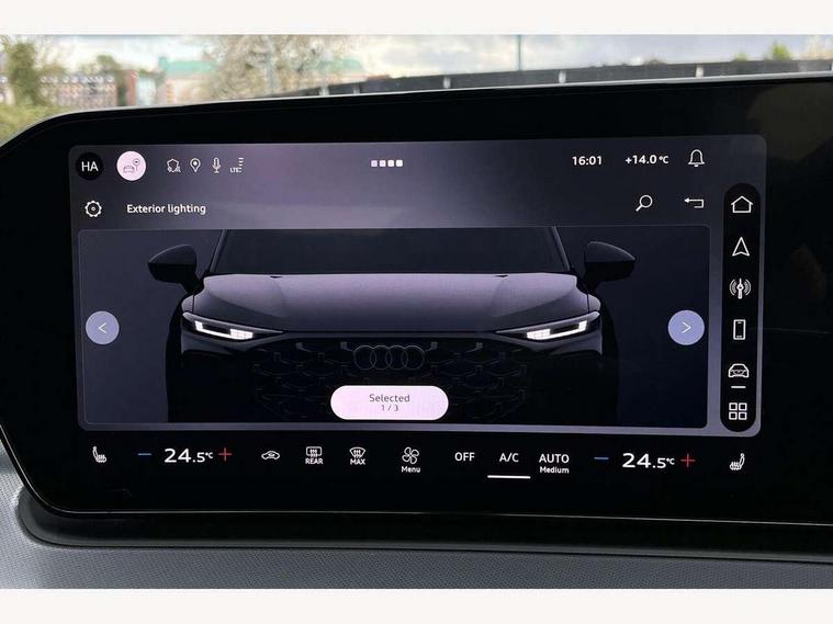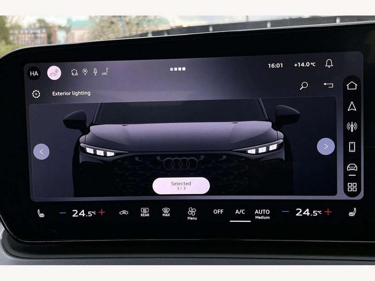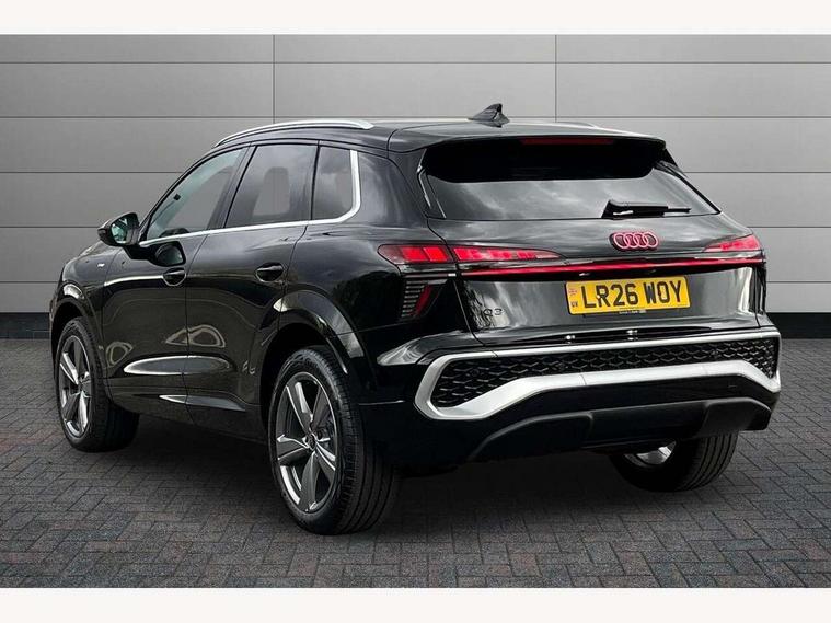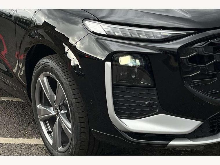 Adaptive cruise control, Audi connect emergency call and service, Audi connect remote and controls, Audi drive select (Balanced/Individual, effeciency, comfort and dynamic), Audi virtual cockpit plus - 11.9" display, Bluetooth interface, Camera based traffic sign recognition, Driver attention and fatigue monitor with driver monitoring, Front cross traffic assist, Lane departure warning with emergency assist, Panoramic curved display with 12.8" MMI navigation plus and MMI touch, Park assist plus with parking system and 360 display, Phonebox light with wireless charging, Reversing camera, Smartphone interface includes wireless Apple carplay/Android Auto, Start/stop system, Swerve assist and turn assist, Traffic sign based speed limiter, Voice control system with natural language interaction, Comfort suspension, Petrol Particulate Filter, 2 USB-C ports with charge and data functions, Audi sound system with 10 loudspeakers, subwoofer, 8 channel amplifier with 260 watts, DAB digital radio module, Acoustic glass for front door windows, Acoustic windscreen, Aluminium roof rails, Aluminium window trim, Audi Q3 lettering on the B-pillars, Auto dimming door mirrors, Auto dimming rear view mirror, Body colour door mirrors, Contrasting finish in volcano grey, Electrically folding, adjustable and heated door mirrors with integrated LED side indicators and kerb view function for passenger side, Full paint finish, Illuminated door sills with aluminium inserts at the front with S logo, LED daytime running lights, LED headlights plus with LED rear lights pro with continous light strip, illuminated Audi rings, rear, LED third brake light, Loading sill protector in stainless steel, Main beam assist, Privacy glass - dark tinted rear window, rear door and side windows, Projection light in the exterior mirrors - Projects a graphic element onto the ground, Q3 badging on the rear, Rain and light sensors, Rear side wing doors, Rear window, rear door windows and rear side windows in clear glass, Rear wiper, Sports bumpers, 3 seat bench in 2nd row, 3 spoke flat top and bottomed leather multi function sport steering wheel with gear shift paddles and "S" badging, 3-zone deluxe automatic air conditioning, 4 way lumbar support for the front seats - electric with horizontal and vertical adjustment in four directions, Black cloth headlining, Front and rear floor mats, Front and rear headrests, Front centre armrest, Heated front seats, Height and reach adjustable steering wheel, Interior storage compartment, Leather/artificial leather upholstery combination with S emblem + front sports seats, Luggage compartment lid, electrically opening and closing, Manual front seats with height adjustment, Rear seat bench plus with split folded 40:20:40, Single front passenger seat, Stainless steel pedals, Steering wheel operating unit, gloss black, Storage compartment in front centre console, Ambient lighting package pro - Q3, S line exterior styling pack - Q3, 3x3 point rear seatbelts, Convenience key with safelock, Driver and front passenger airbag with passenger airbag deactivation, Electromechanical parking brake, Electronic stabilisation control including ABS, ASR and EDL, First aid kit with warning triangle and high visibility vests, Front emergency brake assist, Hill hold assist, i - Size child seat mounting on the front passenger side and i - Size and top tether on the outer rear seats, Power operated child locks, Seatbelt monitoring, Three point automatic belts with belt tensioner and height adjustment, Tyre pressure loss indicator, Anti theft wheel bolts, Remote central locking, Thatcham approved category 1 anti theft alarm, Dark aluminium divergence inlay, Interior elements in dinamica microfibre, Interior trims in aluminium look, Tool kit and Jack,