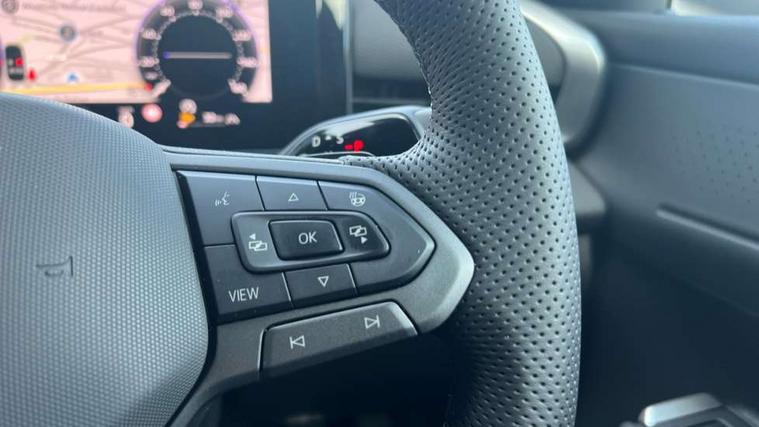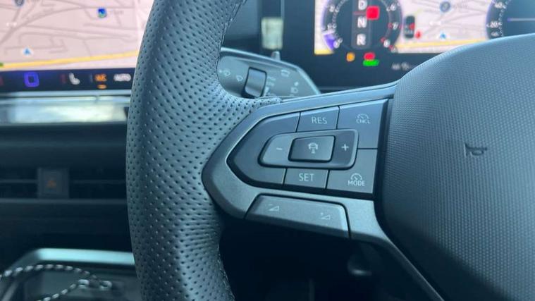 Adaptive cruise control, Driver attention monitor and driver alert system, Driving experience control with atmosphere selection, Dynamic road sign display, E-Sim card for online connectivity, Emergency call service, Front and rear parking sensors, Front cross traffic assist, Lane change system, Side assist, Rear traffic alert and Exit warning system, Lane keeping system Lane Assist, Multi color digital cockpit pro, Navigation system, Oncoming vehicle braking when turning including swerve support, PAS, Rear view camera, Voice activation spoken voice commands for telephone and navigation system, Warning sound and light for front seatbelts unfastened, Wireless app connect, Wireless Smartphone charger, Hybrid drive system MHEV, Sports suspension - Sport +15mm, Start/stop function with battery regeneration, 12.9" infotainment display, 2 USB C ports in front, 1 USB C charging socket on the rear center console, charging capacity up to 45W, DAB Digital radio, Diversity antenna for FM reception, Mobile phone interface with inductive charging feature, We Connect and We Connect Plus functionality, 3D LED rear combination lamps, Auto dimming interior rear view mirror, Automatic headlight control with LED separate daytime running lights with coming/leaving home function, Electrically folding, adjustable and heated door mirrors with front passenger exterior mirror lowering function, High Beam Assist, automatic sensing for switching between dipped and main beam, Illuminated door handle recesses, Illuminated Volkswagen logo and molding, LED 3rd brake light, R-Line design body coloured bumpers, Rain sensor, Rear fog light on one side and reversing lights on both sides, Rear privacy glass, Rear side wing doors, Rear wiper, Surround lighting with welcome light, Without headlamp washer system with washer fluid level indicator, 12V power socket in centre console, 3 rear head restraints, 3 seat bench in 2nd row, Air care climatronic 3 zone air conditioning system with rear air conditioning control panel, Aluminium front scuff plates with R Line logo, Artvelours cloth upholstery, Black roof lining, Brushed stainless steel pedals, Chrome plated radiator grille inserts, air vent surrounds and light switch surrounds, Door and side trim panel with leatherette insert, Driver/front passenger seat height adjustment, Front + rear carpet mats, Front centre armrest, Front comfort sports seats, Front footwell illumination, Heated front seats, Heated leather wrapped multi function steering wheel with paddle shift, Inserts of seats in fabric R-Line, Integrated head restraints on front seats, Interior ambient lighting with 30 colour options, ISOFIX anchors for child seats on outer rear bench seats and on front passanger seat compatible for i-Size, Luggage compartment floor adjustable in 2 heights, for flat cargo area, Non-folding front passenger seat backrest, Power-adjustable lumbar support in front seats, Single front passenger seat, Soul black dashboard, Sports steering wheel with touch control, Sunvisors with illuminated vanity mirrors, Unsplit rear seat bench, asymmetric folding backrest, with centre armrest, 3 point height adj front seatbelts + pretensioners, 3 point seatbelts in outer rear seats, ABS, Automatic emergency braking, Child locks on rear doors, Curtain and side airbags in front with centre airbag, Driver and front passenger airbag with front passenger airbag deactivation, Drivers seatbelt reminder, Electronic parking brake with auto hold function, Electronic stability control (ESC) and Electromechanical brake booster, First aid kit with warning triangle and safety vest, Front Assist with pedestrian and cyclist detection, Front disc brakes, Hill start assist, Rear disc brakes, Tyre pressure loss indicator, Alarm with interior protection, Keyless locking and starting system keyless access with safelock, Decorative inserts in matte pyrite silver, Decorative material set,