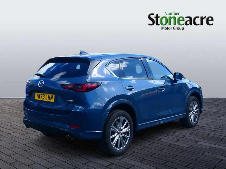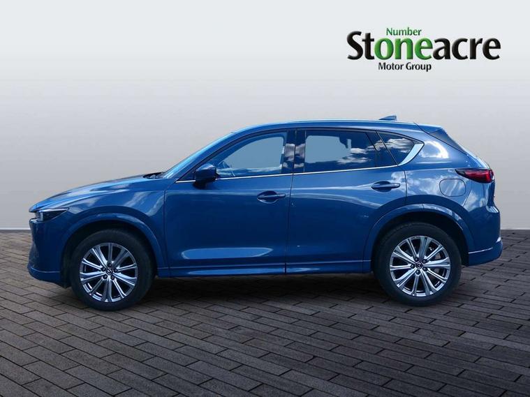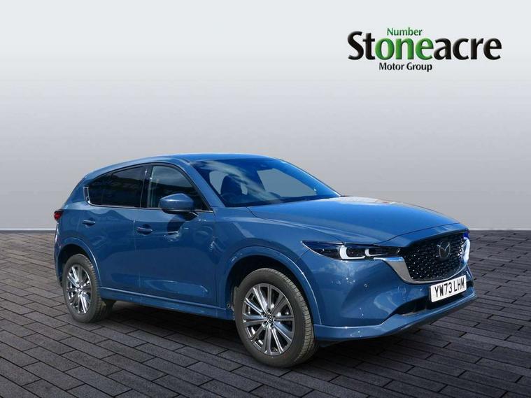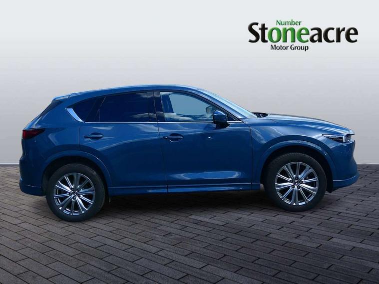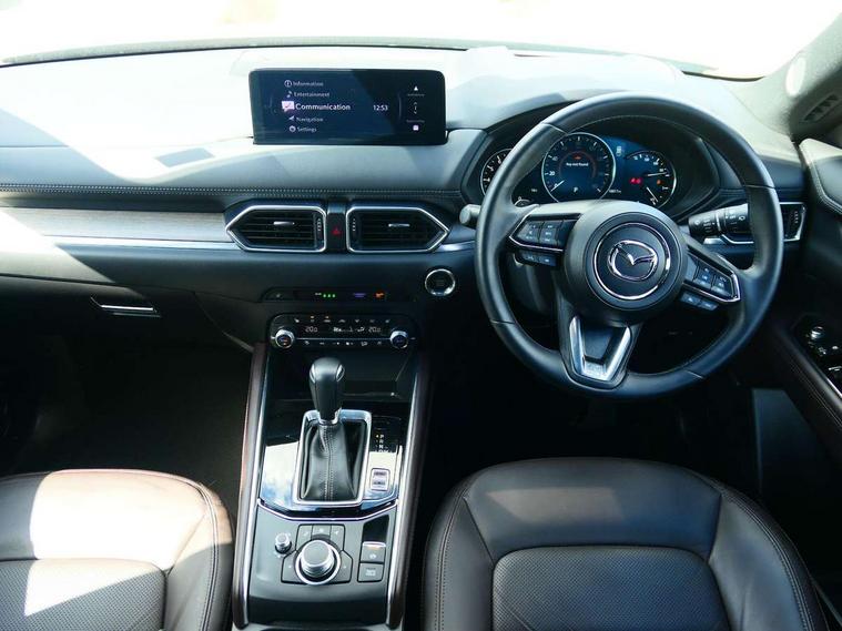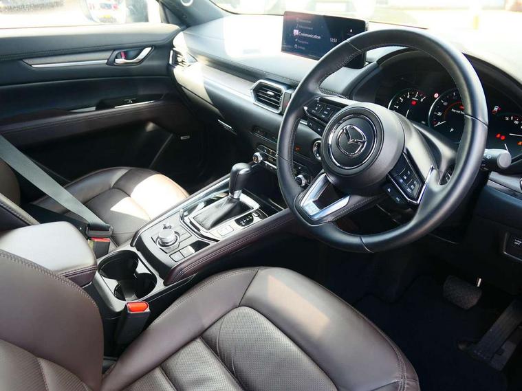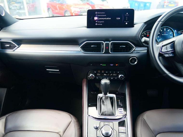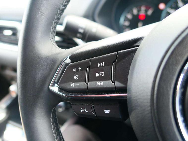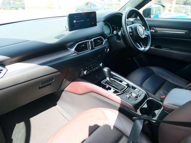 10.25" display with Mazda Connect infotainment, 360 degree surround camera, 7" colour TFT display, Advanced blind spot monitoring, Bluetooth connectivity with voice control, Collision prevention assist, Connected services, Cruising Traffic Support, Drive mode selector, Driver attention alert system, Electric power steering, Emergency stop signalling system, Engine start/stop button, Forward collision warning, Front and rear parking sensors, Integrated navigation system, Intelligent speed assist, Lane departure warning system, Lane keep assist, Power liftgate, Qi wireless phone charging, Radar cruise control with Stop and Go, Rear cross traffic alert, Service indicator, Traffic sign recognition (TSR), Trip computer, Windscreen projected colour active driving display (HUD) with memory, Wireless apple car play/android Auto, Cylinder Deactivation, i-stop, AM/FM radio, Bluetooth audio streaming, Bose premium sound system with 10 speakers, DAB Digital radio, Multimedia Commander including separate volume dial, Steering wheel mounted audio controls, Adaptive LED Headlights, Automatic headlights, Body colour door mirrors, Body colour roof spoiler, Body coloured front and rear lower bumper mouldings, Body coloured tire arch and side mouldings, Coming/leaving home lighting function, Door mirror integrated indicators, Dual large chrome tailpipes, Dusk sensitive headlamps, Electric front/rear windows with one touch auto up/down, Frameless auto dimming interior rear view mirror, Front grille in gloss black finish, Front grille in gloss black with black accent + chrome signature wing, Gloss black B and C pillars garnish, Gloss black front grille accent, Intermittent rear wash/wipe, LED auto levelling, LED daytime running lights, LED front fog lights, LED third brake light, Power folding and heated door mirrors, Power tilt/slide sunroof, Privacy glass (rear side windows only), Rain sensing front wipers, Real wood inlay dashboard panel, Rear side wing doors, Scuff plates, Shark fin antenna, Signature LED rear combination lights, Variable intermittent front wash/wipe, Vinyl with real wood inlay door trim panel, Windscreen wiper de-icer, 12v electrical power outlet, 3 seat bench in 2nd row, 3 stage heated front seats, 40:20:40 Karakuri fold-flat seat system, 6 way electric adjustable passenger seat, 8 way electric driver seat with lumbar support + memory, Black roof lining, Cargo room flat floor board with waterproof undertray, Driver seat power slide, recline and height adjustment, Driver, Front passenger and two rear grab handles with coat hooks, Driver/passenger front seatback pockets, Driver/passenger sunvisors + illuminated vanity mirrors (drivers with ticket holder), Dual zone climate control, Folding centre armrest with 2 cup holders, Front and rear door pockets, Front centre storage with two cupholders, Front passenger seat power slide, recline and height adjustment, Front seat ventilation, Heated outer rear seats, Heated steering wheel, Humidity sensor, Illuminated glovebox, Interior dome light with integral spotlight, ISOFIX child seat anchorage points attached on outer rear seats, Karakuri tonneau cover, Leather gear knob, Leather steering wheel with unique stitching and chrome centre bezel, Luggage compartment LED lighting, Luggage compartment power outlet, Nappa leather upholstery, Paddle shifts, Rear air vents, Rear headrests, Rear seat recline, Roof mounted sunglasses holder, Single front passenger seat, Three height adjustable head restraints, Tilt/height adjustable steering wheel, USB Connectivity (2x front Type-C, 2x rear Type-B), White interior LED illumination lighting, 3 point front seatbelts with pre-tensioners, 3 rear 3 point seatbelts, ABS, Advanced Smart City Brake Support - SCBS, Child locks on rear doors, Driver and front passenger side airbags, DSTC-Dynamic Stability and Traction Control, Dual front airbags, Electronic brake force distribution, Electronic parking brake with auto hold, ESP, Front and rear curtain airbags, Front passenger airbag deactivation, G-Vectoring control, Hill hold assist, Rear smart city brake support, Seatbelt reminder front and rear, Single stage passenger airbags, Smart brake support with forward obstruction warning, Tyre pressure monitoring system, Automatic door locking when moving off, Deadlock, Immobiliser, Power door locks, Remote central locking, Smart keyless entry, Thatcham Cat.1 alarm, Upper dashboard and door cards wood trim, 19" exclusive design bright alloy wheels, Tyre repair kit,