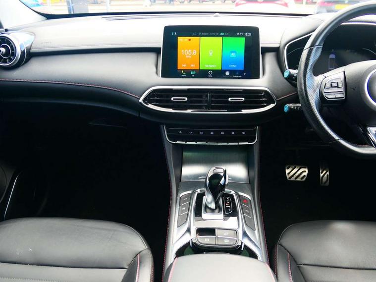 10.1" colour touchscreen, 12.3" Full digital driver information display, Adaptive cruise control, Android Auto, Apple CarPlay, Blind Spot Detection (BAS), Bluetooth connectivity, Driving modes, Emergency call service, Intelligent speed assist, Lane keep assist system (LAS) with Lane departure warning system (LDWS), PAS, Power tailgate, Rear cross traffic alert, Rear parking camera, Rear parking sensors, Satellite navigation system, Traffic jam assist, Trip computer, USB mobile phone charging function, 6 speaker audio system, DAB audio, Auto dimming rear view mirror, Automatic headlights, Body colour electric adjustable heated door mirrors, Electric folding door mirrors, Follow me home headlights, Front and rear aero wiper, Front and rear electric windows with one-touch up/down, Front fog lights, Intelligent high beam, LED Bi-Function headlights, LED centre brake light, LED daytime running lights, LED front and rear sequential indicators, Rain sensing wipers, Rear side wing doors, Silver roof rails, 12V power sockets, 2nd row 60/40 split fold seat, 2nd row seat with 2 stage incline adjustment, 3 rear headrests, 3 seat bench in 2nd row, 4 way electric adjustable passenger seat, 6 way electric adjustable drivers seat + lumbar support, Ambient lighting (adjustable colour), Dual zone automatic air conditioning, Front centre sliding armrest with storage compartment, Front headrests, Heated front seats, Height and reach adjustable steering wheel, ISOFIX restraints on outer rear seats x2, Leather steering wheel, Metal sports pedals, Single passenger seat, Sports Style Front Seats with One-Piece Back, Steering wheel paddle shift, 3x3 point rear seatbelts, ABS/EBD, Active emergency braking with pedestrian/Bicycle detection, Anti rolling protection, Cornering brake control (CBC), Drivers seatbelt reminder, Dual front airbags, Electric parking brake with auto hold function, ESP, Front and rear passenger seat belt reminder, Front passenger airbag deactivation switch, Front seat belt height adjuster, Front seatbelts (3-point + pretensioner + load limiter), Front side airbags, Hill descent control, Hill launch assist, Manual rear child locks, Rear outer seatbelt pretensioner and load limiter, Side curtain airbags, Tyre pressure monitoring system, Alarm system and engine immobiliser, Keyless entry and push button start system, Remote central locking, Speed sensing door locks, 18" Hurricane diamond cut alloy wheels, Tyre repair kit,