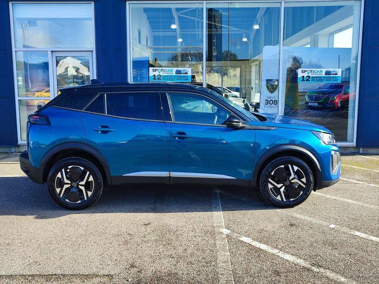 Bluetooth telephone facility, Driver attention warning, E-call, Exterior temperature indicator with ice warning, Front and rear parking sensors, Lane keep assist, Multi function trip computer, PEUGEOT i-Cockpit with 10" high definition capacitive touchscreen, PEUGEOT i-Cockpit with compact steering wheel, PEUGEOT i-Cockpit with configurable headup instrument panel, Speed limit recognition and recommendation, Wireless mirror screen with apple carplay and android auto, Petrol Particulate Filter, 1x USB-C socket in rear and 1x USB-A socket in rear, 2 USB-C ports in the front, 6 speakers radio with mp3 compatible, DAB Radio (Digital Audio Broadcasting), Peugeot i-connect advanced infotainment system, 2 X Rear number plate lights, Automatic hazard light activation upon heavy brake application, Black diamond roof, Black front wing trim with gloss black detail, Body coloured exterior door handles, Colour coded rear roof spoiler, Dark tinted rear side and tailgate windows, Diamond black mirror shells, Eco LED headlights, Electric, heated, and power folding door mirrors, Electrochrome rear view mirror, Front bumper - Daytime running light (DRL) finishers in grained black finish, Front bumper - Meteor grey lower trim, Gloss black finish on B pillar, Gloss black rear cluster connecting strip, Gloss black roof bars, Headlights left on audible warning, LED side indicator lights integrated into door mirrors, LED third brake light, Model designation badges front and rear, One touch electric front/rear windows with pinch protection, Radiator grille - Body coloured top edge trim, Radiator grille - body coloured vertical chequered grille, Rear full LED 3D peugeot signature claw effect lights with daylight function, Rear reversing lights, Rear side wing doors, Rear windscreen wiper triggered automatically in reverse gear, Reinforcement of the front bumper, Tailgate with heated rear windscreen and wiper blade, Twin chromed exhaust pipes, Wheel arch extensions, 1/3 to 2/3 split folding rear seats, 12V socket, 3 seat bench in 2nd row, Aluminium door sills, Automatic air conditioning with pollen and active carbon filter, Central front armrest with storage compartment, Driver and front passenger comfort seats, Driver seat manual adjustment - height, longitudinal and back rest angle, Electric power steering with reach and rake adjustable steering column, Front LED interior light with 2 reading spotlights and push button rear interior light with timer, Front passenger seat manual adjustment - height, longitudinal and back rest angle, Gear lever top - manual in full grain leather, Gear shift indicator, Leather steering wheel, Multifunction steering wheel, Piano keys: Gloss black and chrome toggle switches to access main functions of the vehicle and touchscreen functions, Roof lining - Mistral black, Seatbelt unfastened on the move audible and visual alert for front and rear seats, Single front passenger seat, Tri material cloth/leather effect upholstery, Navigation and access pack - 2008, Visibility pack - 2008, 2x 2nd row ISOFIX child seat mountings, ABS (Anti-lock Braking System) with EBD (Electronic Brakeforce Distribution) and EBA (Emergency Braking Assistance), Active safety brake with night function/cyclists/pedestrians, Adaptive driver and front passenger airbags with passenger airbag deactivation function, Advanced emergency braking system (AEB) with enhanced camera with the high beam and radar, Child locking functionality on rear doors, Driver/front passenger side airbags, Electric parking brake, ESP (Electronic Stability Program) + Hill Start Assist, Front and rear curtain airbags, Front and rear disc brakes, Front and rear three-point retractable seatbelts, with force limiters, Front optimised safety headrests and rear retractable headrests (x3), height adjustable, Tyre pressure sensor, Automatic door locking when moving off, Deadlocks, Electronic code immobiliser, Thatcham category 1 alarm, Carbon effect Dashboard, front and rear door panel finish, 17" Karakoy diamond cut alloy wheels,