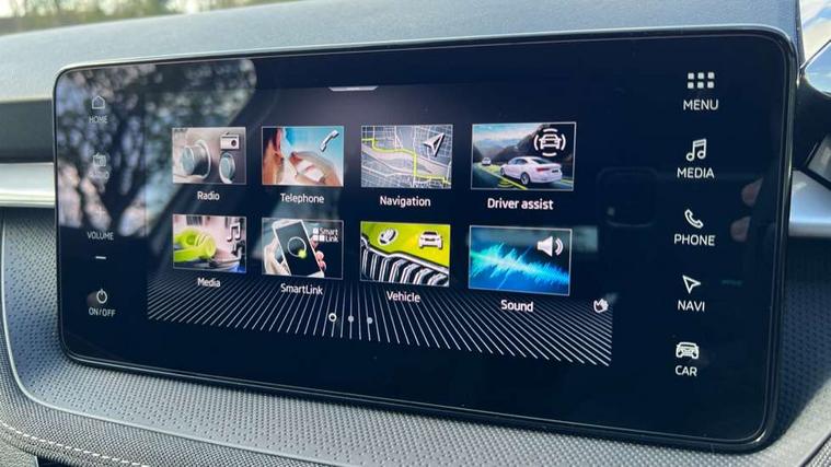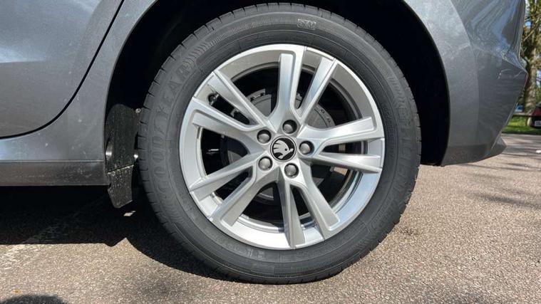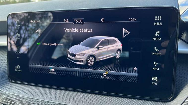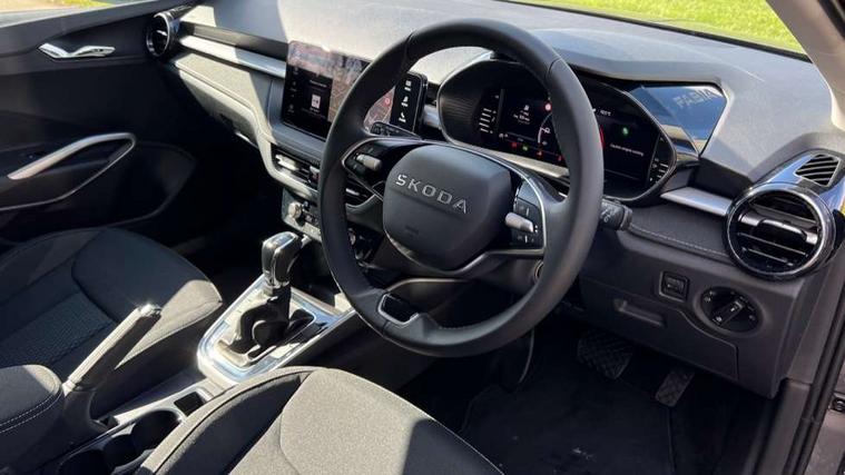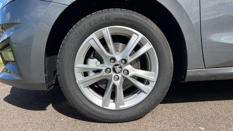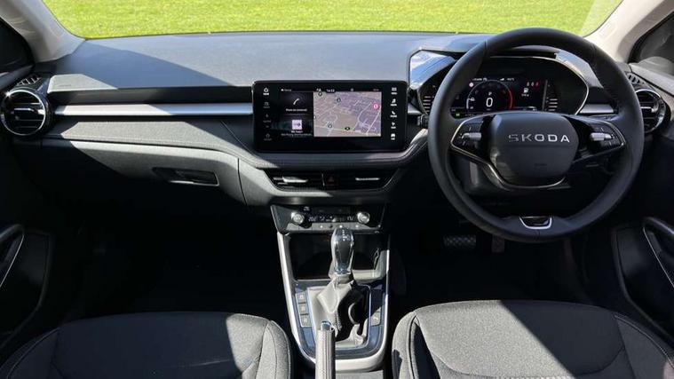 Advanced driver attention and drowsiness monitor, Bluetooth connection, Driver alert system, Electromechanical power steering, Exterior temperature gauge, Service interval indicator, Traffic sign recognition, Virtual cockpit with 10.25" colour display, Wireless SmartLink for Apple CarPlay and Android Auto, 9.2" colour display skoda navigation system with voice control and web radio, Auxiliary socket for external MP3 player, DAB digital radio reception, Auto dimming rear view mirror, Body colour door mirrors, Body coloured bumpers, Chrome window surround, Door mirror integrated indicators, Front and rear electric windows, Front window wiper intermittent control, Headlight range control - Automatic, Ice scraper in fuel cap, LED 3rd brake light, LED daytime running lights with coming and leaving home feature, LED rear lights, Privacy glass, Rear LED fog light, Rear side wing doors, Rear window wiper with washing nozzles, Roof mounted spoiler, SKODA tailgate lettering in chrome, Unique dark chrome design logo on alloy wheels, 2 LED reading lights in front and rear, 3 rear headrests, Backrest split and folding, Central console with fixed cup holder and storage box, Chrome handbrake release button, Comfort seats, Door sills with fabia badging, Dual zone air conditioning with climatronic electronic control, Fabric upholstery, Front centre armrest, Gearshift knob/handle in leather, Grain satin black interior door handles, Hand brake lever handle in leather, Height adjustable front headrests, Height adjustable front seats, Height adjustable steering wheel, ISOFIX and TopTether anchorage points to the outer rear seats, ISOFIX and TopTether on the front passenger seat, Luggage compartment lighting, Manually adjustable lumbar support in front seats, Pollen filter, Rear seat bench unsplit, Single front passenger seat, Skoda lettering on steering wheel, Storm grey headlining, Sun visors with mirror and airbag label on passenger side, Textile floor mats, Ticket holder, Ambient lighting pack - Fabia Hatchback, 3-point height adjustable front seats belts with pretensioner and force limiter, Automatic warning lights in case of crash, Driver and passengers airbag with switch off function, e-Call+, ESC including ABS, MSR, ASR, EDS, HBA and XDS, Front and rear seat belt warning, FRONT ASSIST (AEB City and AEB Inter Urban), Front side airbags, Head airbags, Hill hold control, One tone horn, Pedestrian protection, Three rear 3-points safety seat belts with pretensioner and force limiter including stop function for outer rear seat belts, Tyre pressure monitoring system, Anti-theft alarm system including immobiliser, interior monitoring, backup horn, and towing protection, Central locking with radio remote control, interior controls, SAFE function and 2 foldable keys, Chrome edged air vents, Grain satin black central console cover, Metallic grey upper decorative trim, Satin black door and side trim panel in front, Textile microsuede grey lower decorative trim with art grey stitching, Anti-theft wheel bolts protection, Super-low rolling resistance tyres,
