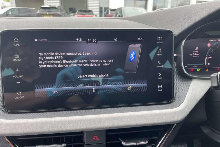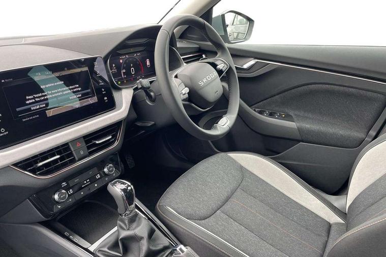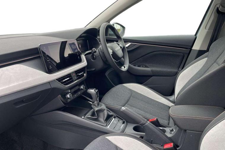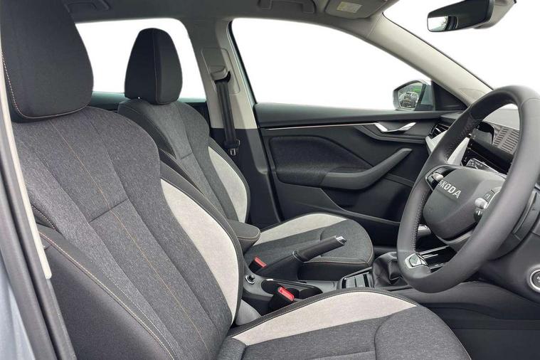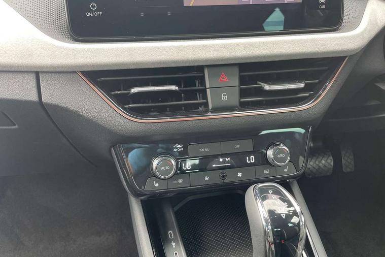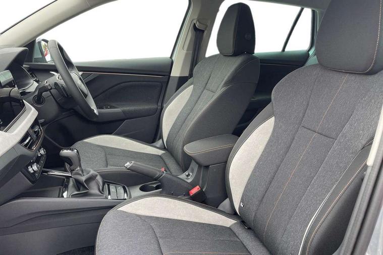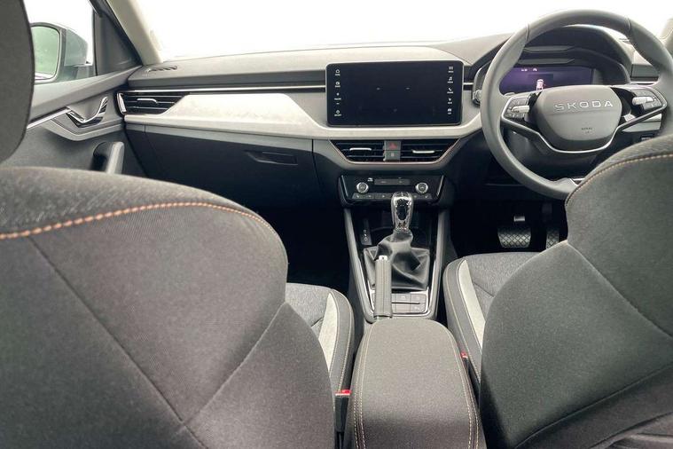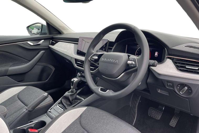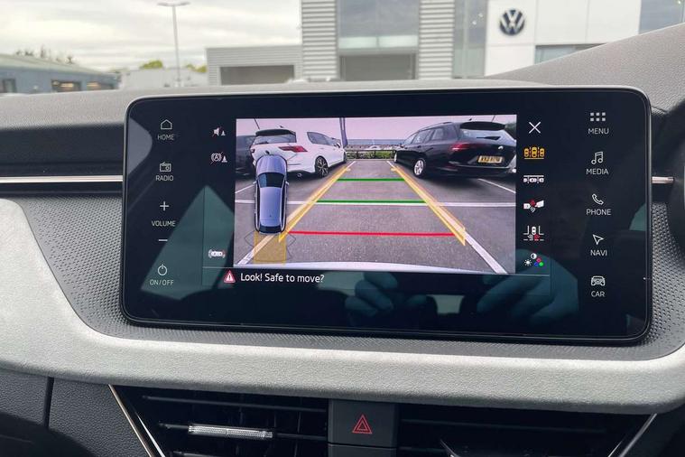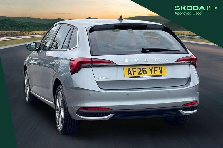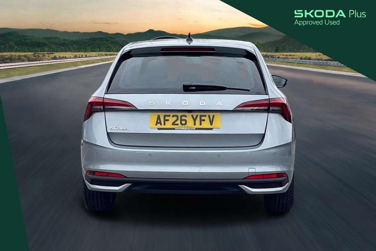 Advanced driver attention and drowsiness monitor, Bluetooth, e-Call (emergency call), Front assist system, PAS, Rear parking sensors, Rear view camera, Speed limiter, Tailgate, Traffic sign recognition, Virtual Cockpit - 10.25" digital display, Voice control system, Wireless smartlink, 4 USB C ports, 9.2" Skoda navigation display, DAB radio, Auto dimming rear view mirror, Automatic headlight control with manual coming and leaving home feature, Automatic intermittent wipers, Body colour bumpers, Body colour door mirrors and handles, Chrome moulding around grille, Chrome window frames, Front and rear electric windows, Heated rear window, LED 3rd brake light, LED daytime running lights, LED high beam, LED low beam, Light sensors, Privacy glass, Rear LED fog light, Rear side wing doors, Rear wiper, Tinted windows, Unique dark chrome design logo on alloy wheels, 12V socket in luggage compartment, 3 seat bench in 2nd row, Ambient lighting in white/red, Black / Copper armrest stitching, Cargo elements, Chrome inner door handles, Copper hotstamping, Door inserts in accent black, Driver and passenger sun visors with vanity mirror, Dual zone climate control, Front and rear roof lights, Front centre armrest, Front head restraints, Glasses storage in roof liner, Height adjustable driver seat, Height adjustable passenger seat, Ice scraper, Illuminated glove compartment, Inner circulation control with pollen filter, ISOFIX for front passenger seat, Isofix preparation for back seats, Leather gearknob and handbrake lever, Lodge cloth upholstery, Luggage net under rear parcel shelf, Manual lumbar support for front seats, Net package and top tether hooks in boot space, Pocket on the back of both front seats, incl. mobile phone pockets, Rear centre armrest, Single front passenger seat, Skoda lettering on steering wheel, Textile floor mats, Third rear headrest, Ticket holder, Top tether for front passenger seat, Umbrella in driver's door, Convenience pack without rear camera - Scala, 3x3 point rear seatbelts, ABS, Child locks, Curtain airbags and front side airbags, Disc brakes, Driver and front passenger airbags, ESP, Hill hold control, Manual leather parking brake, One tone horn, Passenger airbag switch off function, Seatbelt reminder for driver and front passenger, Tyre pressure monitoring system, Anti theft alarm system with interior monitoring, backup horn and towing protection, Anti-theft wheel bolts, Remote central locking with 2 remote folding keys, SAFE function for remote central locking, Decorative inserts,