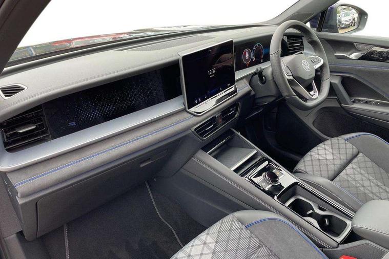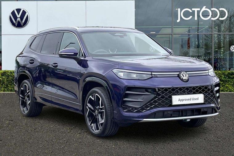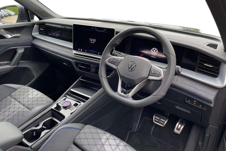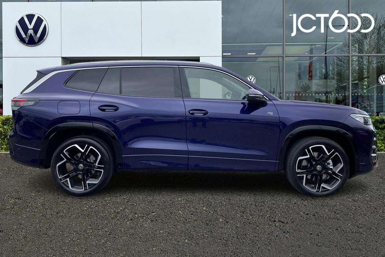 Adaptive cruise control (ACC), Digital Cockpit Pro - 10.25" high resolution dash display screen with customisable menus and information, Driver alert system, Driver attention monitoring system, Driving profile selection, Dynamic road sign display, E-Sim card for online connectivity, Easy Open and Close Electric tailgate with virtual pedal activation, eCall emergency call system, IDA voice assistance with ChatGPT, Lane change system, Side assist, Rear traffic alert and Exit warning system, Lane keeping system, Multifunction front facing camera, Navigation system, Oncoming vehicle braking when turning including swerve support, Park assist plus with park distance control, Power assisted steering with speed sensitive, Sports steering system, Start/stop system with regenerative braking, Warning signal and warning light for front and rear seatbelts not fastened, Wireless App-Connect, Front shock absorption G01, Front wheel drive, 12.9" infotainment display, Digital radio reception (DAB), Diversity antenna for FM reception, Air intake with Chrome trim, Auto dimming interior rear view mirror, Automatic headlight control system, Body colour door handles, Chrome moldings on the side windows, Coming/leaving home lighting function, Dynamic headlight range control with dynamic cornering light, Exterior mirrors convex on the left and aspherical on the right, Heat insulating glass in side and rear windows, High Beam Assist, automatic sensing for switching between dipped and main beam, Illuminated Volkswagen logo in front and rear, Laminated safety glass windshield, heat insulating, LED 3rd brake light, LED headlamps, LED separate signature day time running light, Poor weather light, Puddle lights, Rain sensor windscreen wipers, Rear combination lamps with special signal pattern, Rear fog light on one side, reversing light on both sides, Rear side wing doors, Rear wiper, Reverse activated passenger's door mirror, Sound insulating laminated safety glass from B-pillar backwards 90% tinted, Surround lighting with welcome light, Volkswagen logo in front, illuminated lighting animation with wake up/goodbye scenario and illuminated door handles, 12V outlet in center console rear and in luggage compartment, 12V socket in centre console, 2 USB-C ports in the front, 2 USB-C charging sockets on the centre console in rear, charging capacity up to 45 W, 230V socket in luggage compartment, 3 rear headrests, 3 rear seat bench in 2nd row, backrest split folding with centre armrest and 2 seats in 3rd row of seats, 3 zone air care climatronic with rear air conditioning control panel, 30 colours options interior ambient lighting, Art velours cloth upholstery, Black roof lining, Brushed stainless steel pedals, Carpet mats, front and rear, Centre console with illuminated storage compartment with sliding cover and two drinks holders, Chrome elements on the mirror switch and power window switches and door pulls, Door and side trim panel insert in Art velour, Drivers seat with manual adjustment of seat travel and height and backrest angle with thigh support longitudinally sliding, Flat luggage compartment floor, Front centre armrest, Front massage seats, Front scuff plates in aluminium, Inductive smartphone charging, ISOFIX anchors for child seats on outer rear seats and front passenger seat compatible with i-Size, Leather wrapped multifunction heated steering wheel with paddle shift, Manual height adjustable front passenger seat, Mechanical rear seat release, Power adjustable lumbar support in front, Safety optimised front integrated head restraints, Single front passenger seat, Sports comfort seats in front, Sun visors with illuminated vanity mirrors, Touch control steering wheel, 3 Point seat belts in front with pretensioners, 3 point seatbelts in outer rear with ECE label, Autonomous emergency braking front assist with pedestrian and cyclist monitoring, Driver and front passenger airbag with front passenger airbag deactivation, Electronic parking brake with auto hold, First aid kit with warning triangle and safety vest, Front and rear curtain airbags, Front and rear side airbags, Front centre airbag, Front disc brakes, Hill start assist, Manual rear child locks, Proactive passenger protection system, Rear disc brakes, Two tone horn, Tyre pressure monitoring system, Alarm with interior protection, Central locking system keyless entry, Decorative material set R-Line, Interior door handle in matte chrome,