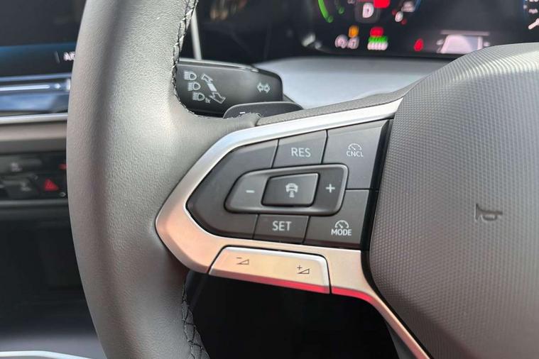 Activated carbon canister, Adaptive cruise control (ACC), Advanced driver attention and drowsiness monitor, Dynamic road sign display, E-Sim card for online connectivity, eCall emergency call system, Multi-color Digital cockpit pro, selection of different info profile possible, Multifunction front facing camera for distance control, Navigation system, Oncoming vehicle braking when turning including swerve support, Speed limiter, Speedo, rev counter, electronic odometer, trip, service interval display, exterior temperature and fuel gauge, Traffic jam assist, Voice enhancer and voice control, Warning signal and warning light for front and rear seatbelts not fastened, We connect plus preparation, We connect preparation, Wireless app connect, Charging cable Mode 2 Type 2 (10A), Charging cable mode 3, type 2 32 A, Electric motor (hybrid electric vehicle) total system output 200kw, unit OEK A, Hybrid propulsion system, Petrol Particulate Filter, Start-stop system with battery regeneration (recuperation - energy recovery during braking), XDS electronic differential lock for improved traction and handling, 2 USB C ports in front, 2 USB charging sockets on the centre console in the rear charging capacity upto 45W, 6 Speakers - 4 in front and 2 in rear with central speaker, Digital radio reception (DAB), Diversity antenna for FM reception, Gaming platform via car app, Infotainment system with 12.9" display, Mobile phone interface with inductive charging feature, 3rd brake light, Automatic headlamp activation with Coming home and Leaving home feature, Body colour door handles, Body colour door mirrors, Exterior mirrors convex on the left and aspherical on the right, Front and rear electric windows, Heat insulating windshield made of laminated glass, LED separate daytime running light, Rear exhaust tailpipe, Rear fog light on one side and reversing lights on both sides, Rear side wing doors, Rear tinted glass 65% light absorbing from B pillar backwards, Rear windscreen washer and wiper with interval delay, Remote electrically foldable door mirrors, puddle lights and reverse activated passenger's door mirror, Standard bumpers, Welcome light with surround lighting, 12V socket in front centre console, 12V socket in luggage compartment, 3 rear head restraints, 3 seat bench in 2nd row, Air care climatronic 3 Zone automatic climate control with rear air conditioning control panel, Chrome plated radiator grille inserts, air vent surrounds and light switch surrounds, Front + rear black carpet mats, Front centre armrest, Front head restraints, Front seat lumbar support adjuster, ISOFIX anchors for child seats on outer rear bench seats and on front passanger seat compatible for i-Size, Luggage compartment lighting, Manual height adjustable front passenger seat, Manually height adjustable driver seat, Plastic gear knob, Rear cupholder and loadthough, Single front passenger seat, Soul black instrument panel, Split folding backrest with centre armrest and unsplit rear seat bench, Standard pedal cluster, Storm grey roof lining, Sun visors with illuminated vanity mirrors, Technology park and comfort pro package - Golf Hatchback, 3 point height adj front seatbelts + pretensioners, 3 rear three point seatbelts, ABS, Autonomous emergency braking front assist with pedestrian and cyclist monitoring, Child locks on rear doors, Driver and front passenger airbag with front passenger airbag deactivation, Electronic parking brake with auto hold, ESC (Electronic Stability Control), Extended pedestrian protection measures, Hill start assist, Rear disc brakes, Two tone horn, Tyre pressure loss indicator, Volkswagen roadside assistance, Anti theft wheel bolts, Preparation for alcohol interlock, Nature cross brushed decorative inserts for dashboard and front door panels, Tool kit for tyre mobility set, Tyre mobility kit Includes 12V compressor and tyre sealant,