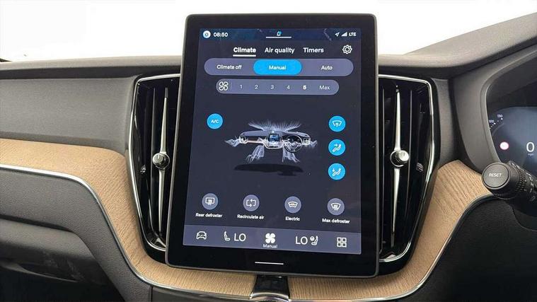 11.2" centre console touch screen, 12.3" Progressive Driver Display, 360 degree surround view parking camera with side proximity sensors, Adaptive cruise control, Adjustable steering wheel force, Android auto (Wired), Apple carplay (wired), Bluetooth handsfree system, Drive mode settings, Driver alert control with lane keeping aid, Driver understanding system, Emergency services call system, Front and rear park assist, Google Automotive Services, Intelligent speed assistance, Oncoming Lane Mitigation, PAS, Power operated tailgate with handsfree opening and closing, Service interval indicator, Speed limiter, Speed sensitive steering, Trip computer, Volvo cars services with app, Volvo on call with App, Wireless/Inductive Mobile Phone Charging, 2 phase on board charger 6.4kW (home charging limited to 3.7kW), 6m 3 phase 16amp Type 2 / mode 3 charge cable, 8 speed automatic transmission with start/stop + manual change functions, Electric rear axle drive, Recharging port located in nearside front wing, DAB Digital radio, Low speed exterior sound speaker, Premium Sound by Harman Kardon, dirac unison, dolby pro logic II surround sound, 13 speakers/600W output and fresh air subwoofer, Steering wheel remote infotainment controls, Adaptive brake lights with high level LED brake lights, Auto dimming interior + exterior mirrors, Automatic headlight levelling system, Automatic LED Headlights + Active high beam incorporating daytime running lights, Electric adjustable/heated/auto power folding door mirrors, Electric front+rear windows, Front aluminium tread plates, Heated front windscreen, High gloss black door mirrors and window surround, High gloss black front and rear bumper decoratives, High gloss black mesh front grille with high gloss black surround, Home safe and approach lighting, Integrated roof rails in high gloss black, Puddle lights, Rain sensor with automatic windscreen wiper activation, Rear side wing doors, Rear wiper, Roof antenna, Roof spoiler, Tinted windscreen, Visible VIN plate, 12V socket in front tunnel console and luggage compartment, 2 zone electronic climate control with Clean zone air quality system and pollen filter, 3 seat bench in 2nd row, 3 Spoke tailored steering wheel with chrome trim, A-pillar parking ticket holder, Air purifier particulate matter (PM) 2.5 filter, B Pillar ventilation, Bright metal luggage scuff plate, Centre console cupholders and storage, Charcoal floor mats, Front and rear courtesy lights, Front and rear door pocket illumination, Front cupholder illumination, Front footwell illumination, Front reading lights, Front seat cushion extensions, Glovebox compartment with illumination, Head restraints for all seats, Heated front seats, Heated steering wheel, Height/reach adjustable steering column, Illuminated luggage compartment, Illuminated vanity mirrors + ticket holder, Inner door release handle illumination, ISOFIX attachment on outer rear seats, Load cover, Load protection net, Multi directional lumbar support, Power driver seat with memory + exterior mirrors memory, Power height adjustable passenger seat, Power passenger seat with memory, Quilted nordico leather upholstery, Rear armrest with cupholder, Rear footwell and front and rear side step illumination, Rear reading lights, Rear seat concealed storage, Single front passenger seat, Tailgate illumination and ambient door lighting, Underfloor stowage compartment, Versatile split folding rear seat - 60/40, Driver assist pack without Adaptive cruise control - XC60, 5 three point seatbelts, City safety with steering support with Pedestrian + cyclist + front collision warning with full auto brake and rear auto brake, Drivers knee airbag, Dual stage driver/passenger airbags, Electronic parking brake with auto hold, First aid kit, Front seats SIPS airbags, Hill descent control - Off-road drive mode, Hill start assist, IC (Inflatable Curtains) - Full Length, Passenger airbag cut-off device, Power child locks on rear doors, Road sign information display, Run off Road Mitigation, Run off Road Protection, Seatbelt reminder and pretensioners, SIPS (Side Impact Protection System), Slippery road and hazard light alert, Stability and Traction Control with Spin control, Engine Drag Control and Corner Traction Control, Tyre pressure monitoring system, Vehicle deceleration control with Anti-lock Brake System, Electronic Brake Distribution and Emergency Brake Assist, Warning triangle, WHIPS whiplash protection system - front, Anti-theft alarm including immobiliser/volume sensor + level sensor, Key integrated remote control central locking + fuel flap with deadlocking system and auto open/close power windows, Keyless Drive (includes Keyless Entry and Keyless Start), Locking wheel nuts, Private locking for tailgate, Summer tyres, Tyre sealant kit + 12v compressor,