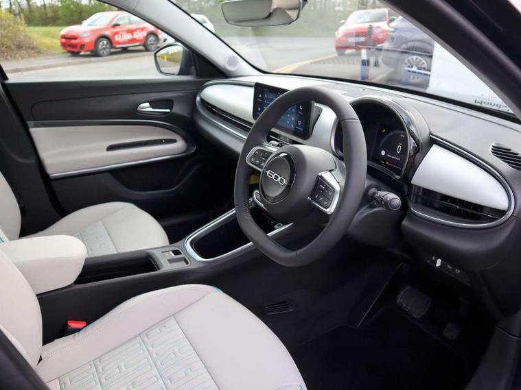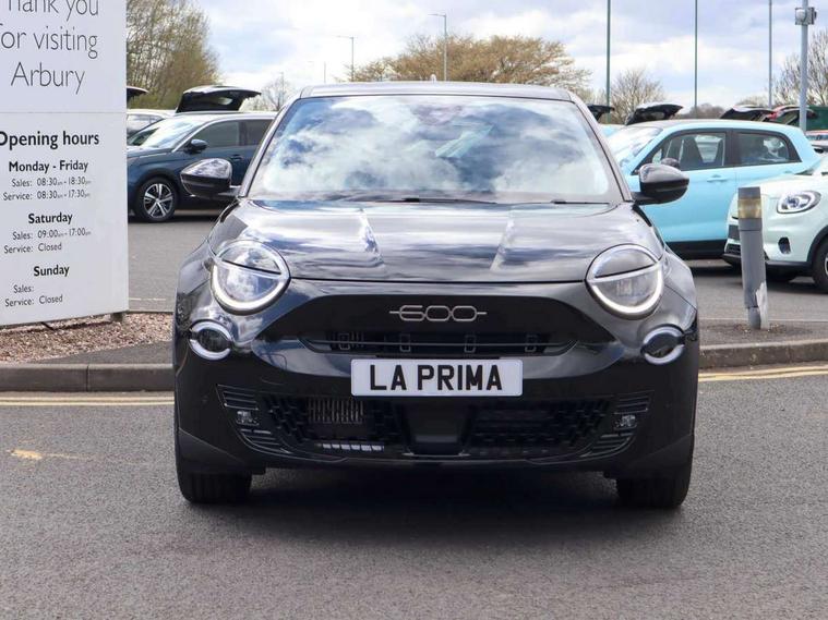 360 degree parking sensors with 180 degree rear view camera, 7" TFT digital cluster, Autonomous driving level 2: Adaptive cruise control with stop & go and lane centering, Blind spot detection, Bluetooth connectivity, BSRF connectivity box, Connected services, Drowsy driver detection, Emergency E-call assist, Engine emission level default, GSR II step 1, Hands free power liftgate, Intelligent speed assist, Lane keeping assistant (LKA), Odometer, Power assist steering, Rain and dusk sensors, Semi-automatic parking with Visiopark 1 system, Traffic sign recognition, Wireless apple car play/android Auto, Wireless charging pad for smartphones, Without drive mode selector, L2-AGM 12V battery, 1st Row USB type-A and USB type-C, 2nd Row USB type-C, 6 speaker audio system, Radio, Uconnect infotainment 10.25" touchscreen with integrated navigation system and DAB, All power windows express Up/Down, Auto dimming frameless rear view mirror, Automatic headlights, Automatic high/low beam, Body coloured door handles, Chrome day light openings, Chromed exhaust tip, Electric adjustable/heated/folding door mirrors, Exterior chrome accents, Front and rear Chromed 600 logo, Gloss black finish B pillar, Gloss black shark fin antenna, Glossy black door mirrors, Heated windscreen wiper blade area, LED 3rd brake light, LED daytime running lights, LED Fog lamps with cornering function, LED front signature lighting, LED front turn indicators and position lights, LED rear lights, LED rear signature lighting, LED reflector headlamps, Matt black side skirts with 600 chromed logo, Privacy glass, Puddle lights, Rear bumper embossed 600 logo, Rear roof spoiler, Rear side wing doors, Rear wiper, 2 Spoke synthetic leather steering wheel with audio control, 3 rear headrests, 3 seat bench in 2nd row, 6 way manually adjustable front passenger seat, 6 way power adjustable driver seat with lumbar support and massage function, Adjustable trunk floor, Automatic climate control, Auxilliary 12V power socket, Cargo flex fit, Chrome interior door handles, Dark metachrome dashboard ring, English handbook, Front centre armrest, Front headrests, Front passenger grab handle, Front seatback pockets, Heated front seats, ISOFIX attachment on front passenger and rear passenger seats, Matt Ivory painted dashboard fascia, Metachrome central compartment bezel, Monogram Synthetic leather upholstery, Paddle shifts, Partial body cover for shipment, Predisposal for accessory upgrade to default tunnel pad cover (dedicated prnd bezel), Rear seat 40/60 split, Single front passenger seat, Smart 15L storage central tunnel with La prima tunnel pad cover, Sunvisor label ciao Fiat, Sunvisors with vanity mirrors, Velour floor mats, 3x3 point rear seatbelts, 6 airbags, ABS, Autonomous Emergency Brake (AEB) & Vulnerable Road User (VRU) Protection, Child locks on rear doors, Electronic parking brake with auto hold, ESC (Electronic Stability Control), Front passenger airbag deactivation, Seatbelt reminder and pretensioners for all seats, Anti-theft volumetric alarm, Anti-theft wheel bolts, Passive entry and keyless go, 18" Diamond cut alloy wheels, Fix and go puncture repair kit,
