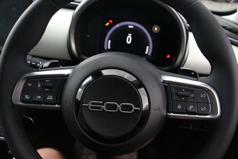 360 degree parking sensors with 180 degree rear view camera, 7" TFT digital cluster, Autonomous driving level 2: Adaptive cruise control with stop & go and lane centering, Blind spot detection, Bluetooth connectivity, BSRF connectivity box, Connected services, Drowsy driver detection, Emergency E-call assist, Engine emission level default, GSR II step 1, Hands free power liftgate, Intelligent speed assist, Lane keeping assistant (LKA), Odometer, Power assist steering, Rain and dusk sensors, Semi-automatic parking with Visiopark 1 system, Traffic sign recognition, Wireless apple car play/android Auto, Wireless charging pad for smartphones, Without drive mode selector, L2-AGM 12V battery, 1st Row USB type-A and USB type-C, 2nd Row USB type-C, 6 speaker audio system, Radio, Uconnect infotainment 10.25" touchscreen with integrated navigation system and DAB, All power windows express Up/Down, Auto dimming frameless rear view mirror, Automatic headlights, Automatic high/low beam, Body coloured door handles, Chrome day light openings, Chromed exhaust tip, Electric adjustable/heated/folding door mirrors, Exterior chrome accents, Front and rear Chromed 600 logo, Gloss black finish B pillar, Gloss black shark fin antenna, Glossy black door mirrors, Heated windscreen wiper blade area, LED 3rd brake light, LED daytime running lights, LED Fog lamps with cornering function, LED front signature lighting, LED front turn indicators and position lights, LED rear lights, LED rear signature lighting, LED reflector headlamps, Matt black side skirts with 600 chromed logo, Privacy glass, Puddle lights, Rear bumper embossed 600 logo, Rear roof spoiler, Rear side wing doors, Rear wiper, 2 Spoke synthetic leather steering wheel with audio control, 3 rear headrests, 3 seat bench in 2nd row, 6 way manually adjustable front passenger seat, 6 way power adjustable driver seat with lumbar support and massage function, Adjustable trunk floor, Automatic climate control, Auxilliary 12V power socket, Cargo flex fit, Chrome interior door handles, Dark metachrome dashboard ring, English handbook, Front centre armrest, Front headrests, Front passenger grab handle, Front seatback pockets, Heated front seats, ISOFIX attachment on front passenger and rear passenger seats, Matt Ivory painted dashboard fascia, Metachrome central compartment bezel, Monogram Synthetic leather upholstery, Paddle shifts, Partial body cover for shipment, Predisposal for accessory upgrade to default tunnel pad cover (dedicated prnd bezel), Rear seat 40/60 split, Single front passenger seat, Smart 15L storage central tunnel with La prima tunnel pad cover, Sunvisor label ciao Fiat, Sunvisors with vanity mirrors, Velour floor mats, 3x3 point rear seatbelts, 6 airbags, ABS, Autonomous Emergency Brake (AEB) & Vulnerable Road User (VRU) Protection, Child locks on rear doors, Electronic parking brake with auto hold, ESC (Electronic Stability Control), Front passenger airbag deactivation, Seatbelt reminder and pretensioners for all seats, Anti-theft volumetric alarm, Anti-theft wheel bolts, Passive entry and keyless go, 18" Diamond cut alloy wheels, Fix and go puncture repair kit,