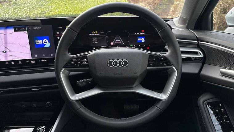 Adaptive cruise control, Attention and drowsiness detection with driver observation, Audi application store, Audi assistant, Audi connect emergency call and service, Audi drive select, Audi virtual cockpit plus with 11.9" OLED colour display, Automatic start/stop system with coasting functionality, Camera based traffic sign recognition, Convenience key, Intersection assist, Lane departure warning, MMI navigation plus with high resolution 14.5" OLED touchscreen colour display, Park assist plus, Parking system plus with 360 display, Progressive steering with servotronic, Rear view camera, Side assist and exit warning, rear cross-traffic assist and rear turn assist, Smartphone interface, Swerve assist and turn assist, Traffic sign based speed limiter, Comfort suspension, Audi sound system impressive sound with 8 loudspeakers including centre speaker and subwoofer, 6-channel amplifier with a total output of 180 watts, DAB digital radio reception, Smartphone compartment with wireless charging, Aluminium roof rails, Aluminium window trims, Auto dimming rear view mirror, Body colour door handles, Body colour door mirrors, Clear glass windows, Door mirrors - electrically adjustable, heated, folding and auto dimming on both sides, Front and rear electric windows, Front door sill trims with aluminium inlays, High beam assist, LED headlights Plus incl. digital daytime running lights, turning light, all-weather light, motorway light, manouevring light and intersection light, LED rear lights pro incl. dynamic rear indicators and illuminated light strip with animated coming and leaving home function, LED third brake light, Rear and side windows with heat insulating glass, Rear side wing doors, Rear wash/wipe, Sport bumpers, radiator grille and diffuser in scandium grey and diffuser insert in matt selenite silver, White rhombus logo projection light in exterior mirrors, Windscreen with acoustic glazing, 3 rear headrests, 3 seat rear bench, 3-zone automatic climate control, 40:20:40 split folding rear seat bench with centre armrest and cup holders, Comfort front centre armrest, Expedition cloth upholstery, Front and rear floor mats, Front seats with manual adjustment for position and 4-way electric lumbar support, Front sport seats with integrated head restraints, Heated front seats, i-Size child seat mounting on the front passenger side and outer rear seats, i-Size and top tether on the outer rear seats, Increased charging capacity for USB ports 2X100 Watts in rear, 2X60 Watts in front, Luggage compartment lid, electrically opening and closing, Manual steering column height and depth adjustment, Rock grey cloth headlining, Single front passenger seat, Twin spoke leather steering wheel with multi-function buttons with touch control, shift paddles and trim in chrome look, Interior lighting in white package pro - A5, 3x3 point rear seat belts, Driver airbag, Electric child safety locks, First aid kit with warning triangle and vests, Front emergency brake assist, Front passenger airbag, Front passenger airbag deactivation, Front side airbags with head airbag system and front interaction airbag, Hill hold assist, Seat belt monitoring with rear seat occupant reminder, Tyre pressure loss indicator, Anti theft alarm, Anti-theft wheel bolts, Digital key, Keyless Go, Accent surfaces and control buttons in matt black, Black dashboard with contrast stitching, Inlays in laser structure, black, Softwrap in impressum cloth, Tyre repair kit,