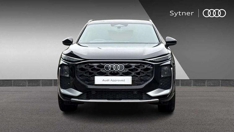 Adaptive cruise control, Audi connect emergency call and service, Audi connect remote and controls, Audi drive select (Balanced/Individual, effeciency, comfort and dynamic), Audi virtual cockpit plus - 11.9" display, Bluetooth interface, Camera based traffic sign recognition, Driver attention and fatigue monitor with driver monitoring, Front cross traffic assist, Lane departure warning with emergency assist, Panoramic curved display with 12.8" MMI navigation plus and MMI touch, Park assist plus with parking system and 360 display, Phonebox light with wireless charging, Reversing camera, Smartphone interface includes wireless Apple carplay/Android Auto, Start/stop system, Swerve assist and turn assist, Traffic sign based speed limiter, Voice control system with natural language interaction, Comfort suspension, Petrol Particulate Filter, 2 USB-C ports with charge and data functions, Audi sound system with 10 loudspeakers, subwoofer, 8 channel amplifier with 260 watts, DAB digital radio module, Acoustic glass for front door windows, Acoustic windscreen, Aluminium roof rails, Aluminium window trim, Audi Q3 lettering on the B-pillars, Auto dimming door mirrors, Auto dimming rear view mirror, Body colour door mirrors, Contrasting finish in volcano grey, Electrically folding, adjustable and heated door mirrors with integrated LED side indicators and kerb view function for passenger side, Full paint finish, Illuminated door sills with aluminium inserts at the front with S logo, LED daytime running lights, LED headlights plus with LED rear lights pro with continous light strip, illuminated Audi rings, rear, LED third brake light, Loading sill protector in stainless steel, Main beam assist, Privacy glass - dark tinted rear window, rear door and side windows, Projection light in the exterior mirrors - Projects a graphic element onto the ground, Q3 badging on the rear, Rain and light sensors, Rear side wing doors, Rear window, rear door windows and rear side windows in clear glass, Rear wiper, Sports bumpers, 3 seat bench in 2nd row, 3 spoke flat top and bottomed leather multi function sport steering wheel with gear shift paddles and "S" badging, 3-zone deluxe automatic air conditioning, 4 way lumbar support for the front seats - electric with horizontal and vertical adjustment in four directions, Black cloth headlining, Front and rear floor mats, Front and rear headrests, Front centre armrest, Heated front seats, Height and reach adjustable steering wheel, Interior storage compartment, Leather/artificial leather upholstery combination with S emblem + front sports seats, Luggage compartment lid, electrically opening and closing, Manual front seats with height adjustment, Rear seat bench plus with split folded 40:20:40, Single front passenger seat, Stainless steel pedals, Steering wheel operating unit, gloss black, Storage compartment in front centre console, Ambient lighting package pro - Q3, S line exterior styling pack - Q3, 3x3 point rear seatbelts, Convenience key with safelock, Driver and front passenger airbag with passenger airbag deactivation, Electromechanical parking brake, Electronic stabilisation control including ABS, ASR and EDL, First aid kit with warning triangle and high visibility vests, Front emergency brake assist, Hill hold assist, i - Size child seat mounting on the front passenger side and i - Size and top tether on the outer rear seats, Power operated child locks, Seatbelt monitoring, Three point automatic belts with belt tensioner and height adjustment, Tyre pressure loss indicator, Anti theft wheel bolts, Remote central locking, Thatcham approved category 1 anti theft alarm, Dark aluminium divergence inlay, Interior elements in dinamica microfibre, Interior trims in aluminium look, Tool kit and Jack,