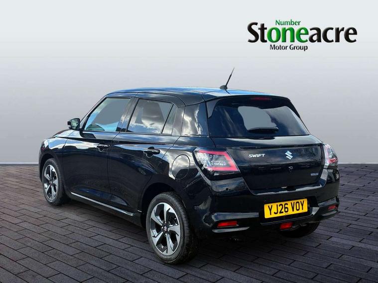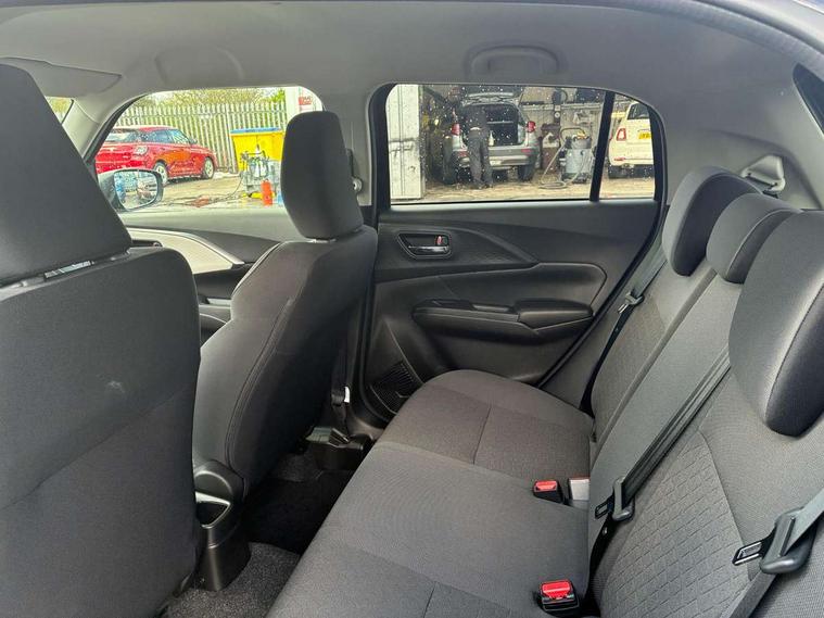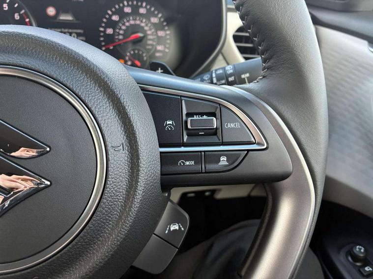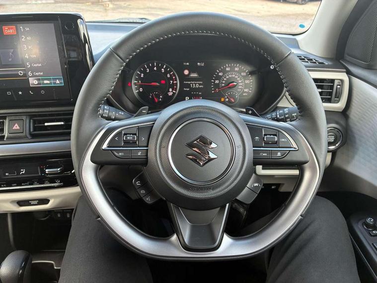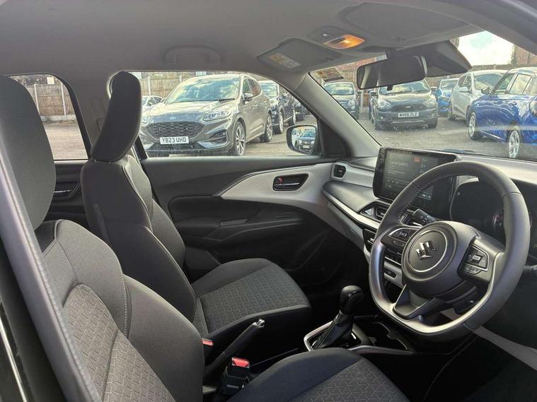 Adaptive cruise control with Stop and Go, Automatic start/stop system, Blind spot monitoring, Colour LCD information display, Digital clock, Driver monitoring system, eCall, Fuel consumption display (average/instantaneous) and range display, Intelligent speed control support, Lane departure prevention, Lane departure warning system, Lane keeping assist (LKA), Low fuel level warning light, Navigation system, Outside temperature display, PAS, Rear cross traffic alert, Rear parking camera, Rear parking sensors, Remote fuel cap release, Smartphone integration with Apple CarPlay and Android auto, Suzuki connect, Tailgate, Traffic sign recognition, Weaving alert, 4 speakers + 2 tweeters, 9-inch infotainment display, Auxiliary input socket, Bluetooth audio streaming, DAB Digital radio, Steering wheel audio controls, USB Type A and C, 'Guide me home' headlamps, 1 speed with intermittent rear wiper + washer, 2 speeds front wiper with intermittent + washer, Automatic headlights, Black coloured A & B pillars, Black Upper and lower front grille, Body colour door mirrors and handles, C pillar trim moulding, Door mirrors with built-in turn signal lamp, Electric door mirrors, Electric folding door mirrors, Electric front windows, Electric rear windows, Green tinted glass, Heated door mirrors, High beam assist, LED daytime running lights, LED High mounted stop light, LED number plate light, LED position lamps, LED projector headlamps, LED rear combination lamp, Manual headlamp level control, Rain sensor, Rear fog lights, Rear privacy glass, Rear side wing doors, Rear spoiler, Side spoiler, 1 cup holder in rear, 12V Accessory socket in front console, 2 cup holders in front, 2 Isofix seat anchors, 3 bench rear seats in 2nd row, 3 rear head restraints, 3 spoke leather covered steering wheel, 60/40 split rear seats, Accessory socket, Automatic air conditioning, Centre console storage, Centre lower box, Child seat tether anchorages x 2, Chrome handbrake release button, Chrome interior door handles, Cloth upholstery, Door pockets with bottle holder, Driver/passenger sunvisors with ticket holders + vanity mirrors, Front cabin lights, Front headrests, Front map light, Front passenger side assist grip, Gearshift paddles, Glovebox, Heated front seats, Heater, Height adjustable driver's seat, Luggage area lamp, Painted interior door trim ornament, Parcel shelf, Passenger seat back pocket, Pollen filter, Rear assist grips x2, Rear heater duct, Single front passenger seat, Tilt adjustable steering wheel, Tilt/telescopic adjustable steering wheel, 3 point ELR seatbelts for centre seat, 3 point ELR seatbelts front and rear, ABS+EBD+Brake assist, Curtain airbags, Driver airbag, Dual sensor brake support, ESP + traction control, Front and rear seatbelt reminder, Front passenger airbag, Front passenger airbag deactivation, Front seat seatbelts shoulder height adjuster, Front seatbelt pretensioners with force limiters, Hill hold control, Rear child proof door locks, Rear seatbelts with pre-tensioners and load limiters, Side airbags with incorporated into front seats, Tyre pressure indicator, Deadlocks, Freewheeling key cylinders, Immobiliser, Keyless entry and start, Light - on and Key in reminder, Locking wheel nuts, Remote central locking, Painted instrument panel ornament, 16" Polished alloy wheels,