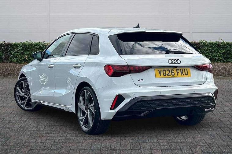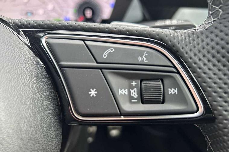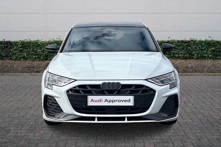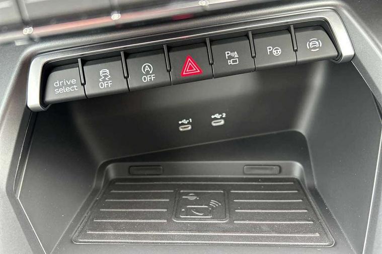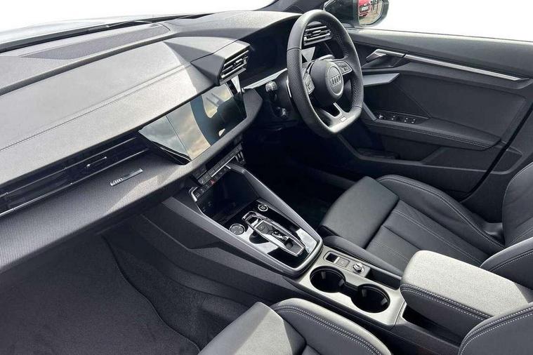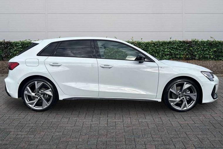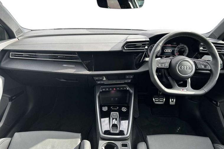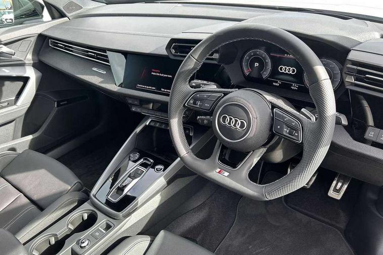 Adaptive cruise control (ACC), Adjustable speed limiter, Audi drive select (Auto, Comfort, Dynamic, Efficiency and Individual), Audi virtual cockpit plus - 12.3" full HD resolution dynamic digital instrument cluster, Automatic start/stop system with recuperation, Bluetooth interface, Camera based traffic sign recognition, Collision avoidance assistant, Driver attention and fatigue detection, e-Call (emergency call), Electromechanical power speed sensitive steering, Emergency assist, Intersection assist, Lane departure warning system, MMI Navigation Plus with high resolution 10.1" colour touch screen display, Park Assist with parking system Plus, Reversing camera, Service indicator, Smartphone interface with app store includes wireless Apple carplay, Android auto and Amazon alexa integration, Trip computer, Voice control system with natural language interaction, Sports suspension, Audi Phonebox light with wireless charging, Audi sound system - 10 loudspeakers including centre loudspeaker and subwoofer, DAB Digital radio, USB ports with charging function in the rear, Acoustic glass windscreen, All weather light, Anthracite grey Audi rings (front and rear), Audi beam uses LEDs to project the Audi logo onto the ground as you exit your A3, Auto dimming frameless rear view mirror, Automatic dynamic range control, Black accents front and rear bumpers, Black accents in the area of the Audi single frame grille, Black accents window trims strips, Dipped beam, main beam, position light and turning light, Electrically adjustable/heated/folding/auto dimming door mirrors with integrated LED indications + kerb view function for passenger side, Exterior model badging, Front and rear side air inlets in grained matt black with dark liquid chrome frame, Front electric windows, Front radiator grill in high gloss dark chrome, Heat insulating glass windscreen, Illuminated door sills with aluminium inserts at the front with S logo, Intersection light, Invisible tailpipe, LED 3rd brake light, LED brake lights, LED daytime running x3, LED headlights with LED rear lights and dynamic rear indicators, LED rear number plate lights, LED reverse light, LED tail lights, Light and rain sensors, Manoeuvring light, Motorway light, Privacy glass - dark tinted rear window, rear door and side windows, Rear diffuser and grill in grained matt black with inlay in dark liquid chrome, Rear electric windows, Rear side wing doors, Rear wiper, S roof spoiler, Side sill trim in dark liquid chrome, Static cornering light, 12V socket and storage compartment in front centre console, 3 seat bench in 2nd row, 3 spoke flat bottomed leather multifunction sport steering wheel with gear shift paddles, 3-zone deluxe automatic air conditioning, 4 way electrically adjustable lumbar support for driver and front passenger, 40/20/40 split folding rear seat bench, Black cloth headlining, Black front and rear floor mats, Front and rear centre armrest in artificial leather with contrasting stitching on armrests and instrument panel, Front and rear headrests, Heated front seats, Height and reach adjustable steering wheel, i-Size child seat mounting on the front passenger side and outer rear seats, i-Size and top tether on the outer rear seats, Manual boot compartment lid, Manually adjustable front seats, Rear centre armrest with cupholder, S badging on the steering wheel, Seat side bolsters, Single front passenger seat, Stainless steel pedals and front footrest in black, Twin leather upholstery with front sports seats S embossed logo, Aluminium interior elements pack - A3, 3x3 point rear seat belts, Driver and front passenger airbag with passenger airbag deactivation, Electronic Stabilisation Control (ESC) including ABS, ASR and EDL, First aid kit with warning triangle and 2 safety vests, Front side airbags with head airbags and interaction airbag, Hill hold assist, Pre-sense front with pedestrian and cyclist detection, Seatbelt monitoring, Tyre pressure loss indicator, Anti theft alarm, Anti-theft wheel bolts, Electronically operated child locks, Immobiliser, Black dashboard,