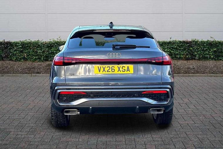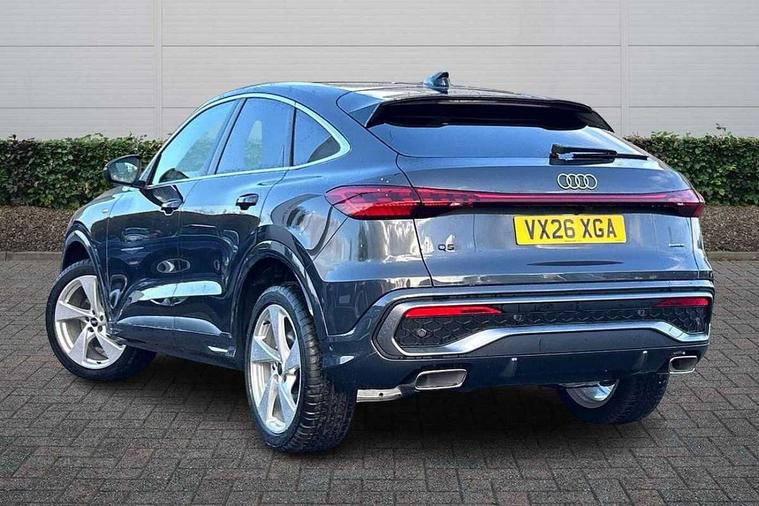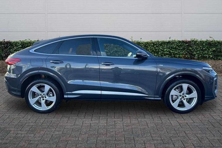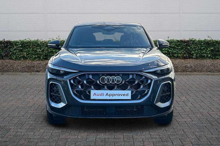 Adaptive cruise control, Attention and drowsiness detection with driver observation, Audi application store, Audi connect emergency call and service, Audi digital key, Audi drive select, Audi smartphone interface, Audi virtual cockpit plus with 11.9" OLED colour display, Camera based traffic sign recognition, Front cross traffic intersection assist, Lane change assistant with exit warning system, rear cross traffic alert and rear turn assist, Lane departure warning system, MMI navigation plus with high resolution 14.5" OLED touchscreen colour display, Park assist plus, PAS, Reversing camera, Swerve assist and front turn assist, Traffic sign based speed limiter, Audi sound system impressive sound with 8 loudspeakers including centre speaker and subwoofer, 6-channel amplifier with a total output of 180 watts, DAB Digital radio, Smartphone compartment with wireless charging, Auto dimming rear view mirror, Body coloured door mirrors, Electrically adjustable heated and folding + automatically dimming exterior mirrors, Front and rear electric windows, Front door sill trims with aluminium inlays, illuminated with 'S' logo, Grill frame, inlay and front air inlets in matt anthracite chrome, Headlight cleaning system, Heated rear window, High beam assist, High gloss window surrounds, LED headlights plus incl. digital DRL, dynamic coming and leaving home function with turning/all weather/motorway/manouevring and intersection lights, LED rear lights pro incl. dynamic rear indicators and illuminated light strip with animated coming and leaving home function, Logo projection light in exterior mirrors, Privacy glass, Projection third brake light for rear window in LED, Radiator grille in phantom black, Rear and side windows with heat insulating glass, Rear honeycombe grille in matt black with inlay in matt anthracite chrome, Rear side wing doors, Rear wash/wipe, S Line badge on the front wings, S line bumpers in contrasting Volcano grey metallic paint finish, Windscreen with acoustic glazing, 3 rear head restraints, 3 seat bench in 2nd row, 3 spoke leather steering wheel with multi-function buttons with touch control, flattened on top and bottom, with S badging and contrast stitching, 4 way electric lumbar support for driver and front passenger, Black carpets, Comfort centre armrest front, Deluxe 3 zone electronic climate control, Front and rear floor mats, Front sport seats with integrated head restraints, Headlining in black cloth, i-Size child seat mounting on the front passenger side and outer rear seats, i-Size and top tether on the outer rear seats, Increased charging capacity for USB ports 2X100 Watts in rear, 2X60 Watts in front, Interior trim in aluminium look, Luggage compartment lid, electrically opening and closing, Manual steering column adjustment, S embossed logo on front sport seats, Single front passenger seat, Softwrap in black, Stainless steel pedals and footrest, Steering wheel grips in perforated leather and shift paddles, Ambient lighting package plus - Q5, Rear seat bench plus pack - Q5, Storage and luggage compartment pack with luggage net - Q5, 3x3 point rear seatbelts, ABS, Acoustic vehicle alerting system, Convenience key with safelock, Driver and front passenger airbag with passenger airbag deactivation, Electric child safety locks, First aid kit with warning triangle and high visibility vests, Front emergency brake assist, Front side airbags with head airbag system and front interaction airbag, Hill hold assist, Rear seat occupant reminder, Tyre pressure loss indicator, Anti-theft wheel bolts, Thatcham approved category 1 anti theft alarm, Accent surfaces and control buttons in gloss black, Anthracite matt brushed aluminium inlays with linear embossing, Black dashboard with contrast stitching, Upper and lower interior elements in artificial leather, Tyre repair kit,