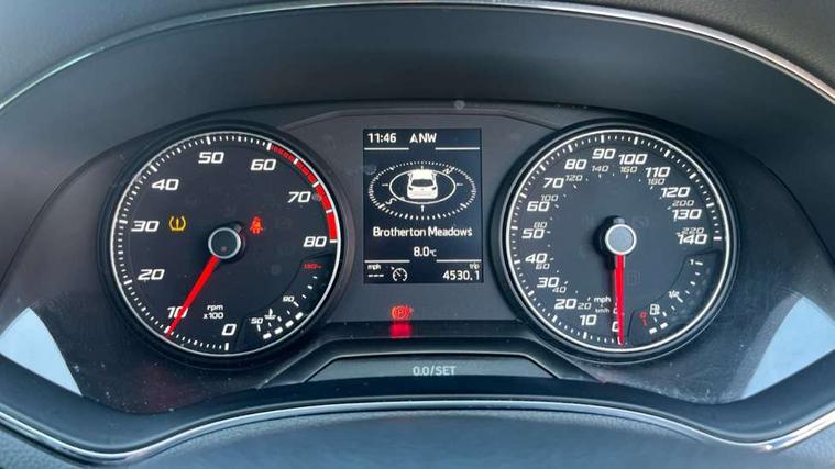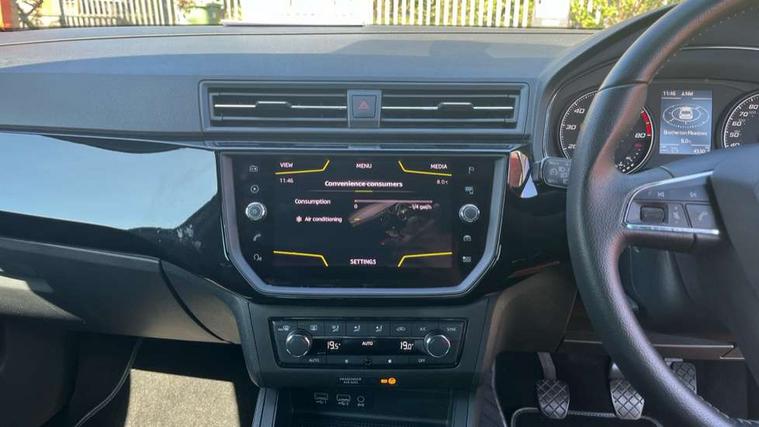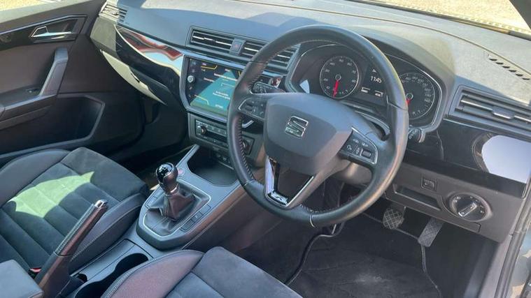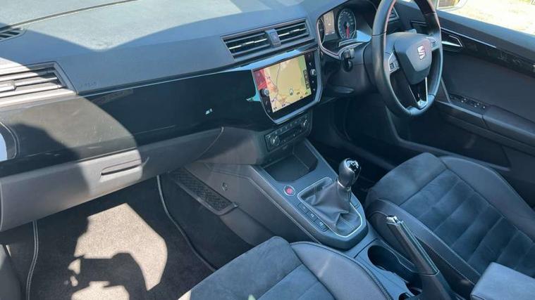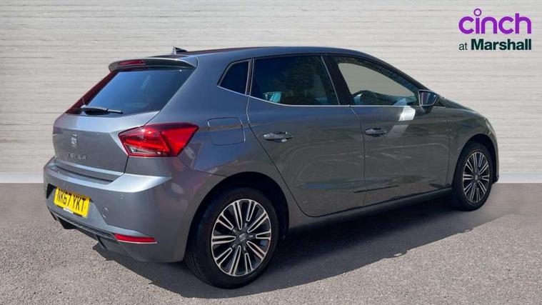 'Lights On' Reminder warning buzzer, Bluetooth Handsfree Phone Connection, Digital clock, Front parking sensors, Low fuel warning light, Outside temperature gauge, Rear parking sensor, Rear view camera, Satellite navigation system with 3D mapping, SEAT Drive profile, SEAT logo boot release, Speed sensitive power steering, Trip computer, Comfort suspension, Auxiliary input socket, Digital Audio Broadcast (DAB) Tuner, Radio/MP3 player, SD card slot, Steering wheel mounted controls, USB port, Atom grey door mirrors, Auto dimming rear view mirror, Automatic headlights, Automatic rain sensing wipers, Body colour bumpers, Body colour door handles, Chrome grille, Chrome window surround, Coming home headlight function, Cornering front fog lights, Dark tinted rear windows, Electric folding door mirrors, Electric front/rear windows with one touch/auto up/down, Electric headlight adjustment, Electrically adjustable and heated door mirrors, LED daytime running lights, LED tail lights, 3 rear headrests, 60/40 split folding rear seat, Alcantara/Simil leather upholstery, Climate control, Driver's sunvisor with ticket holder/vanity mirror, Dust/pollen filter, Front centre armrest, Front courtesy lights, Front cupholders x 2, Front reading lights, Front seat and rear pockets, Glovebox, Height adjustable driver's seat, Height adjustable front/rear head restraints, Height adjustable passenger seat, Height/reach adjust steering wheel, Illuminated boot, Instrument lighting with brightness control, Leather handbrake, Leather steering wheel and gear knob, Passenger sunvisors with vanity mirrors and ticket holder, Rear top tether child seat ISOFIX attachment, Full link media system pack with apple Carplay - Ibiza, Media system plus pack with 8.0" colour touchscreen - Ibiza, 3 point seatbelts on all 3 rear seats, ABS, Active front headrests, Child locks on rear doors, Curtain airbags, Driver/Front Passenger airbags, ESP+EBA, Front passenger airbag deactivation, Front side airbags, Hill hold control, Multi-Collision braking, Seatbelt warning, Tiredness recognition system, Tyre pressure monitoring system, 2 folding remote keys with window open/close function, Electronic engine immobiliser, Keyless entry, Locking wheel bolts, Remote central locking + deadlocks, Volumetric alarm with back up horn,