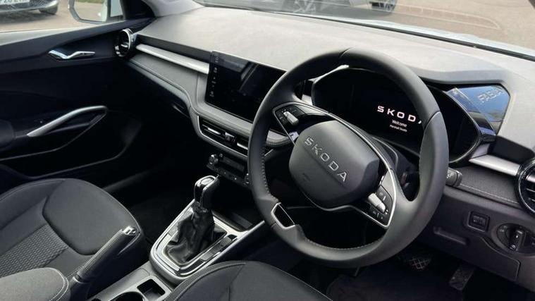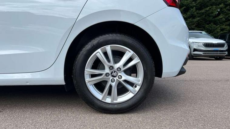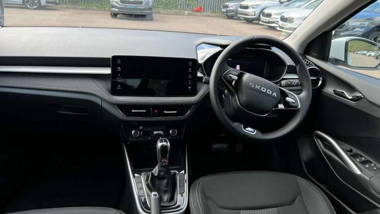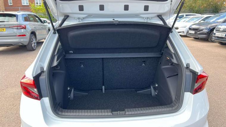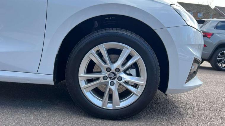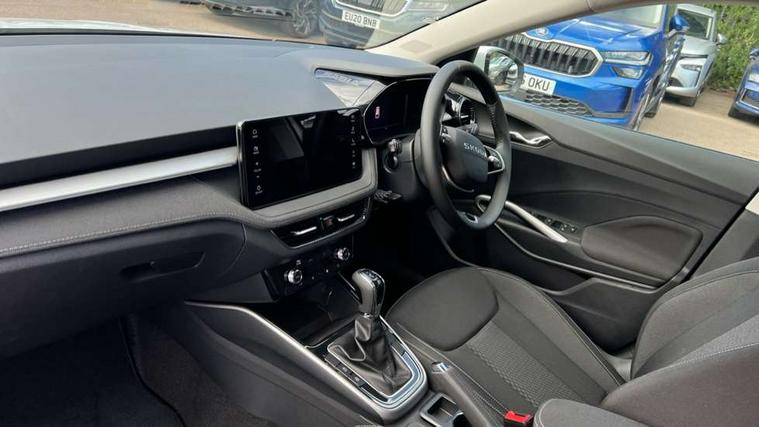 Advanced driver attention and drowsiness monitor, Bluetooth connection, Driver alert system, Electromechanical power steering, Exterior temperature gauge, Service interval indicator, Traffic sign recognition, Virtual cockpit with 10.25" colour display, Wireless SmartLink for Apple CarPlay and Android Auto, 9.2" colour display skoda navigation system with voice control and web radio, Auxiliary socket for external MP3 player, DAB digital radio reception, Auto dimming rear view mirror, Body colour door mirrors, Body coloured bumpers, Chrome window surround, Door mirror integrated indicators, Front and rear electric windows, Front window wiper intermittent control, Headlight range control - Automatic, Ice scraper in fuel cap, LED 3rd brake light, LED daytime running lights with coming and leaving home feature, LED rear lights, Privacy glass, Rear LED fog light, Rear side wing doors, Rear window wiper with washing nozzles, Roof mounted spoiler, SKODA tailgate lettering in chrome, Unique dark chrome design logo on alloy wheels, 2 LED reading lights in front and rear, 3 rear headrests, Backrest split and folding, Central console with fixed cup holder and storage box, Chrome handbrake release button, Comfort seats, Door sills with fabia badging, Dual zone air conditioning with climatronic electronic control, Fabric upholstery, Front centre armrest, Gearshift knob/handle in leather, Grain satin black interior door handles, Hand brake lever handle in leather, Height adjustable front headrests, Height adjustable front seats, Height adjustable steering wheel, ISOFIX and TopTether anchorage points to the outer rear seats, ISOFIX and TopTether on the front passenger seat, Luggage compartment lighting, Manually adjustable lumbar support in front seats, Pollen filter, Rear seat bench unsplit, Single front passenger seat, Skoda lettering on steering wheel, Storm grey headlining, Sun visors with mirror and airbag label on passenger side, Textile floor mats, Ticket holder, Ambient lighting pack - Fabia Hatchback, 3-point height adjustable front seats belts with pretensioner and force limiter, Automatic warning lights in case of crash, Driver and passengers airbag with switch off function, e-Call+, ESC including ABS, MSR, ASR, EDS, HBA and XDS, Front and rear seat belt warning, FRONT ASSIST (AEB City and AEB Inter Urban), Front side airbags, Head airbags, Hill hold control, One tone horn, Pedestrian protection, Three rear 3-points safety seat belts with pretensioner and force limiter including stop function for outer rear seat belts, Tyre pressure monitoring system, Anti-theft alarm system including immobiliser, interior monitoring, backup horn, and towing protection, Central locking with radio remote control, interior controls, SAFE function and 2 foldable keys, Chrome edged air vents, Grain satin black central console cover, Metallic grey upper decorative trim, Satin black door and side trim panel in front, Textile microsuede grey lower decorative trim with art grey stitching, Anti-theft wheel bolts protection, Super-low rolling resistance tyres,