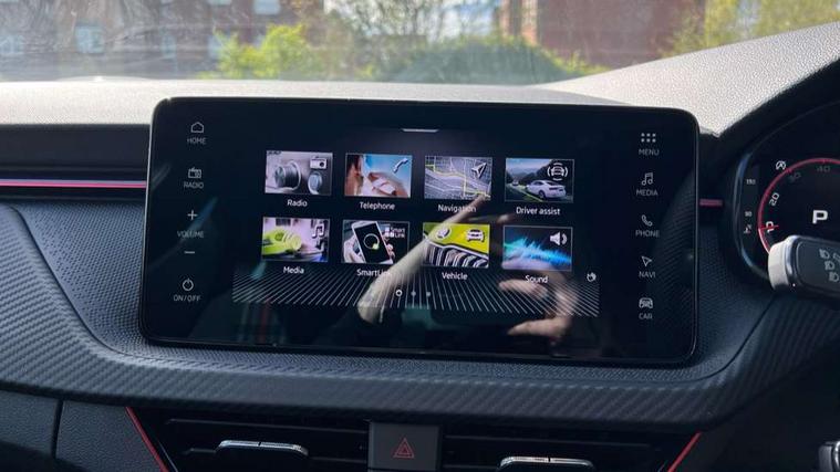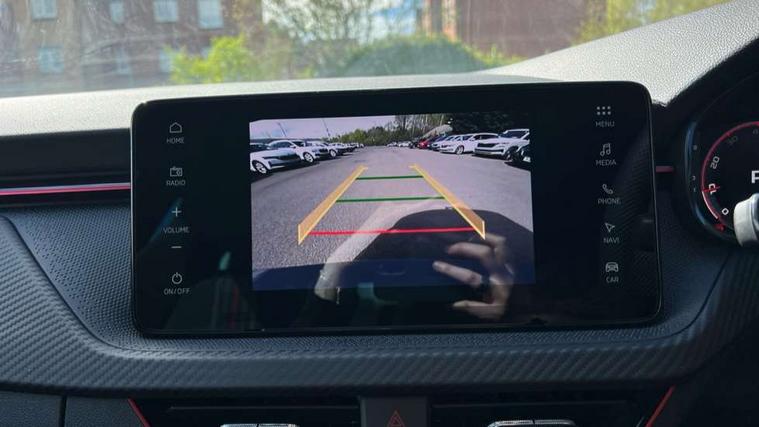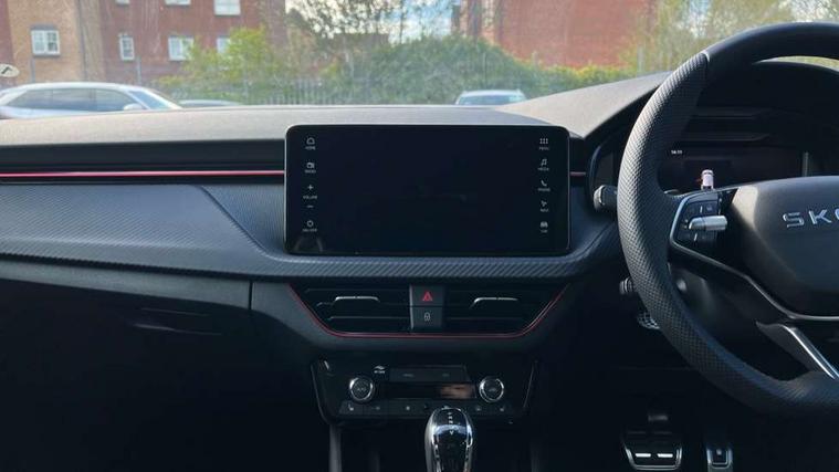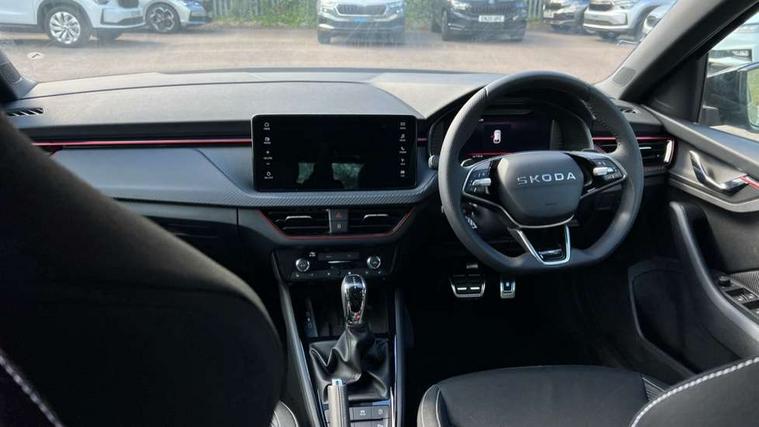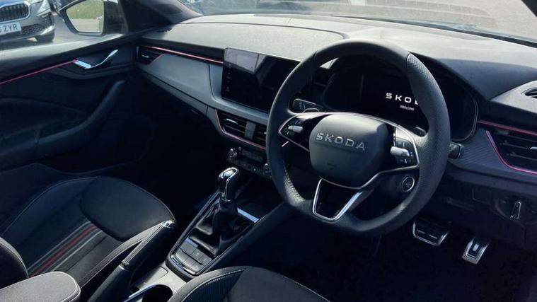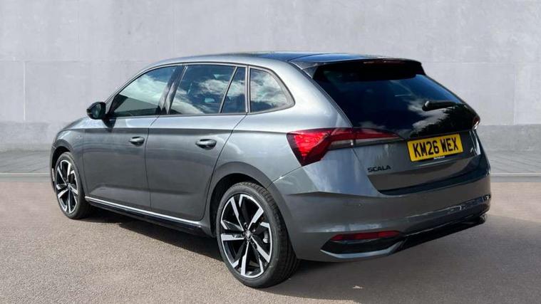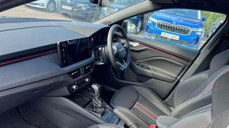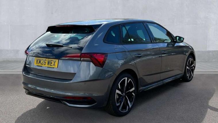Advanced driver attention and drowsiness monitor, Bluetooth, e-Call (emergency call), Front assist system, PAS, Rear parking sensors, Rear view camera, Speed limiter, Tailgate, Traffic sign recognition, Virtual Cockpit - 10.25" digital display, Voice control system, Wireless smartlink, Drive mode select with Sport Chassis Control and ECO mode, 4 USB C ports, 9.2" Skoda navigation display, DAB radio, Auto dimming rear view mirror, Automatic headlight control with manual coming and leaving home feature, Automatic intermittent wipers, Black door mirrors, Black lettering on boot lid, Black radiator grille, Black rear diffuser, Black roof spoiler, Black window frames, Body colour bumpers, Body colour door handles, Extended tailgate glass, Front and rear electric windows, Heated rear window, LED 3rd brake light, LED daytime running lights, LED high beam, LED low beam, Light sensors, Monte carlo plaque, Panoramic glass roof, Privacy glass, Rear LED fog light, Rear side wing doors, Rear wiper, Tinted windows, Unique dark chrome design logo on alloy wheels, 12V socket in luggage compartment, 3 seat bench in 2nd row, Aluminium pedals, Ambient lighting in white/red, Black / White armrest stitching, Black roof headlining, Cargo elements, Chrome inner door handles, Door inserts in art.leather carbon, Driver and passenger sun visors with vanity mirror, Dual zone climate control, Front and rear roof lights, Front centre armrest, Front head restraints, Height adjustable driver seat, Height adjustable passenger seat, Ice scraper, Illuminated glove compartment, Inner circulation control with pollen filter, ISOFIX for front passenger seat, Isofix preparation for back seats, Leather gearknob and handbrake lever, Luggage net under rear parcel shelf, Manual lumbar support for front seats, Monte Carlo cloth upholstery, Net package and top tether hooks in boot space, Pocket on the back of both front seats, incl. mobile phone pockets, Rear centre armrest, Red hotstamping, Single front passenger seat, Skoda lettering on steering wheel, Sport seats, Textile floor mats, Third rear headrest, Ticket holder, Top tether for front passenger seat, Umbrella in driver's door, Light and view plus pack - Scala, 3x3 point rear seatbelts, ABS, Child locks, Curtain airbags and front side airbags, Disc brakes, Driver and front passenger airbags, ESP, Hill hold control, Manual leather parking brake, One tone horn, Passenger airbag switch off function, Seatbelt reminder for driver and front passenger, Tyre pressure monitoring system, Anti theft alarm system with interior monitoring, backup horn and towing protection, Anti-theft wheel bolts, Remote central locking with 2 remote folding keys, SAFE function for remote central locking, Carbon effect decorative inserts, 18" Ursa black diamond cut alloy wheels,