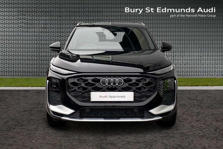 Adaptive cruise control, Audi connect emergency call and service, Audi connect remote and controls, Audi drive select (Balanced/Individual, effeciency, comfort and dynamic), Audi virtual cockpit plus - 11.9" display, Bluetooth interface, Camera based traffic sign recognition, Driver attention and fatigue monitor with driver monitoring, Front cross traffic assist, Lane departure warning with emergency assist, Panoramic curved display with 12.8" MMI navigation plus and MMI touch, Park assist plus with parking system and 360 display, Phonebox light with wireless charging, Reversing camera, Smartphone interface includes wireless Apple carplay/Android Auto, Start/stop system, Swerve assist and turn assist, Traffic sign based speed limiter, Voice control system with natural language interaction, Comfort suspension, Petrol Particulate Filter, 2 USB-C ports with charge and data functions, Audi sound system with 10 loudspeakers, subwoofer, 8 channel amplifier with 260 watts, DAB digital radio module, Acoustic glass for front door windows, Acoustic windscreen, Aluminium roof rails, Aluminium window trim, Audi Q3 lettering on the B-pillars, Auto dimming door mirrors, Auto dimming rear view mirror, Body colour door mirrors, Contrasting finish in volcano grey, Electrically folding, adjustable and heated door mirrors with integrated LED side indicators and kerb view function for passenger side, Full paint finish, Illuminated door sills with aluminium inserts at the front with S logo, LED daytime running lights, LED headlights plus with LED rear lights pro with continous light strip, illuminated Audi rings, rear, LED third brake light, Loading sill protector in stainless steel, Main beam assist, Privacy glass - dark tinted rear window, rear door and side windows, Projection light in the exterior mirrors - Projects a graphic element onto the ground, Q3 badging on the rear, Rain and light sensors, Rear side wing doors, Rear window, rear door windows and rear side windows in clear glass, Rear wiper, Sports bumpers, 3 seat bench in 2nd row, 3 spoke flat top and bottomed leather multi function sport steering wheel with gear shift paddles and "S" badging, 3-zone deluxe automatic air conditioning, 4 way lumbar support for the front seats - electric with horizontal and vertical adjustment in four directions, Black cloth headlining, Front and rear floor mats, Front and rear headrests, Front centre armrest, Heated front seats, Height and reach adjustable steering wheel, Interior storage compartment, Leather/artificial leather upholstery combination with S emblem + front sports seats, Luggage compartment lid, electrically opening and closing, Manual front seats with height adjustment, Rear seat bench plus with split folded 40:20:40, Single front passenger seat, Stainless steel pedals, Steering wheel operating unit, gloss black, Storage compartment in front centre console, Ambient lighting package pro - Q3, S line exterior styling pack - Q3, 3x3 point rear seatbelts, Convenience key with safelock, Driver and front passenger airbag with passenger airbag deactivation, Electromechanical parking brake, Electronic stabilisation control including ABS, ASR and EDL, First aid kit with warning triangle and high visibility vests, Front emergency brake assist, Hill hold assist, i - Size child seat mounting on the front passenger side and i - Size and top tether on the outer rear seats, Power operated child locks, Seatbelt monitoring, Three point automatic belts with belt tensioner and height adjustment, Tyre pressure loss indicator, Anti theft wheel bolts, Remote central locking, Thatcham approved category 1 anti theft alarm, Dark aluminium divergence inlay, Interior elements in dinamica microfibre, Interior trims in aluminium look, Tool kit and Jack,