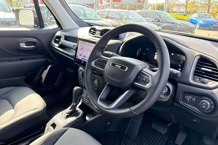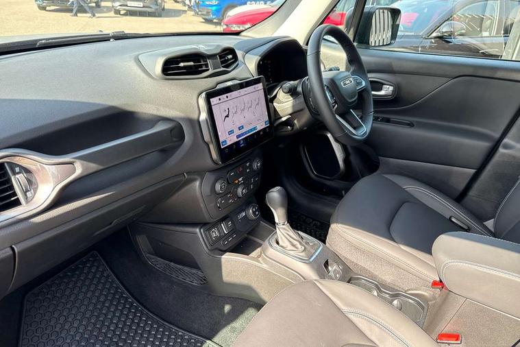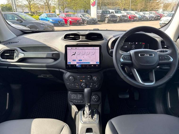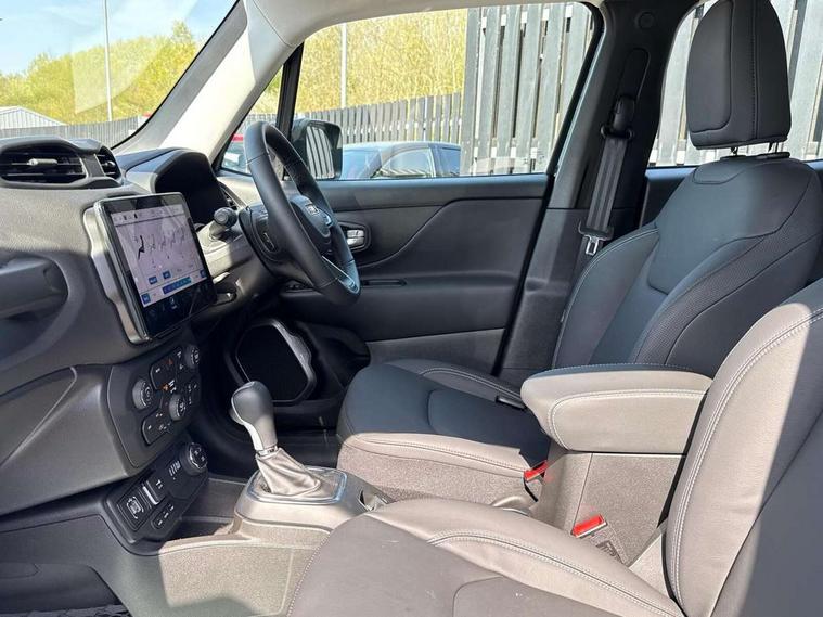 10.25'' Full digital TFT cluster, Blind spot detection with rear cross path, Cruise control, Drowsy driver detection, Dual tyre pressure (Lum changes), eCall emergency call system, Electric servo assisted steering, English language and manual handbook, Forward collision warning plus with mitigation, Gsr 2B Content Update, Integrated body computer, Lane departure warning plus, Parkview - Rear back up digital camera, Selec terrain system with sport mode, Speed limiter push button on steering wheel, Tachometer, TBM connectivity EMEA, Telematic box module (TBM), Traffic sign recognition, Alternator default, Battery run down protection, Battery skid plate, Electronic roll mitigation, Ev/Phev Mode 3 Charging Cable, Smart alternator, 6 speakers, Android auto car play (Dedicated USB port), DAB digital audio broadcast, Media Hub (USB A-C type) in front row, Steering wheel control with bluetooth, USB (A type) in second row, Wireless CarPlay/Android Auto, 3rd brake light, Acoustic components 1, Aspheric door mirrors, Automatic headlight activation (Dusk/Dawn), Black external rearview mirrors, Body colour door handles, Buzz Model Off Road, Day light opening Moldings, Front Towing eye, Front wide license plate bracket, Heated rear window, Higher ground clearance, LED daytime running lights, LED fog lamps, LED taillamps, Low/High beam LED headlights, Lower body side cladding, New front rails for getrag gearbox, Off Road Bumpers, Rain sensor, Rear side wing doors, Rear wash/wipe, Side repeater lamp in exterior mirrors, Solar glasses, Towing eye brackets, Trailer sway damping, 12v power point in centre console, 3 point rear seatbelts with load limiter, 3 rear height adjustable headrests, 3 seat bench in 2nd row, 4 way manually adjustable passenger seat, 40/20/40 Rear seats with pass-thru and armrest, Dedicated interior finish, Dual zone temperature control with preconditioning capability and heater, Front headrests, Front passenger fold forward seat with soft upholstered seatback, Interior grab handles, Interior LED lighting, Leather gear knob, PHEV Humidity sensor, Single front passenger seat, Soft front seat sliding armrest with interior bin, Tilt/telescopic steering column, Tonneau cover, Vinyl door trim, Washable and cleanable seats, Altitude pack - Renegade, ABS, All speed traction control, Curtain airbags, Dual note electric horns, Electric parking brake, Electronic stability control with hill start assist, Emergency brake assist, Front and rear seats side airbags, Front seat mounted side airbags, Height adjustable front seatbelts, Hill descent control, Isofix universal fixture for child safety seat fastening, Next generation front airbags, Panic brake assist, Passenger airbag disable feature, Rear door child safety locks, Tyre pressure monitoring display, Acoustic vehicle alert system (AVAS), Centralized electrical locking, Deadlock, Immobiliser, Passive Entry/Keyless Go (Key fob without panic button), Premium security alarm, Safe lock (super blocking), Tyre kit tag - B Group,