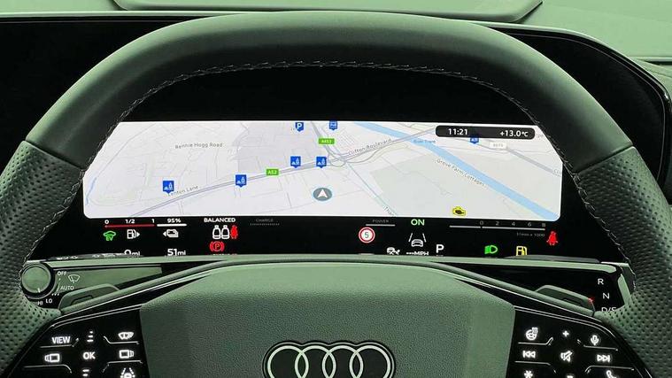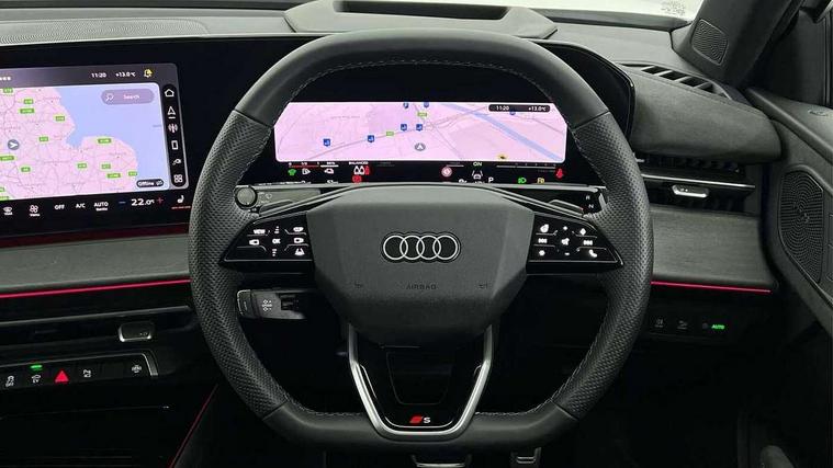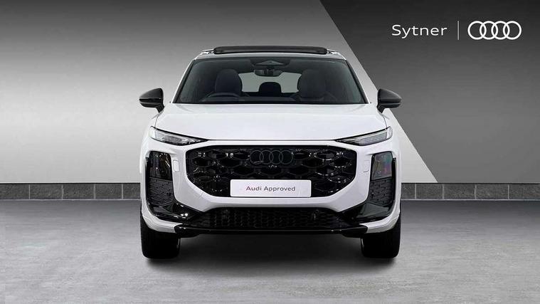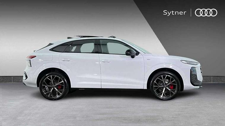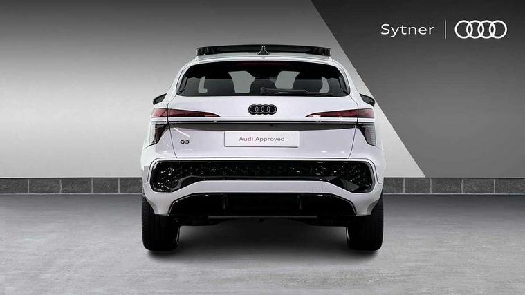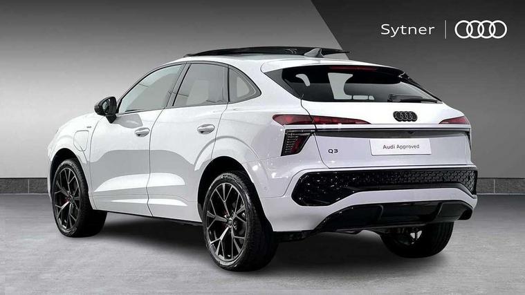 Adaptive cruise assist plus, Audi connect emergency call and service, Audi connect remote and controls, Audi drive select (Balanced/Individual, effeciency, comfort and dynamic), Audi drive select for suspension with damper control, Audi side assist with exit warning and rear cross traffic assist, Audi virtual cockpit plus - 11.9" display, Bluetooth interface, Camera based traffic sign recognition, Driver attention and fatigue monitor with driver monitoring, Emergency assist, Front cross traffic assist, Garage door opener, Head up Display, In-car-office assist, Panoramic curved display with 12.8" MMI navigation plus and MMI touch, Phonebox light with wireless charging, Progressive steering, Projection of a black ice warning, Smartphone interface includes wireless Apple carplay/Android Auto, Start/stop system, Surround view cameras, Swerve assist and turn assist, Traffic sign based speed limiter, Trained parking, Voice control system with natural language interaction, 3 pin 10 amp domestic charging cable, Charging socket CCS type 2, Compact charging system, Industrial connector CEE 32A, 230V, Mode 3 charging cable for public charging, 22 KW (AC), Petrol Particulate Filter, Sound actuator for interior drive sound, Suspension with damping control, 2 USB-C ports with charge and data functions, DAB digital radio module, SONOS premium sound system, USB interfaces with higher charging capacity, Acoustic glass for front door windows, Acoustic windscreen, Advanced dynamic light scenario of the coming home/leaving home function, All weather light, Aluminium window trim, Audi Q3 sportback lettering on the B-pillars, Auto dimming rear view mirror, Automatic dynamic headlight range control, Automatically dimming exterior mirrors with memory function, Contrasting finish in volcano grey, Cornering light, Digital daytime running lights with a choice of 4 digital light signatures, Digital matrix LED headlights, Digital OLED rear lights, Dipped beam, Dynamic indicators, Electrically folding, adjustable and heated door mirrors with integrated LED side indicators and kerb view function for passenger side, Full paint finish, Headlight cleaning system, High resolution main beam, Illuminated door sills with aluminium inserts at the front with S logo, Intersection light, Lane light with side assist and direction indicator, LED third brake light, Loading sill protector in stainless steel, Main beam assist, Manoeuvring light, Motorway light, Orientation light with lane departure warning, Panoramic glass sunroof, Position light, Privacy glass - dark tinted rear window, rear door and side windows, Projection light in the exterior mirrors - Projects a graphic element onto the ground, Q3 badging on the rear, Rain and light sensors, Rear side wing doors, Rear window, rear door windows and rear side windows in clear glass, Rear wiper, Sports bumpers, Turning light, 3 seat bench in 2nd row, 3 spoke heated flat top and bottomed leather multi function sport steering wheel with gear shift paddles and "S" badging, 3-zone deluxe automatic air conditioning, 4 way lumbar support for the front seats - electric with horizontal and vertical adjustment in four directions, Black carpet mats, Black cloth headlining, Convenience auxiliary air conditioning, Electrically adjustable front seats with memory function for driver's side, Front and rear floor mats, Front and rear headrests, Front centre armrest, Heated front seats, Height and reach adjustable steering wheel, Interior storage compartment, Luggage compartment lid, electrically opening and closing, Microfibre upholstery with rhombus pattern and S emblem + front sports seats, Rear seat bench plus with split folded 40:20:40, Single front passenger seat, Stainless steel pedals, Steering wheel operating unit, gloss black, Storage compartment in front centre console, Ambient lighting package pro - Q3, Black styling package - Q3 Sportback, Function pack - Q3, 3 point seat belts in front, with pretensioner and electric height adjustment, 3x3 point rear seatbelts, Acoustic vehicle alerting system, Convenience key with safelock, Driver and front passenger airbag with passenger airbag deactivation, Electromechanical parking brake, Electronic stabilisation control including ABS, ASR and EDL, First aid kit with warning triangle and high visibility vests, Front and rear side airbags with head airbags and front interaction airbag, Front emergency brake assist, i - Size child seat mounting on the front passenger side and i - Size and top tether on the outer rear seats, Power operated child locks, Proactive occupant protection, front, side and rear, Red brake callipers, front and rear, Seatbelt monitoring, Tyre pressure loss indicator, Anti theft wheel bolts, Remote central locking, Thatcham approved category 1 anti theft alarm, Dark aluminium divergence inlay, Interior elements in dinamica microfibre, Interior trims in aluminium look, 20" 5 spoke tripod design alloy wheels with gloss turned finish in darkened metallic black, Tool kit and Jack, Tyre repair kit,