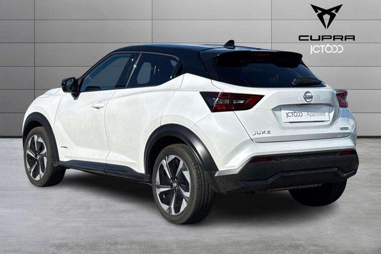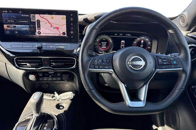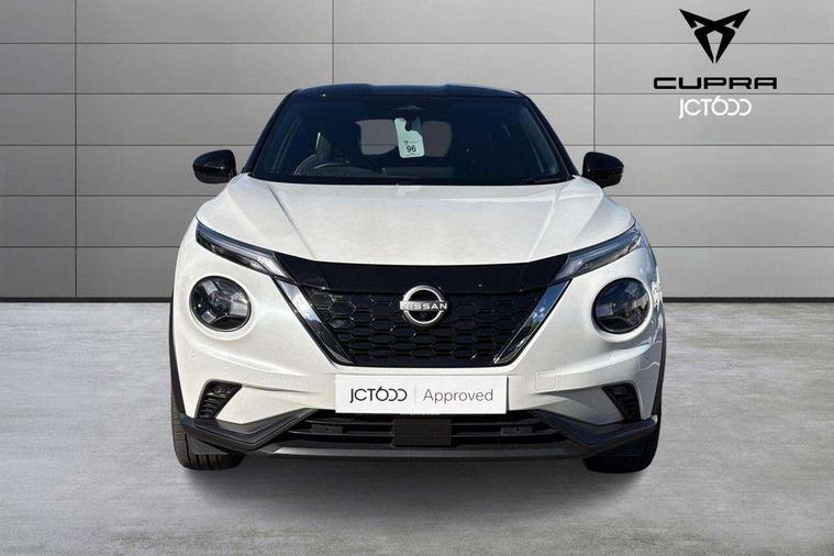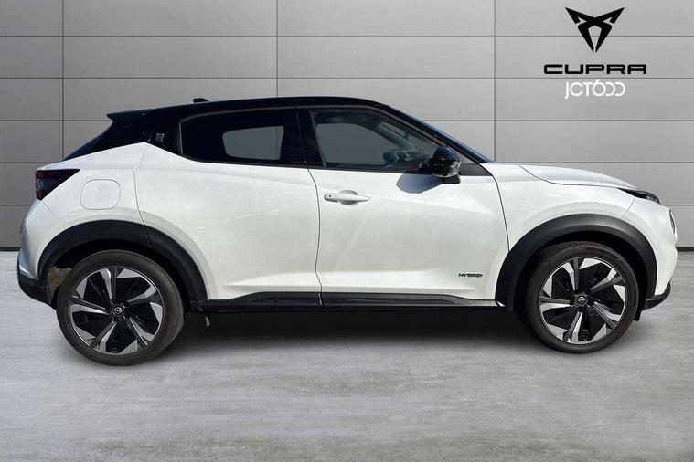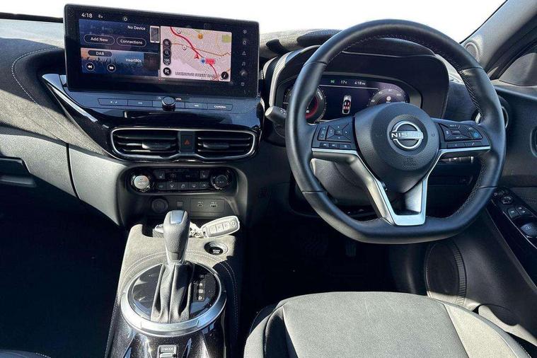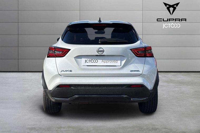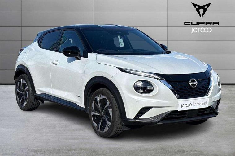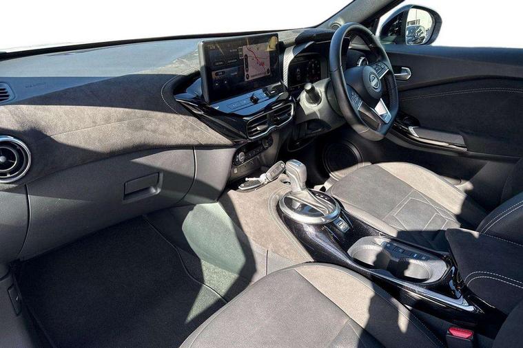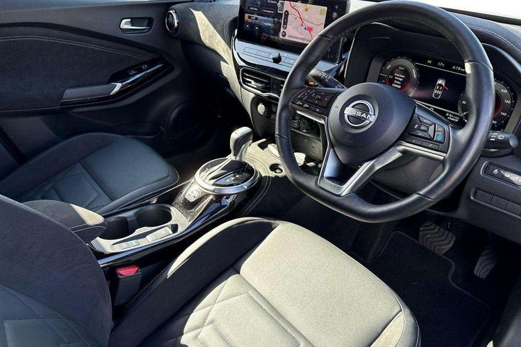 12.3" full colour TFT screen combimeter, Drive modes select (Eco, normal and sport), e-Pedal step, Emergency and breakdown call, EV mode switch, Front parking sensor, Intelligent driver alert system, Intelligent lane intervention, Lane departure warning system, Nissan connect 12.3" touch screen entertainment system, Nissan connect nav with TomTom traffic, Nissan connect services, Outside temperature sensor, Power Steering, Rear parking sensor, Stop/start button, Traffic sign recognition, Trip computer, Voice recognition, WiFi connectivity, Wireless Apple CarPlay and Google Android auto, Wireless Smartphone charger, 10 Bose speakers 6 speakers and 2 headrest speakers for driver/passenger seats, 2 X Rear console USB port, Bluetooth system, USB, Aux-in and 12V socket, Bose personal sound stage control, DAB Digital radio, Auto dimming frameless rear view mirror, Automatic hazard signal with emergency stop signal, Body colour door handles, Electrically adjustable door mirrors with integrated indicators, Follow me home headlights, Front and rear electric window with one touch driver window, Heated and auto folding door mirrors, High beam assist, LED 3rd brake light, LED daytime running lights, LED front fog lights, LED headlamps, LED rear fog lamp, LED rear lamps, One touch passenger window, Rain sensor windscreen wipers, Rear privacy glass, Rear side wing doors, Rear wiper, Roof spoiler, Shark fin roof antenna in solid Black, Three blink turn signal, 3 height adjustable rear headrests, 3 seat bench in 2nd row, 60/40 split folding rear seat, Automatic climate control, Card holder on driver sunvisor, Door ambient lighting, Driver seat back pocket, Driver side rear coat hanger, Driver/passenger sunvisors and vanity mirrors, Front and rear cabin lights, Front armrest, Front door pockets with bottle holders, Front head restraints, Front/rear passenger grab handles, Gear console ambient circle lighting, Height adjustable driver's seat, Internal chrome door handles, Leather gearshift knob, Luggage board, Luggage space lighting, Monoform sporty seats, Multifunction steering wheel, Passenger seat back pocket, Rear door bottle holders, Single front passenger seat, Smooth synthetic leather steering wheel, Synthetic leather kneepad, Telescopic steering wheel adjustment, Two cupholders in front centre console, Two rear isofix child seat anchorage points with top tether, Welcome light and console tray ambient lighting, Heat pack with height adjustable passenger seats - Juke, Interior personalisation pack - Juke, ProPilot pack - Juke Auto, Satin grey exterior personalisation pack - Juke, ABS with EBD and brake assist, Active ride control, Active Trace Control, Driver and passenger airbags, Driver and passenger side airbags, Electric handbrake with auto hold function, Electronic Stability Programme (ESP), Front and rear curtain airbags, Height adjustable seatbelts, Hill start assist, Intelligent emergency braking with pedestrian and cyclist recognition, Rear door child safety locks, Seatbelt reminder for driver/front passenger and rear seats, Three 3 point rear seatbelts, Traction control, Tyre pressure monitoring system, VDC Dynamic Vehicle Control, Alarm, Immobiliser, Intelligent key and start push button with walk away lock and approach unlock functions, Remote central locking, 19" Aero alloy wheels, Tyre puncture repair kit,