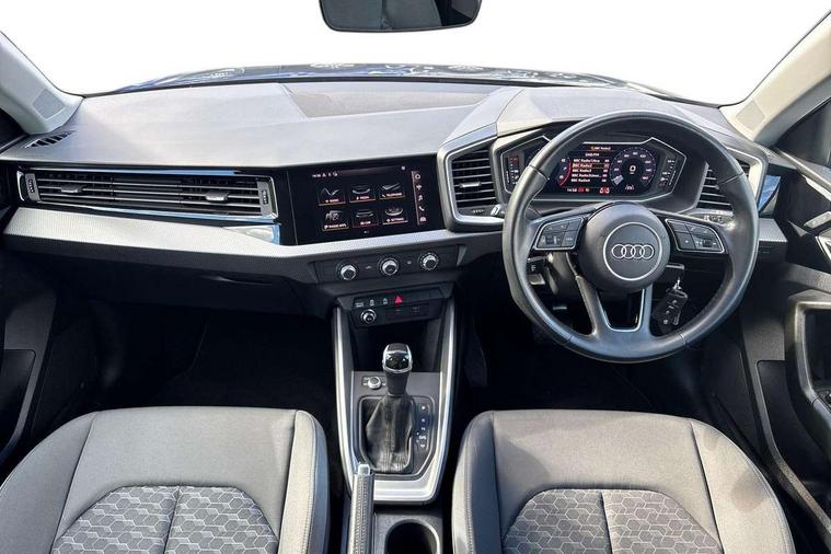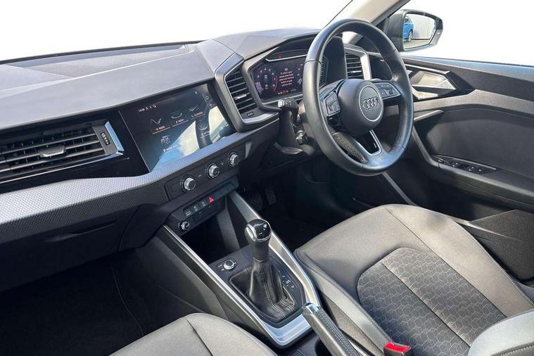 10.25" Digital instrument cluster display classis style instrument dials + speed, odometer, time, outside temperature, telephone menu + fuel level warning, Audi connect safety emergency and service including E-call, Audi drive select - power steering assistance + engine + gear shift 3 preset modes (auto, dynamic, efficiency and an Individual mode), Audi smartphone interface with connect compatible smartphone via USB directly MMI display + Nav, music, third party apps controlled via MMI controller, Automatic start/stop system, Bluetooth interface, Cruise control, Driver's information system, Electromechanical power steering, Lane departure warning system, Service interval indicator, Speed limiter, Voice control system, Washer fluid level indicator, Dynamic suspension, 1 x SDXC card reader, 2 x USB type C connection points, DAB Digital radio, MMI radio plus with 8.8" colour MMI display screen and MMI touch, Auto dimming rear view mirror, Body coloured bumpers, Body coloured door mirrors, Electric front and rear windows, Electrically adjustable, heated, folding door mirrors with integrated LED side indicator, Front side air inlets in grained matt black and C frame in titanium black, Heat insulating glass windscreen and side windows, Heated rear windscreen, LED headlights with LED rear lights + dynamic rear indicators + headlight adjustment and high beam, turning light + LED daytime running lights, Radiator grille and rear diffuser in matt titanium black, Radiator protective grille frame in matt aluminium silver, Rain and light sensors, Rear fog lights, Rear wiper, Scandium grey tailpipe trim, Side front spoiler lips in grained matt black, 12V socket in centre console with two cup holders, 3 rear seats with headrests, 40:60 Split folding rear seat or folded fully, Door sill trims with aluminium inlay, Driver and passenger seat with manual height adjust with forward and backwards adjustment, Front head restraints, Front/rear floor mats, Height and reach adjustable steering wheel, ISOFIX child seat mounting for front passenger and outer rear seats including top tether attachment point of outer rear seats, Leather gear knob with aluminium trim, Leatherette handbrake grip, Luggage compartment light with front and rear reading lights, Manually adjustable lumbar support in front seats, Novum cloth upholstery with front sport seats, Titanium grey cloth headlining, Luggage compartment pack - A1, 3x3 point rear seatbelts, Audi pre-sense front with pedestrain and cyclist recognition, Brake assist function, Driver and front passenger airbag with front side and head airbags, Electronic Stability Control including ABS, EBD, ASR and EDL, Front passenger airbag deactivation switch, Hill hold assist, Seatbelt height adjustment for front seats, Seatbelt monitoring, Tyre pressure warning light, Warning triangle and first aid kit, Anti theft alarm, Anti theft wheel bolts and loose wheel warning, Immobiliser, Remote central locking with 2 foldaway keys, Aluminium trim for control switches, air vents and digital instrument cluster, Silver grey accent areas including air vents, door handle recesses and centre console in diamond paint finish, Slate grey inlays polygon structure in fine paint finish,