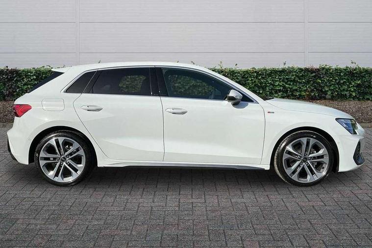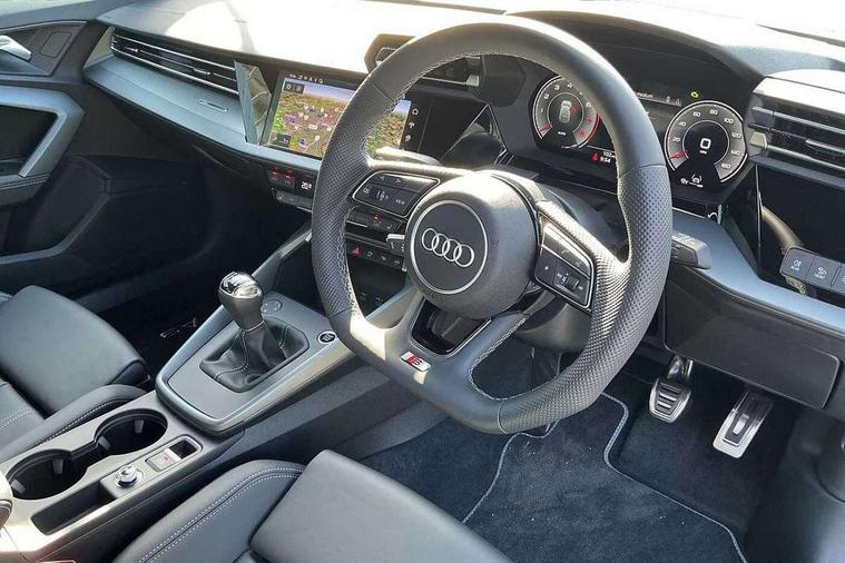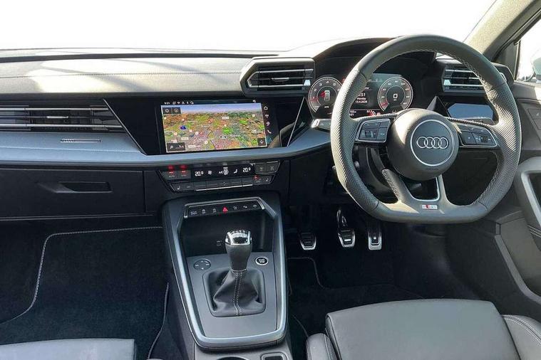 Adaptive cruise control (ACC), Adjustable speed limiter, Audi drive select (Auto, Comfort, Dynamic, Efficiency and Individual), Audi virtual cockpit plus - 12.3" full HD resolution dynamic digital instrument cluster, Automatic start/stop system with recuperation, Bluetooth interface, Camera based traffic sign recognition, Collision avoidance assistant, Driver attention and fatigue detection, e-Call (emergency call), Electromechanical power speed sensitive steering, Intersection assist, Lane departure warning system, MMI Navigation Plus with high resolution 10.1" colour touch screen display, Park Assist with parking system Plus, Reversing camera, Service indicator, Smartphone interface with app store includes wireless Apple carplay, Android auto and Amazon alexa integration, Trip computer, Voice control system with natural language interaction, Sports suspension, Audi Phonebox light with wireless charging, Audi sound system - 10 loudspeakers including centre loudspeaker and subwoofer, DAB Digital radio, USB ports with charging function in the rear, Acoustic glass windscreen, All weather light, Aluminium window trim, Auto dimming frameless rear view mirror, Automatic dynamic range control, Body colour exterior mirrors, Dipped beam, main beam, position light and turning light, Electrically adjustable/heated/folding/auto dimming door mirrors with integrated LED indications + kerb view function for passenger side, Exterior model badging, Front and rear side air inlets in grained matt black with dark liquid chrome frame, Front electric windows, Front radiator grill in high gloss dark chrome, Heat insulating glass windscreen, Illuminated door sills with aluminium inserts at the front with S logo, Intersection light, Invisible tailpipe, LED 3rd brake light, LED brake lights, LED daytime running x3, LED headlights with LED rear lights and dynamic rear indicators, LED rear number plate lights, LED reverse light, LED tail lights, Light and rain sensors, Manoeuvring light, Motorway light, Privacy glass - dark tinted rear window, rear door and side windows, Rear diffuser and grill in grained matt black with inlay in dark liquid chrome, Rear electric windows, Rear side wing doors, Rear wiper, S line bumpers, S roof spoiler, Side S line emblems on front wings, Side sill trim in dark liquid chrome, Static cornering light, 12V socket and storage compartment in front centre console, 3 seat bench in 2nd row, 3 spoke flat bottomed multi-function leather sport steering wheel, 3-zone deluxe automatic air conditioning, 4 way electrically adjustable lumbar support for driver and front passenger, 40/20/40 split folding rear seat bench, Black cloth headlining, Black front and rear floor mats, Front and rear centre armrest in artificial leather with contrasting stitching on armrests and instrument panel, Front and rear headrests, Heated front seats, Height and reach adjustable steering wheel, i-Size child seat mounting on the front passenger side and outer rear seats, i-Size and top tether on the outer rear seats, Manual boot compartment lid, Manually adjustable front seats, Rear centre armrest with cupholder, S badging on the steering wheel, Seat side bolsters, Single front passenger seat, Stainless steel pedals and front footrest in black, Twin leather upholstery with front sports seats S embossed logo, Aluminium interior elements pack - A3, Multi-coloured LED interior lighting package with Multi-coloured contour lighting of instrument panel - A3, 3x3 point rear seat belts, Driver and front passenger airbag with passenger airbag deactivation, Electronic Stabilisation Control (ESC) including ABS, ASR and EDL, First aid kit with warning triangle and 2 safety vests, Front side airbags with head airbags and interaction airbag, Hill hold assist, Pre-sense front with pedestrian and cyclist detection, Seatbelt monitoring, Tyre pressure loss indicator, Anti theft alarm, Anti-theft wheel bolts, Electronically operated child locks, Immobiliser, Black dashboard, Inlay in dark aluminium spectrum,