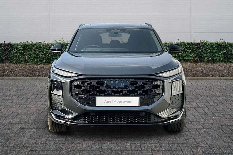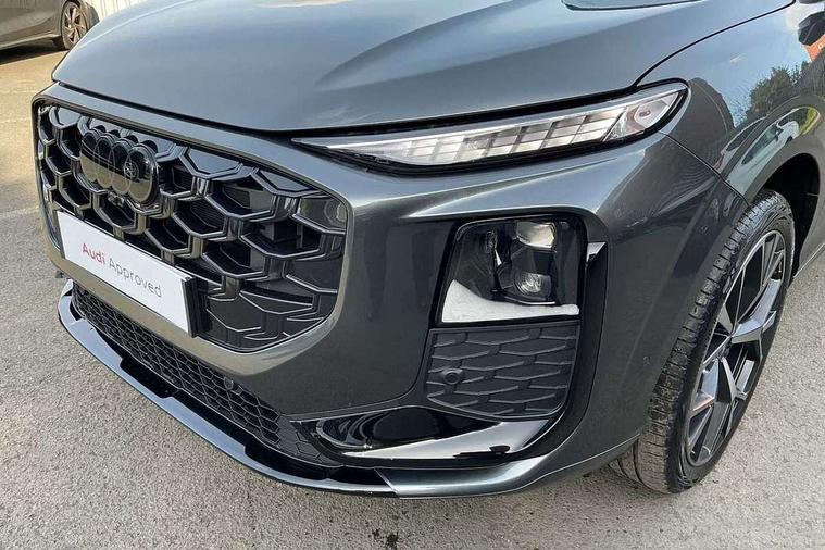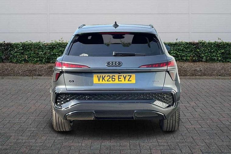Adaptive cruise control, Audi connect emergency call and service, Audi connect remote and controls, Audi drive select (Balanced/individual, efficiency, comfort, dynamic and Offroad+), Audi virtual cockpit plus - 11.9" display, Bluetooth interface, Camera based traffic sign recognition, Driver attention and fatigue monitor with driver monitoring, Emergency assist, Front cross traffic assist, Panoramic curved display with 12.8" MMI navigation plus and MMI touch, Park assist plus with parking system and 360 display, Phonebox light with wireless charging, Projection of a black ice warning, Reversing camera, Smartphone interface includes wireless Apple carplay/Android Auto, Start/stop system, Swerve assist and turn assist, Traffic sign based speed limiter, Voice control system with natural language interaction, Petrol Particulate Filter, 2 USB-C ports with charge and data functions, Audi sound system with 10 loudspeakers, subwoofer, 8 channel amplifier with 260 watts, DAB digital radio module, Acoustic glass for front door windows, Acoustic windscreen, Advanced dynamic light scenario of the coming home/leaving home function, All weather light, Aluminium window trim, Audi Q3 lettering on the B-pillars, Auto dimming door mirrors, Auto dimming rear view mirror, Automatic dynamic headlight range control, Contrasting finish in volcano grey, Cornering light, Digital daytime running lights with a choice of 4 digital light signatures, Digital matrix LED headlights, Dipped beam, Dynamic indicators, Electrically folding, adjustable and heated door mirrors with integrated LED side indicators and kerb view function for passenger side, Full paint finish, High resolution main beam, Illuminated door sills with aluminium inserts at the front with S logo, Intersection light, Lane light with side assist and direction indicator, LED third brake light, Loading sill protector in stainless steel, Manoeuvring light, Motorway light, Orientation light with lane departure warning, Position light, Privacy glass - dark tinted rear window, rear door and side windows, Projection light in the exterior mirrors - Projects a graphic element onto the ground, Q3 badging on the rear, Rain and light sensors, Rear side wing doors, Rear window, rear door windows and rear side windows in clear glass, Rear wiper, Sports bumpers, Turning light, 3 seat bench in 2nd row, 3 spoke heated flat top and bottomed leather multi function sport steering wheel with gear shift paddles and "S" badging, 3-zone deluxe automatic air conditioning, 4 way lumbar support for the front seats - electric with horizontal and vertical adjustment in four directions, Black cloth headlining, Front and rear floor mats, Front and rear headrests, Front centre armrest, Heated front seats, Height and reach adjustable steering wheel, Interior storage compartment, Luggage compartment lid, electrically opening and closing, Manual front seats with height adjustment, Rear seat bench plus with split folded 40:20:40, Single front passenger seat, Stainless steel pedals, Steering wheel operating unit, gloss black, Storage compartment in front centre console, Ambient lighting package pro - Q3, Black styling pack with black door mirrors - Q3, Driver assist pack - Q3, Dynamic pack - Q3, 3x3 point rear seatbelts, Convenience key with safelock, Driver and front passenger airbag with passenger airbag deactivation, Electromechanical parking brake, Electronic stabilisation control including ABS, ASR and EDL, First aid kit with warning triangle and high visibility vests, Front emergency brake assist, Hill hold assist, i - Size child seat mounting on the front passenger side and i - Size and top tether on the outer rear seats, Power operated child locks, Seatbelt monitoring, Tyre pressure loss indicator, Anti theft wheel bolts, Remote central locking, Thatcham approved category 1 anti theft alarm, Anthracite american whitewood natural inlay, Interior elements in dinamica microfibre, Interior trims in aluminium look, Tool kit and Jack,