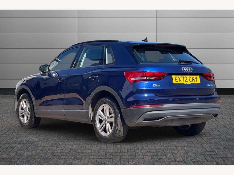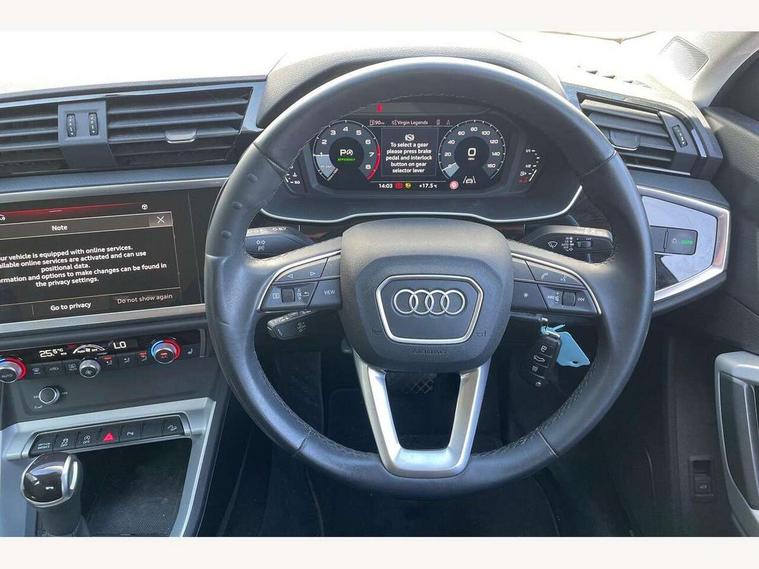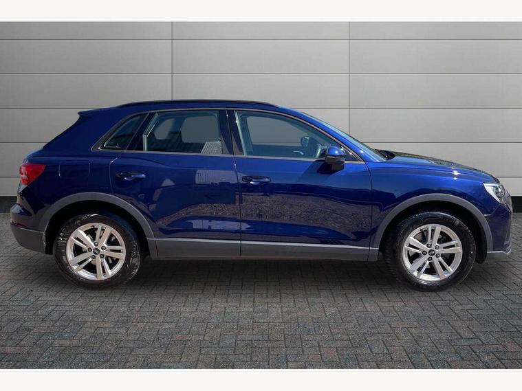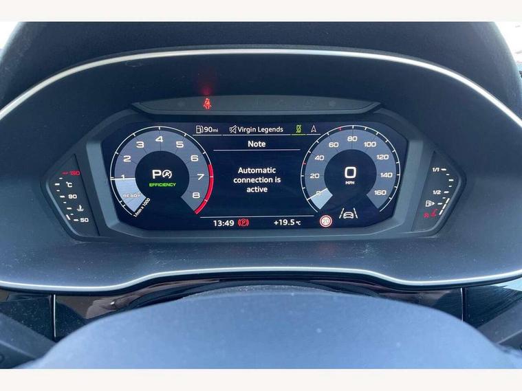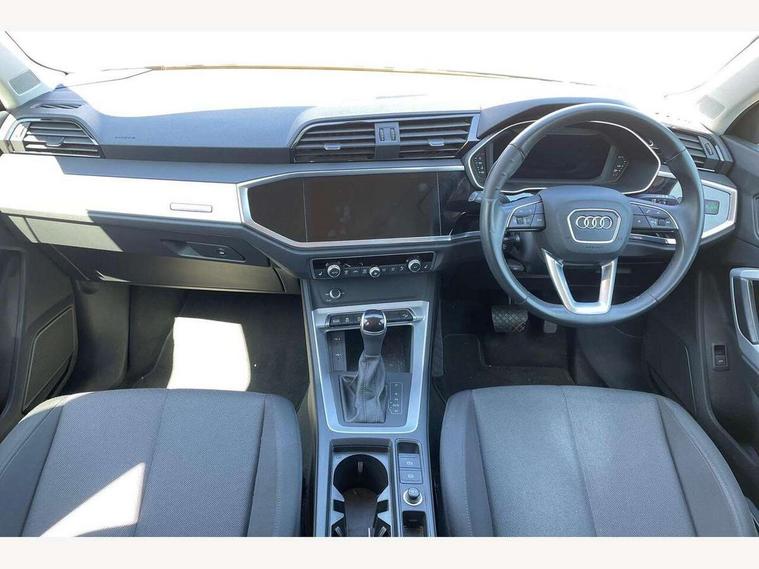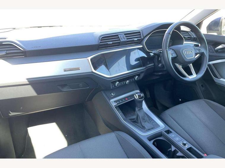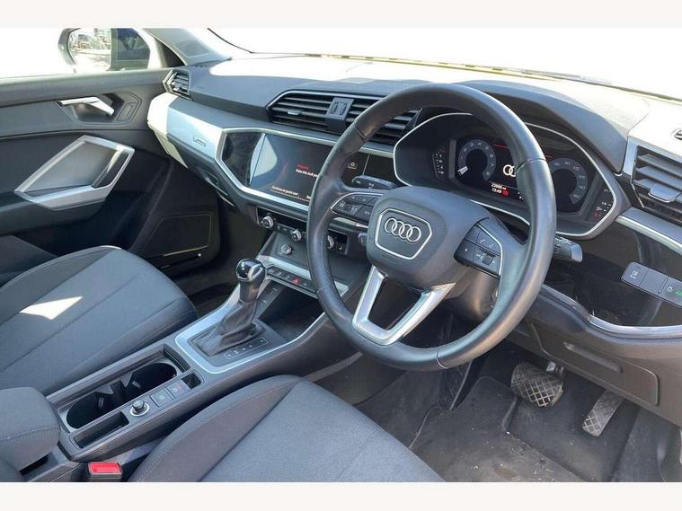 Amazon alexa Integration, Audi drive select, Audi lane departure warning, Audi Virtual Cockpit - 10.25" display, Bluetooth interface, Camera based traffic sign recognition, Legal emergency call, MMI Navigation Plus with high resolution 10.1 inch touchscreen colour display, Power operated tailgate, Progressive steering, Service interval indicator, Smartphone interface includes wireless Apple carplay/Android Auto, Start stop system with recuperation, Voice control system with natural language interaction, Standard suspension, 2 USB-C ports with charge and data functions, 6 passive loudspeakers, DAB digital radio module, Acoustic windscreen, Auto dimming frameless rear view mirror, Black roof rails, Body colour door mirrors, Diffuser in grained anthracite, Electrically folding, adjustable and heated door mirrors with integrated LED side indicators and kerb view function for passenger side, Exterior bumper with wheel arch trims and side sill trims in grained black matt, Front and rear electric windows, Grained radiator protective grille, Halogen rear lights, LED headlights with LED daytime running lights, Rain and light sensors, Rear side wing doors, Rear wiper, Third brake light, Variable front intermittent wipers, 12V socket in rear centre console, 3 seat bench in 2nd row, 3 spoke multi-function leather steering wheel, 40:20:40 folding with manual adjustment for 60:40 forwards/backwards position and backrest angle, Dual zone electronic climate control, Front and rear floor mats, Front and rear headrests, Front and rear roof module including reading lights, Front centre armrest, Glove compartment lighting, Height and reach adjustable steering wheel, ISOFIX child seat mounting for front passenger with airbag deactivation and outer rear seat including top tether attachment point for outer rear seats, Luggage compartment light, Lunar silver cloth headlining, Manual front seats with height adjustment, Single front passenger seat, Stainless steel luggage compartment sill finisher, Non smoking pack - Q3, 3x3 point rear seatbelts, 6 airbags - Driver, front passenger, curtain and side windows, Audi pre-sense front with pedestrain and cyclist recognition, Electrically operated child locks on rear doors, Electromechanical parking brake, Electronic stabilisation control including ABS, ASR and EDL, Front seatbelt reminder, Hill descent control, Hill hold assist, Pre sense basic, Seatbelt monitoring, Tyre pressure warning, Warning triangle and first aid kit, Anti theft alarm, Anti theft wheel bolts, Immobiliser, Remote central locking, Detail dashboard around MMI touch colour display in glass look, black with surround in aluminium look, Micrometallic silver inlay, 17" 5 twin spoke design alloy wheels,
