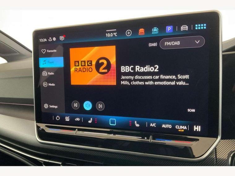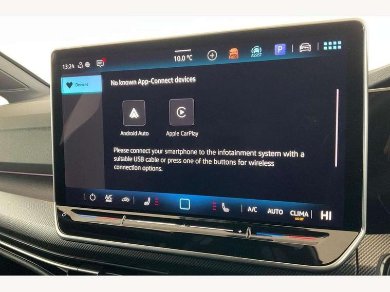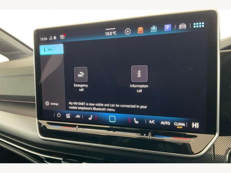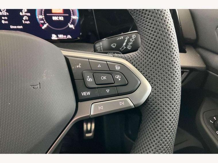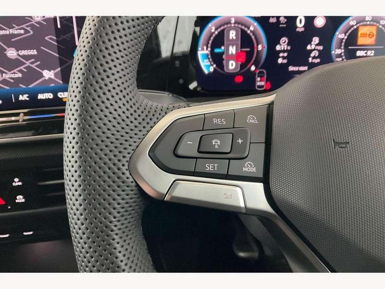 Activated carbon canister, Adaptive cruise control (ACC), Advanced driver attention and drowsiness monitor, Dynamic road sign display, Dynamic steering, E-Sim card for online connectivity, eCall emergency call system, Multi-color Digital cockpit pro, selection of different info profile possible, Multifunction front facing camera for distance control, Navigation system, Oncoming vehicle braking when turning including swerve support, Speed limiter, Speedo, rev counter, electronic odometer, trip, service interval display, exterior temperature and fuel gauge, Traffic jam assist, Voice enhancer and voice control, Warning signal and warning light for front and rear seatbelts not fastened, We connect plus preparation, We connect preparation, Wireless app connect, Diesel particulate filter, Start-stop system with battery regeneration (recuperation - energy recovery during braking), XDS electronic differential lock for improved traction and handling, 2 USB C ports in front, 2 USB charging sockets on the centre console in the rear charging capacity upto 45W, Digital radio reception (DAB), Diversity antenna for FM reception, Gaming platform via car app, Infotainment system with 12.9" display, Mobile phone interface with inductive charging feature, 3rd brake light, Auto dimming rear view mirror, Automatic headlamp activation with Coming home and Leaving home feature, Body colored bumpers in R-Line style, Body colour door handles, Exterior ambient lighting, Exterior mirrors convex on the left and aspherical on the right, Front and rear electric windows, Heat insulating windshield made of laminated glass, LED separate daytime running light, Rain sensor, Rear exhaust tailpipe, Rear fog light on one side and reversing lights on both sides, Rear side wing doors, Rear windscreen washer and wiper with interval delay, Remote electrically foldable door mirrors, puddle lights and reverse activated passenger's door mirror, Volkswagen logo in front, illuminated lighting animation with wake up/goodbye scenario and illuminated door handles, Welcome light with surround lighting, 12V socket in front centre console, 12V socket in luggage compartment, 3 rear head restraints, 3 seat bench in 2nd row, Ambient lighting with 30 colour including LED light unit in front footwell with selectable light colour, Black roof lining, Brushed stainless steel pedals, Chrome plated radiator grille inserts, air vent surrounds and light switch surrounds, Front + rear black carpet mats, Front centre armrest, Integrated front head restraints, ISOFIX anchors for child seats on outer rear bench seats and on front passanger seat compatible for i-Size, Luggage compartment lighting, Plastic gear knob, Premium sports seats in front, Rear cupholder and loadthough, Single front passenger seat, Split folding backrest with centre armrest and unsplit rear seat bench, Sun visors with illuminated vanity mirrors, Titanium black instrument panel, Black exterior Styling package with Matrix LED headlights - Golf, 3 point height adj front seatbelts + pretensioners, 3 rear three point seatbelts, ABS, Autonomous emergency braking front assist with pedestrian and cyclist monitoring, Child locks on rear doors, Driver and front passenger airbag with front passenger airbag deactivation, Electronic parking brake with auto hold, ESC (Electronic Stability Control), Extended pedestrian protection measures, Hill start assist, Rear disc brakes, Two tone horn, Tyre pressure loss indicator, Volkswagen roadside assistance, Anti theft wheel bolts, Preparation for alcohol interlock, Decorative inserts carbon grey for dashboard and front door trim panels, 18" Leeds alloy wheels,